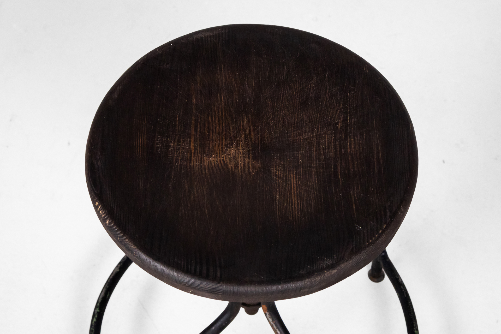 Kerek szék fekete állítható fa ülőfelülettel és masszív kör alakú lábazattal