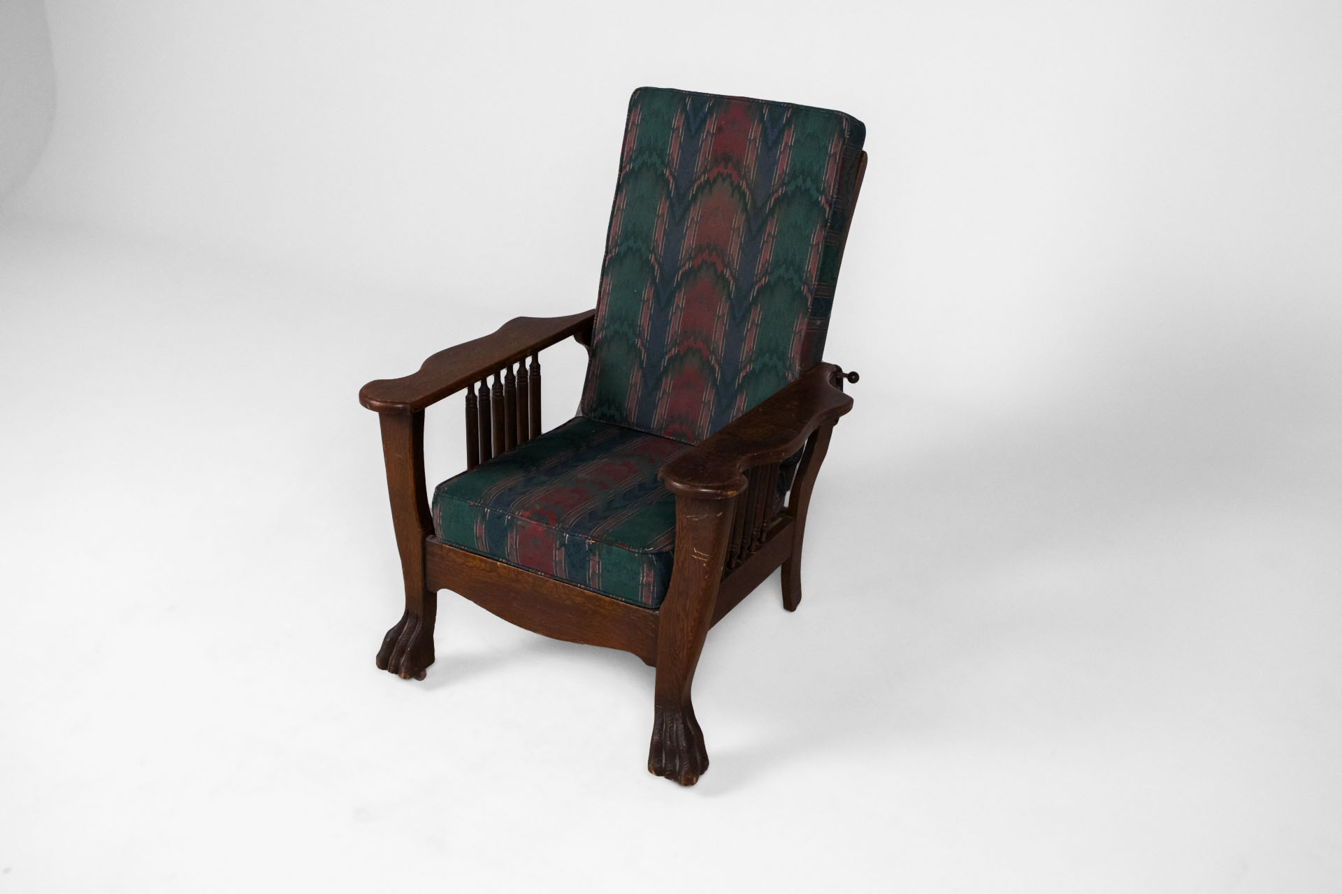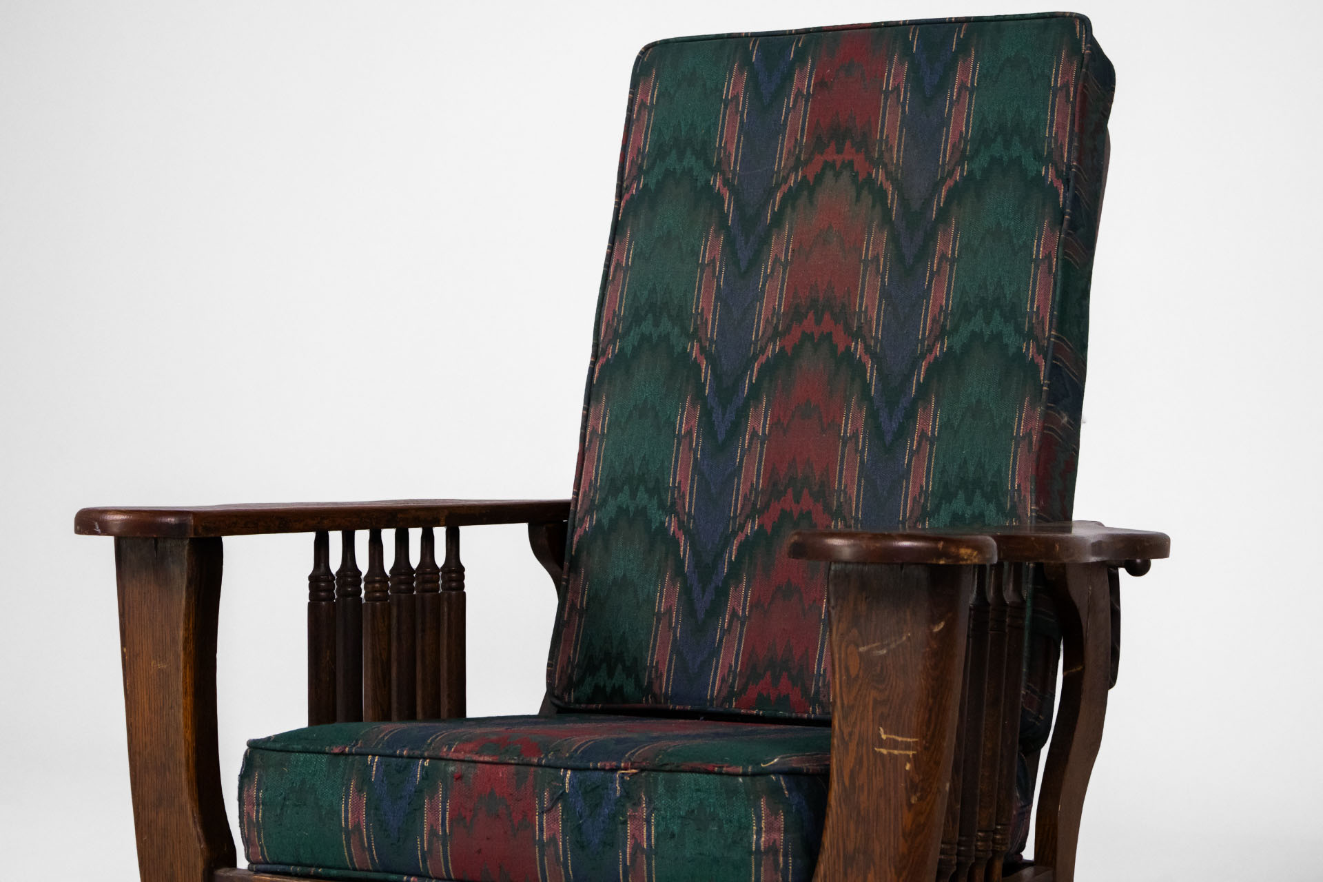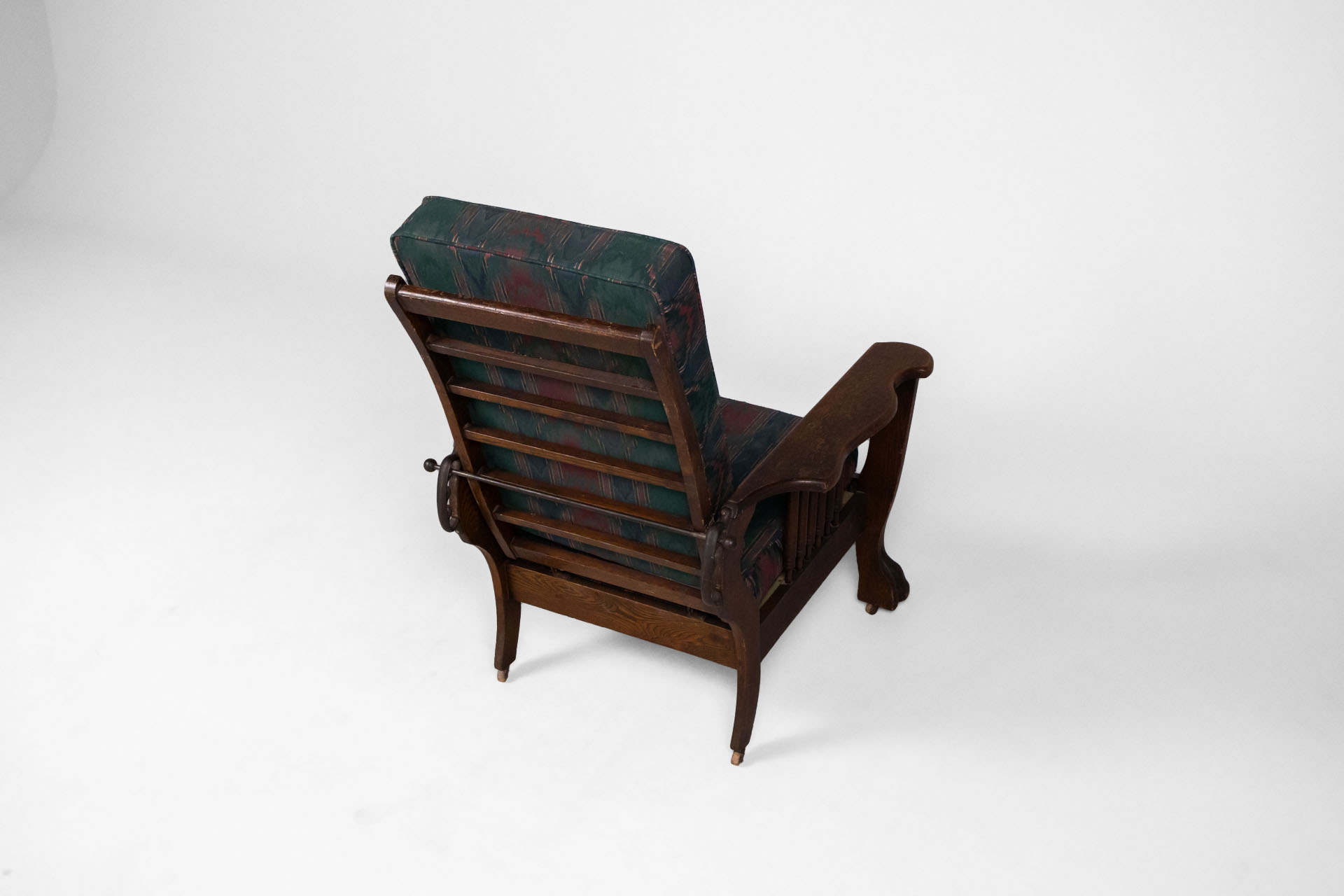 Kényelmes, vintage stílusú karfás fotel, masszív fa szerkezettel és díszes, színes szövet kárpittal. A háttámla állítható dőlésszögű. Ívelt formája és a lábak faragott részletei időtlen eleganciát sugároznak, ideális...