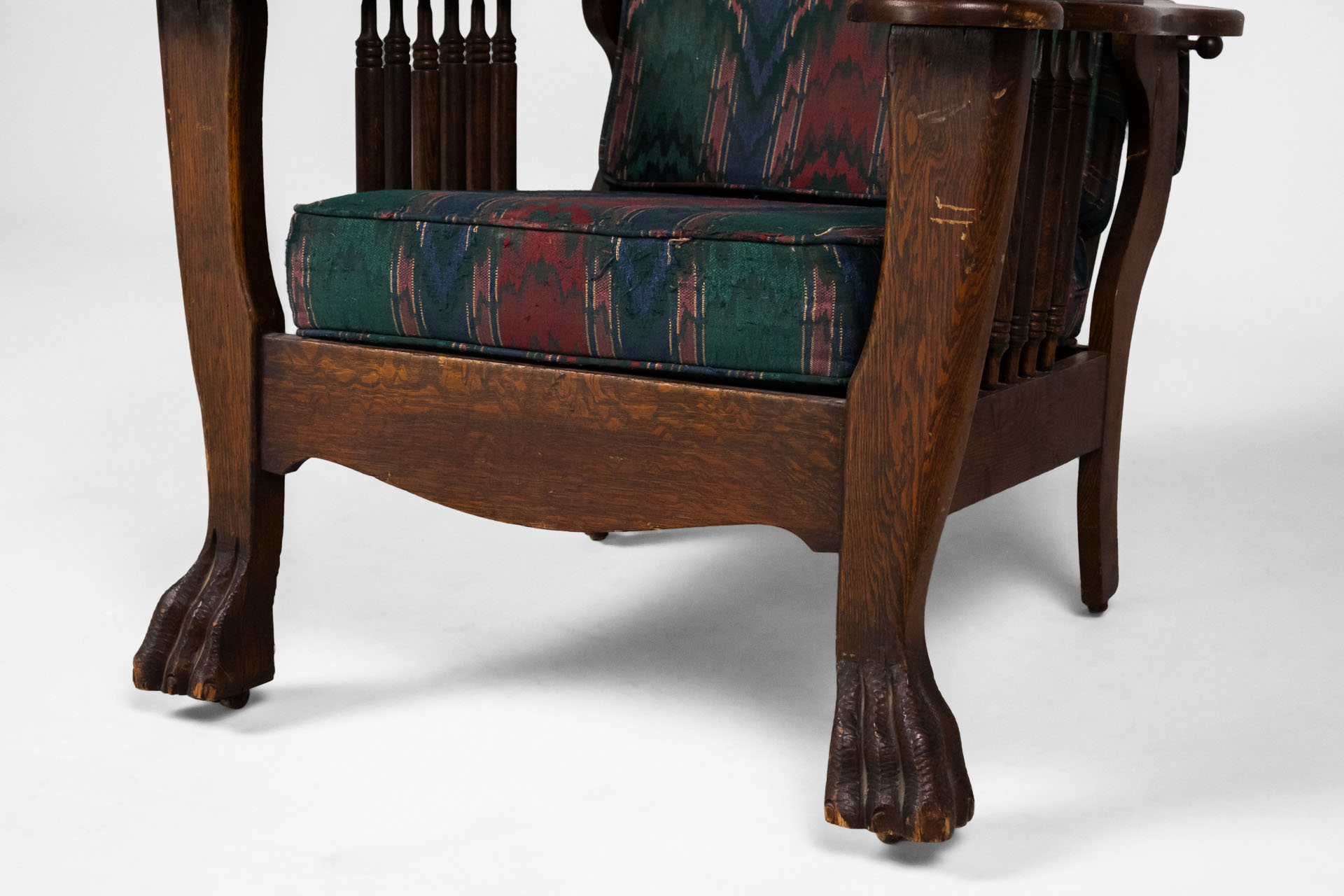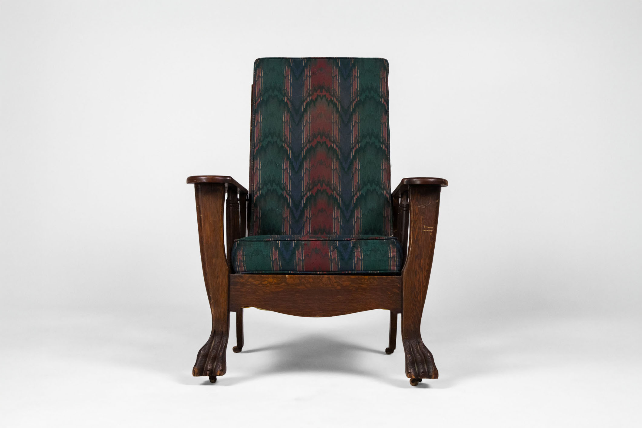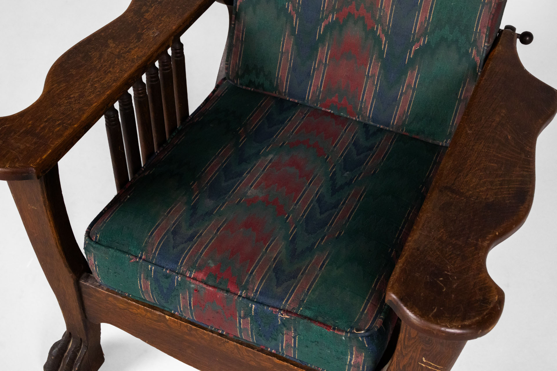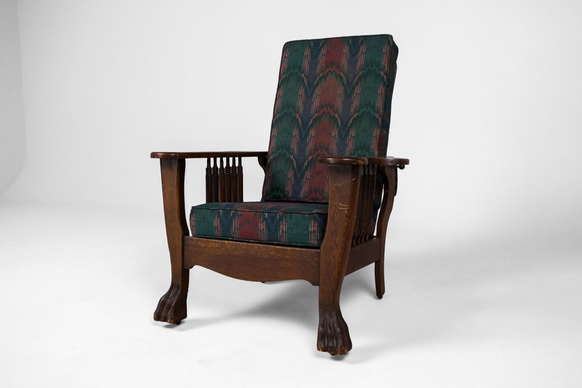 Kényelmes, vintage stílusú karfás fotel, masszív fa szerkezettel és díszes, színes szövet kárpittal. A háttámla állítható dőlésszögű. Ívelt formája és a lábak faragott részletei időtlen eleganciát sugároznak, ideális...