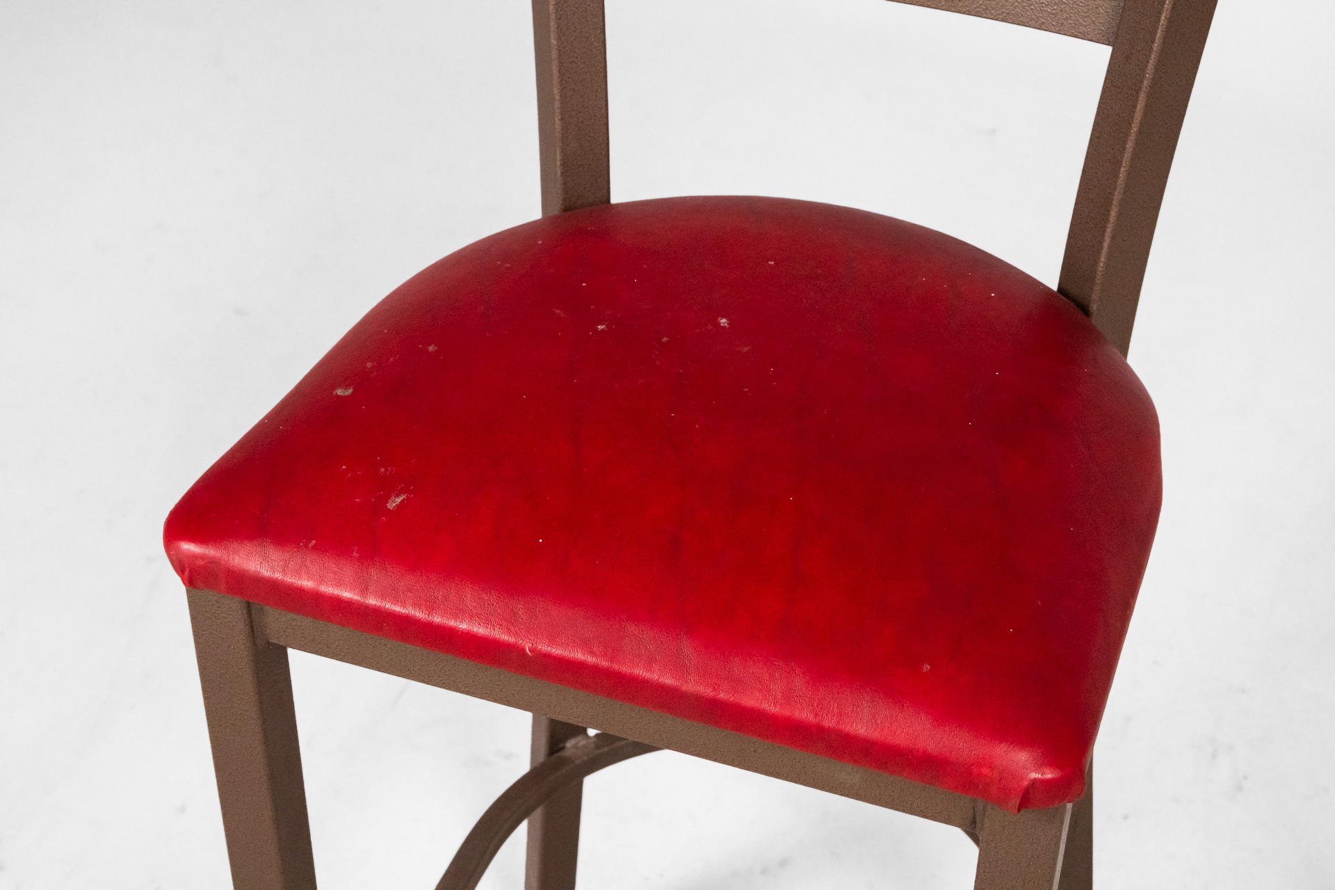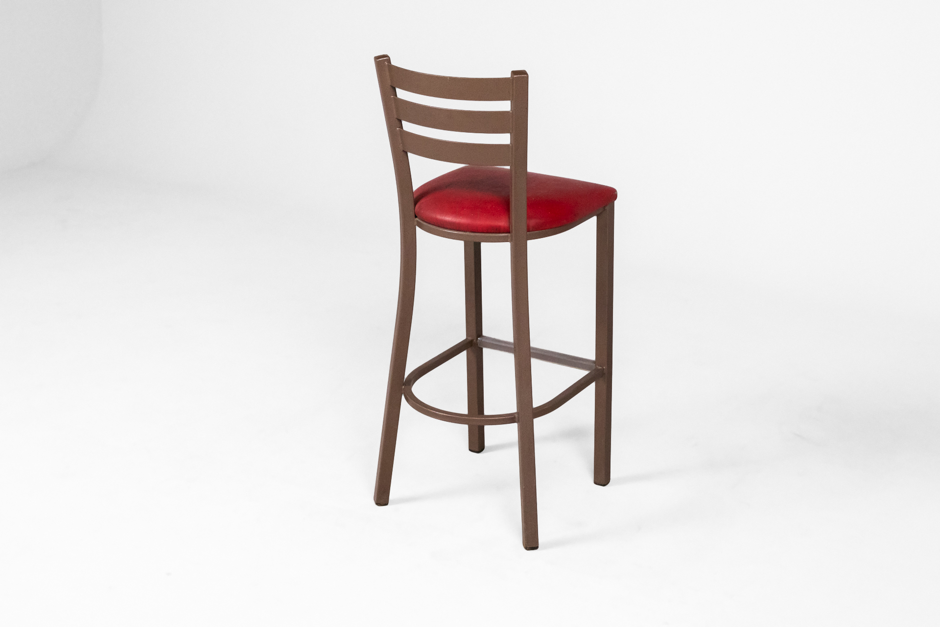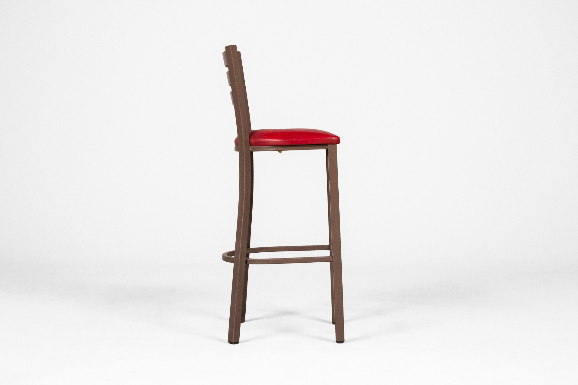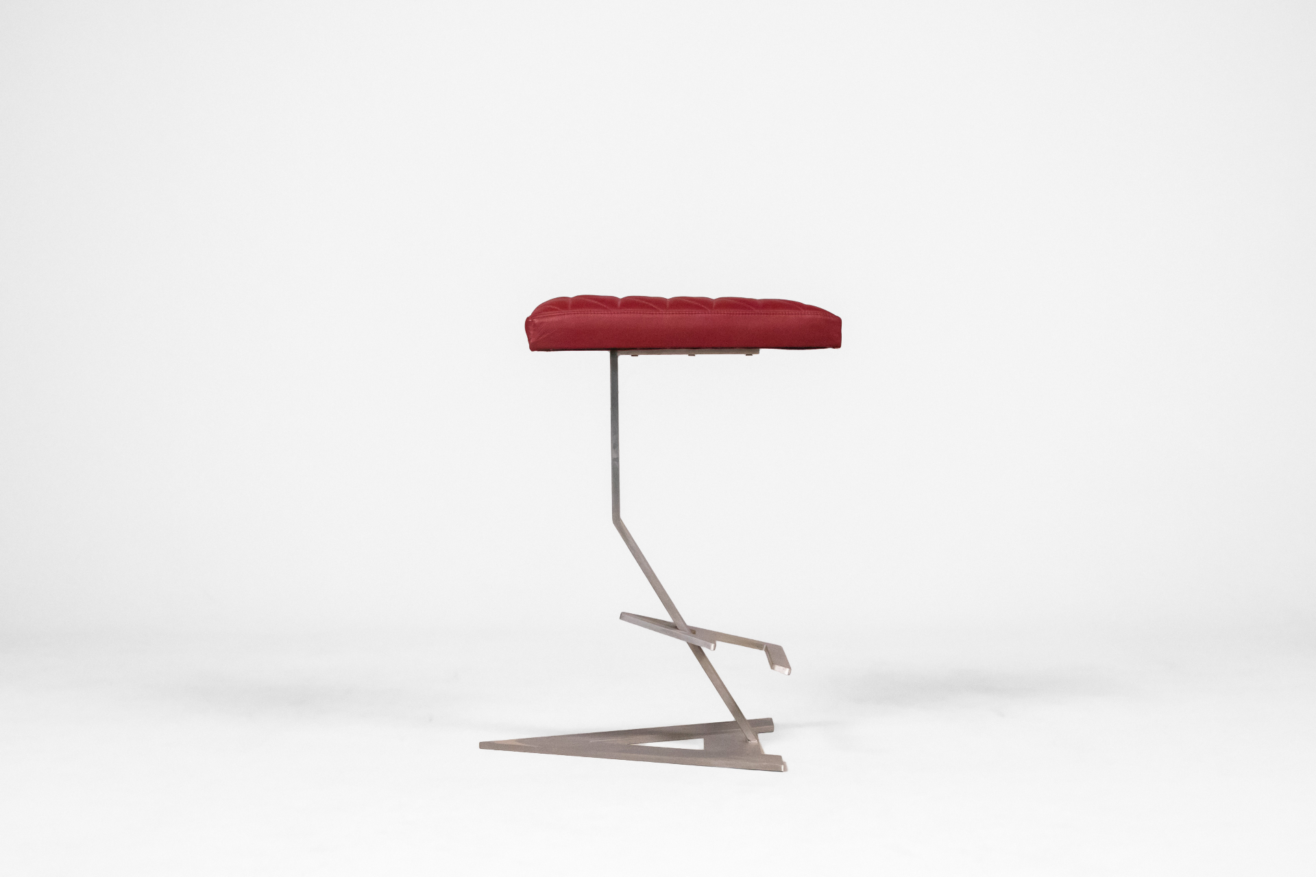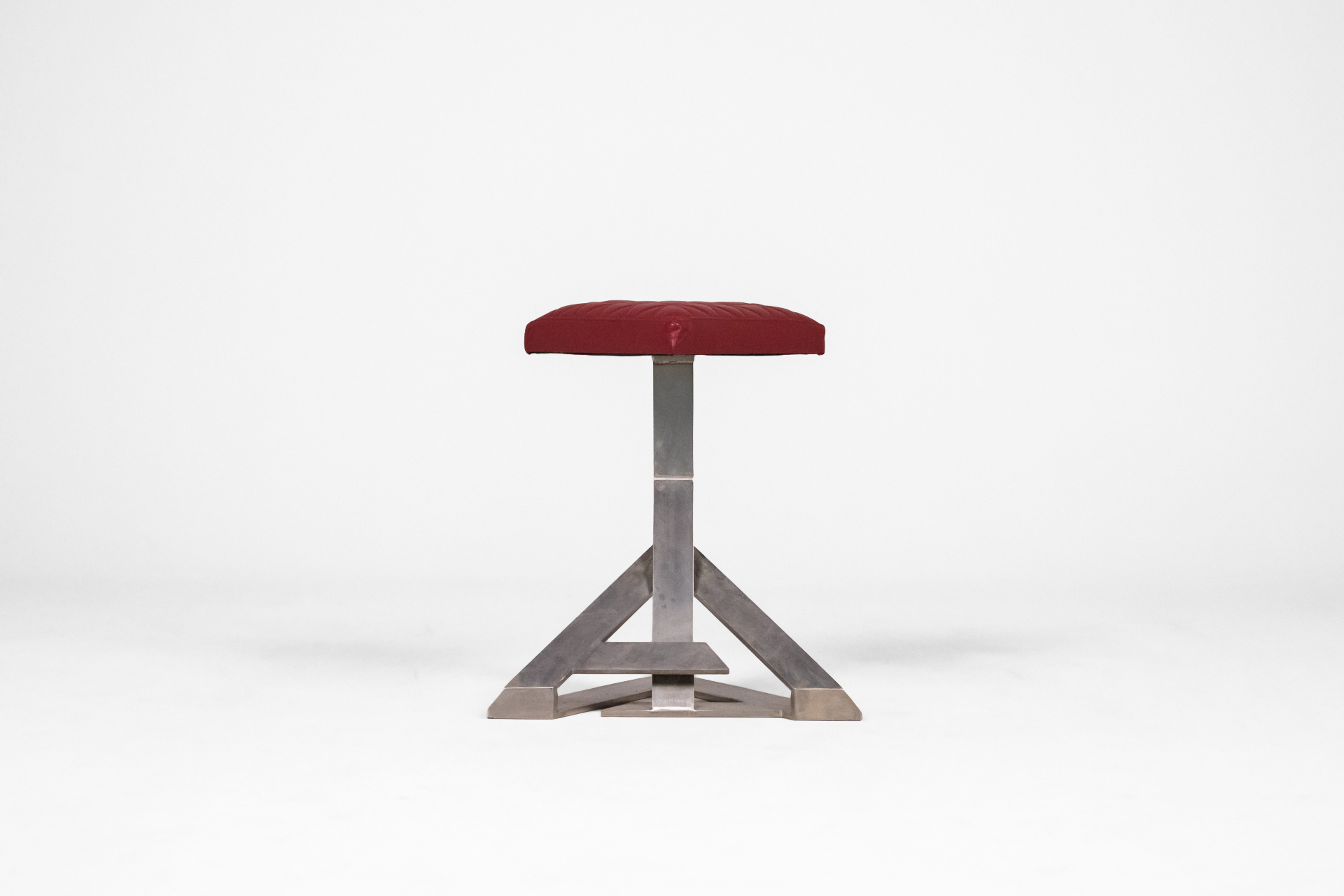 Háromszögű, piros, steppelt textil ülőfelület, fényes fém lábazattal