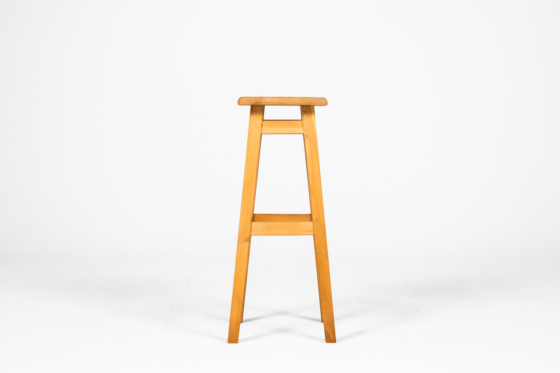 Négyzet alakú, világosbarna fa ülőfelület, négy lábbal és egyszerű kerettel