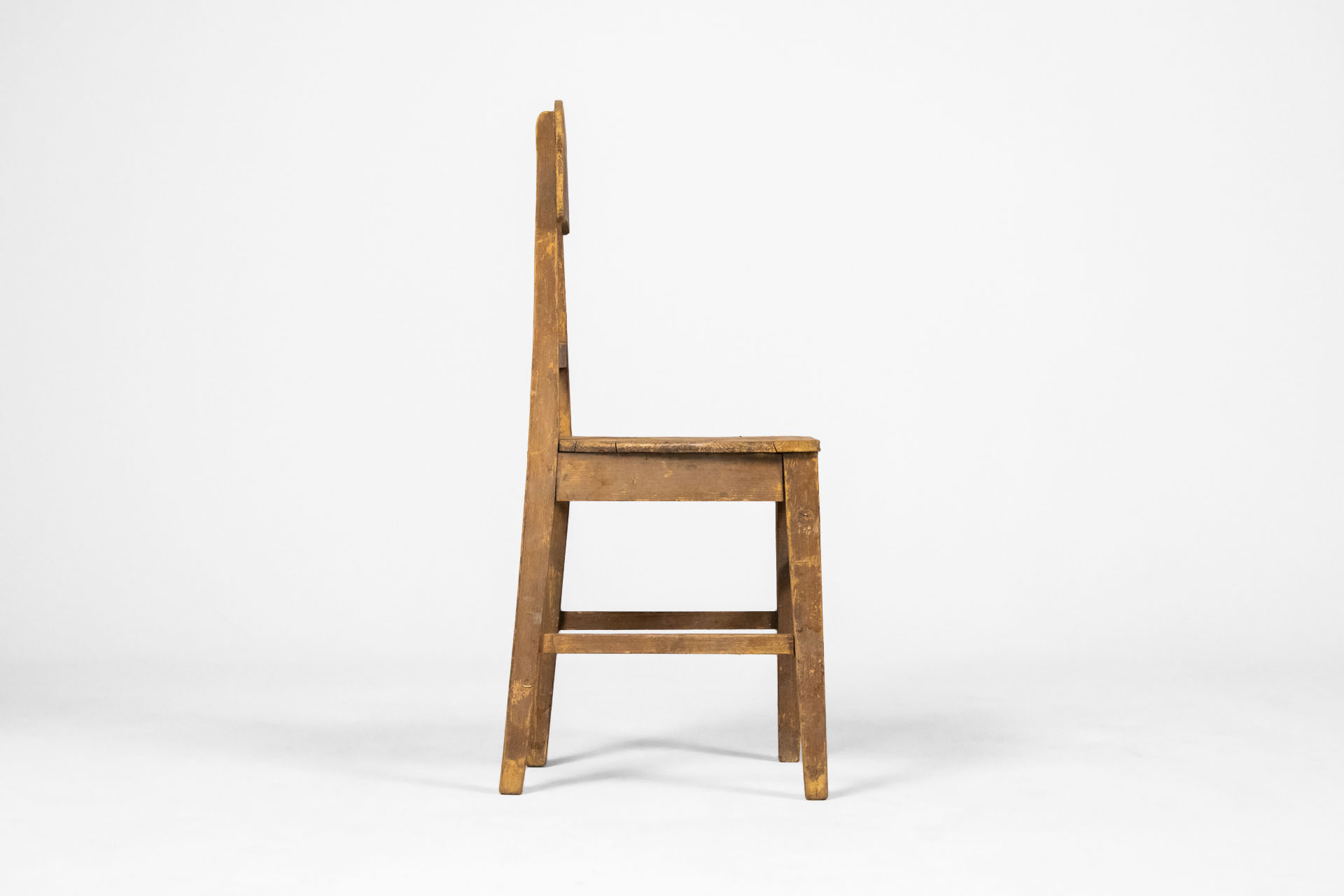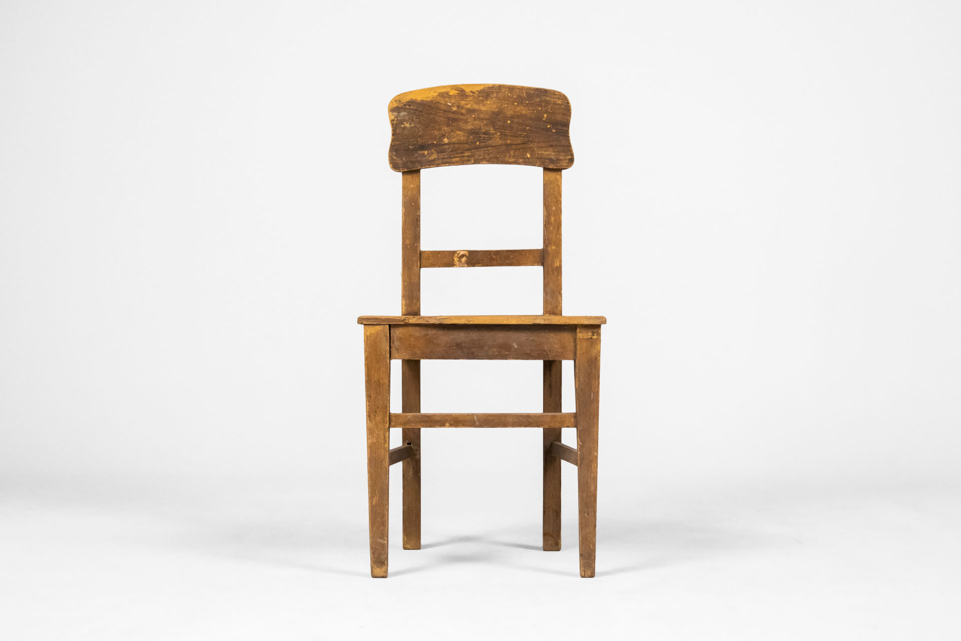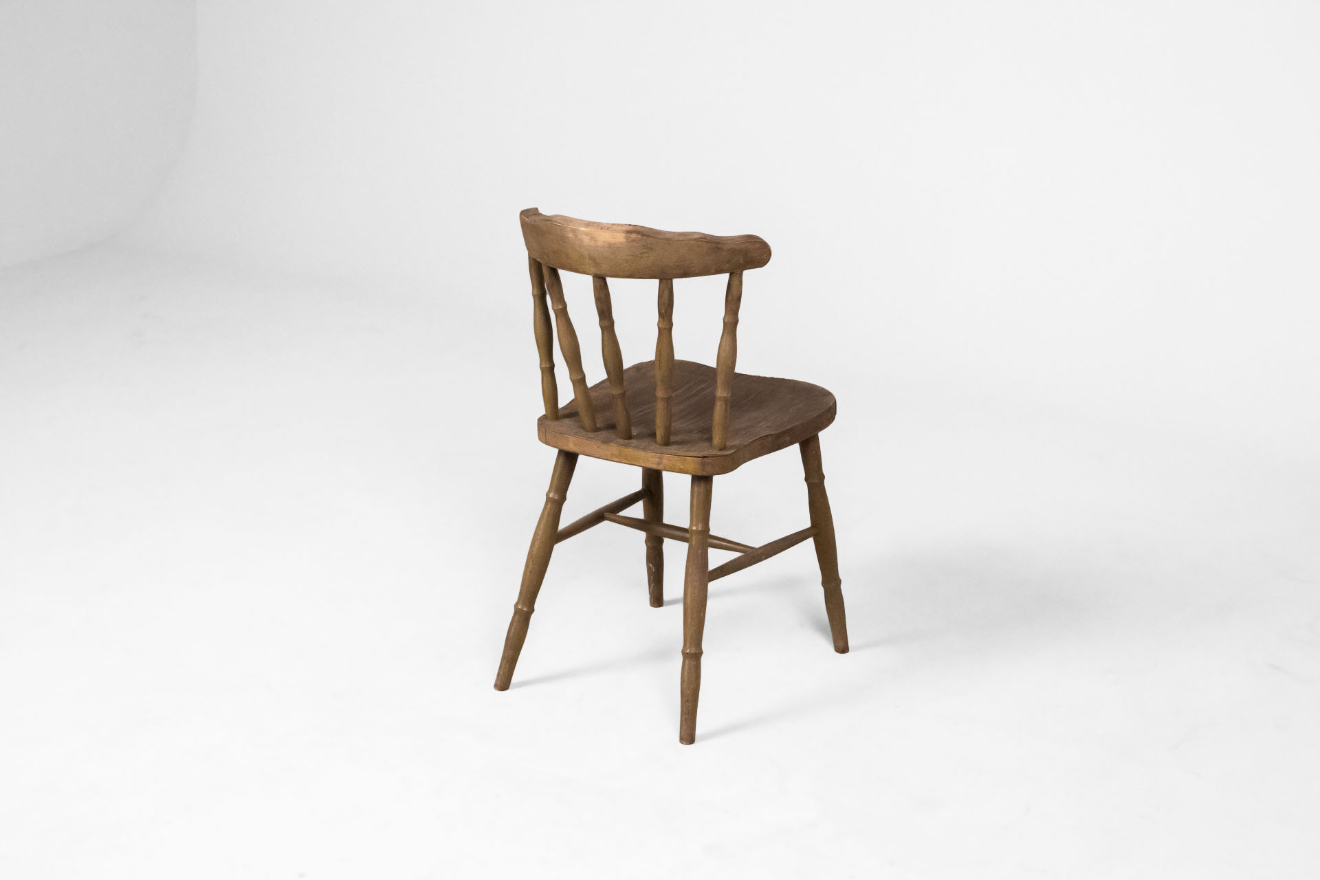 Egyszerű, de karakteres vintage fa szék, amely a használat során megkopott, rusztikus megjelenést kölcsönöz