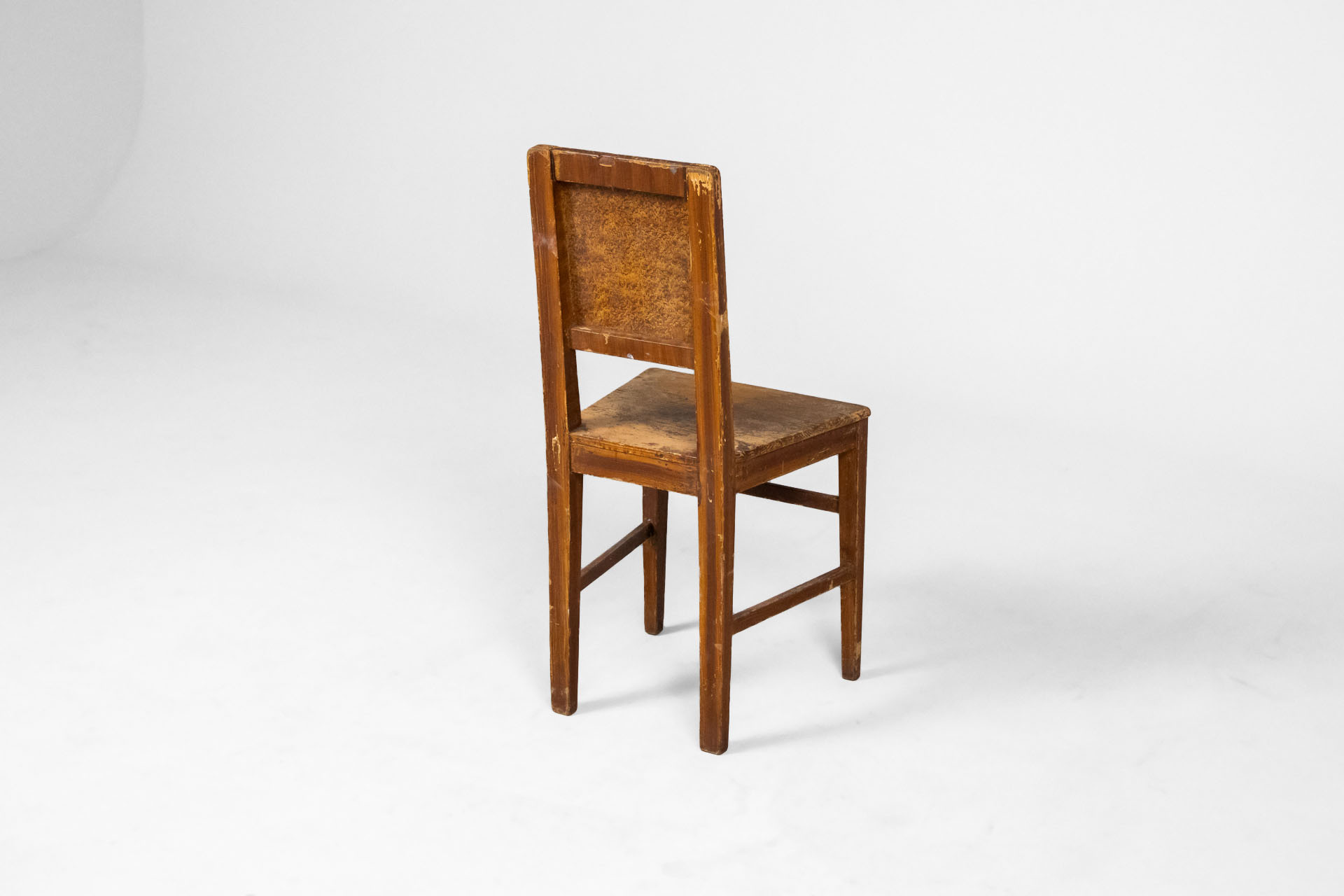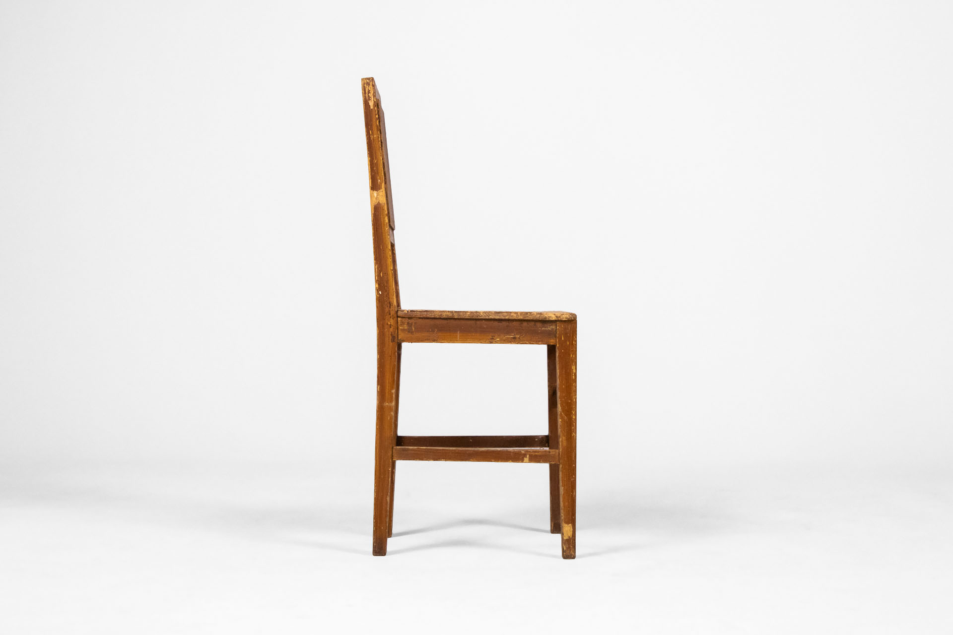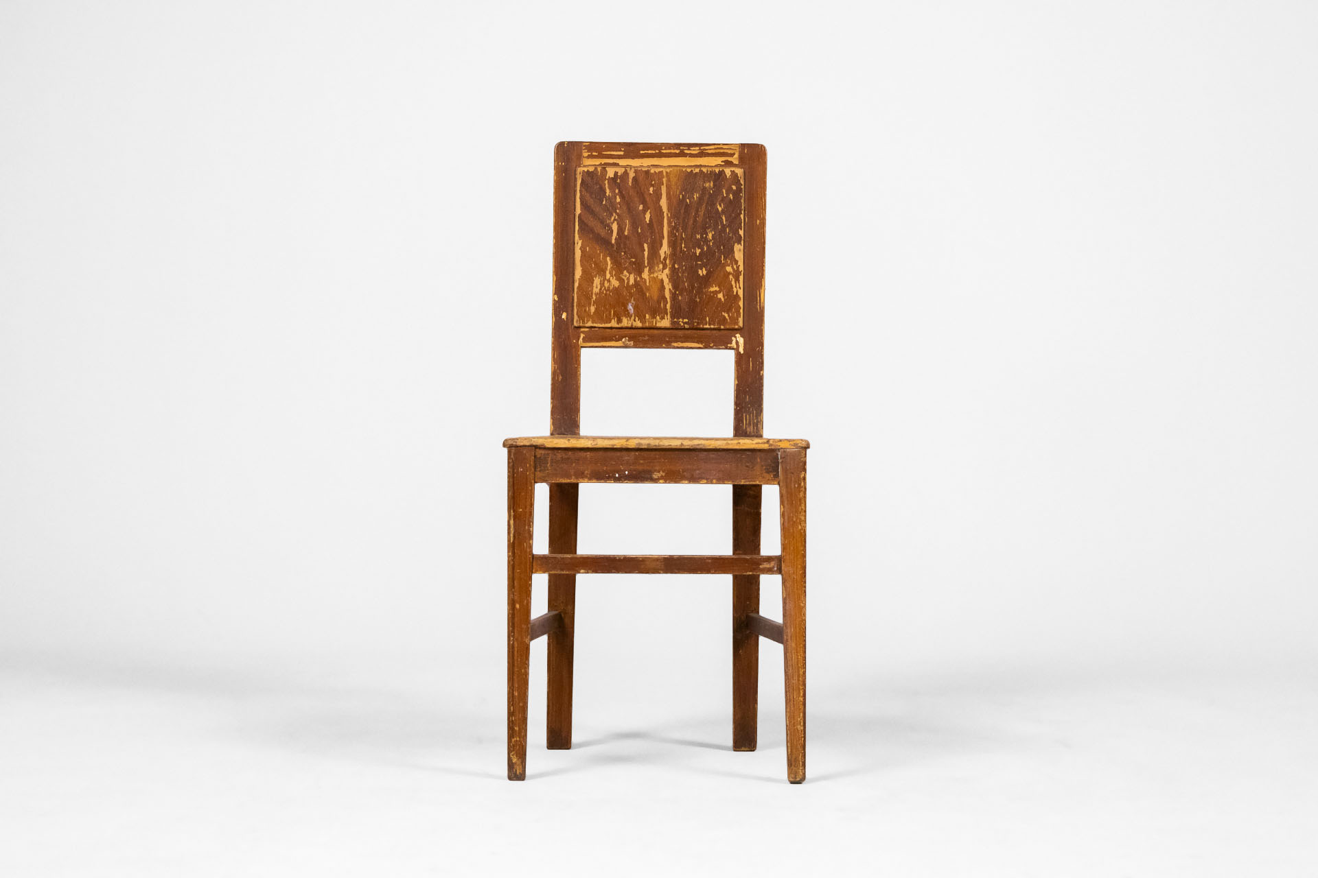 Egyszerű, de karakteres vintage fa szék, amely a használat során megkopott, rusztikus megjelenést kölcsönöz