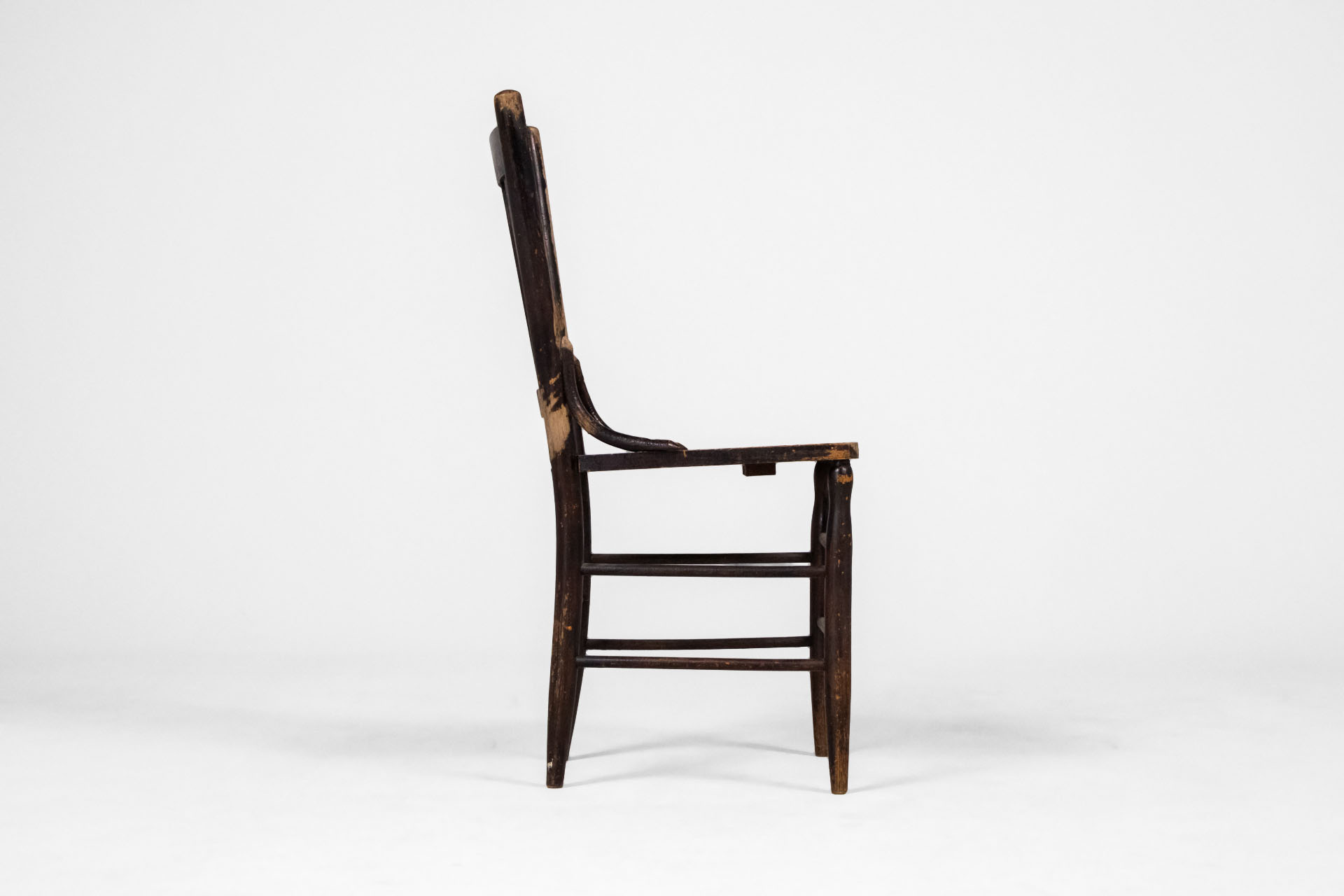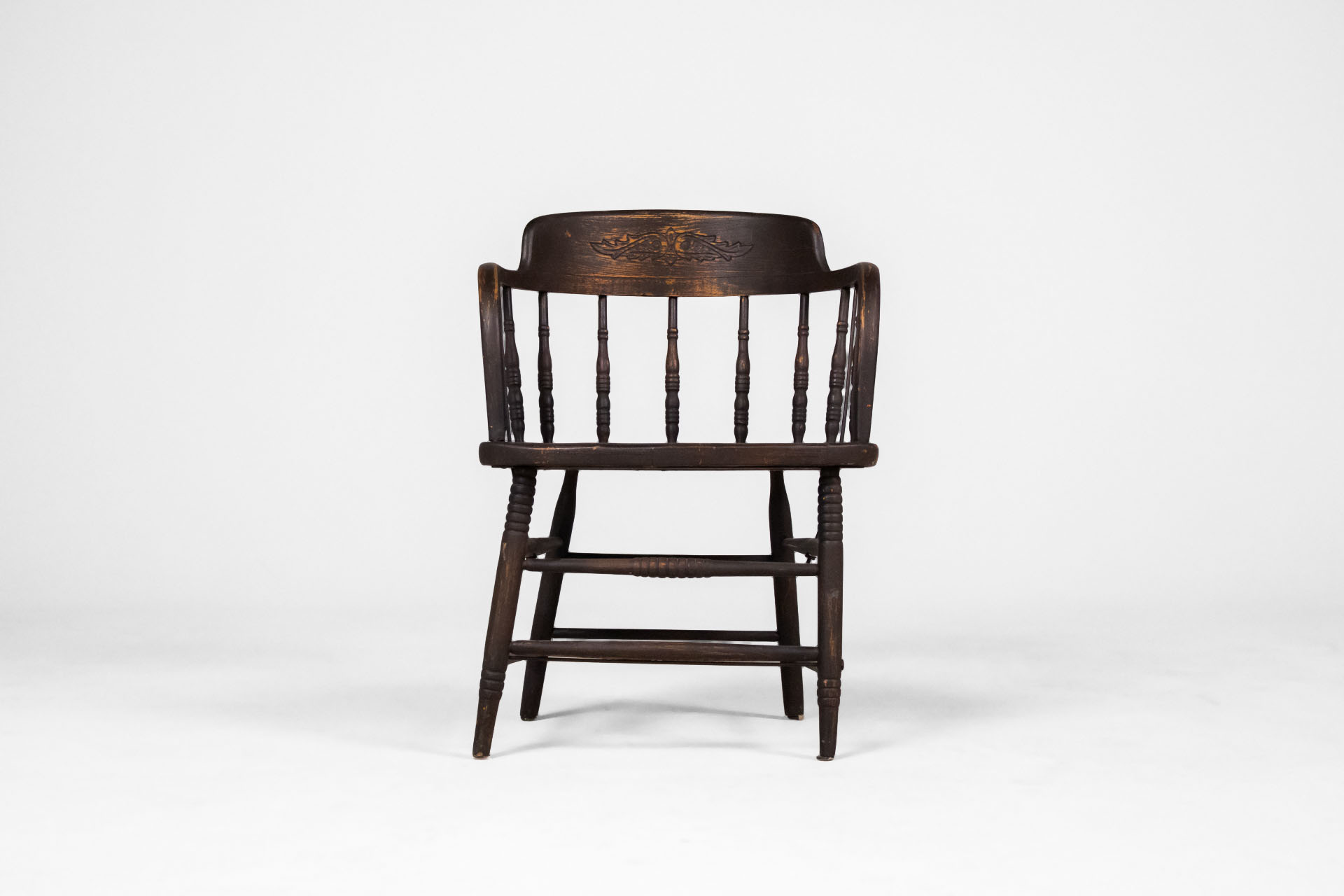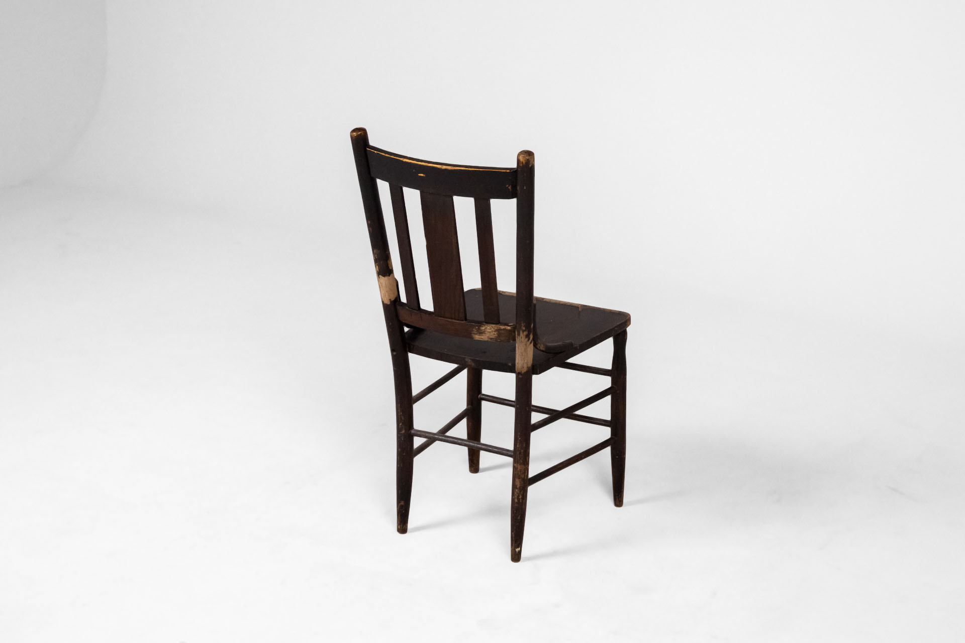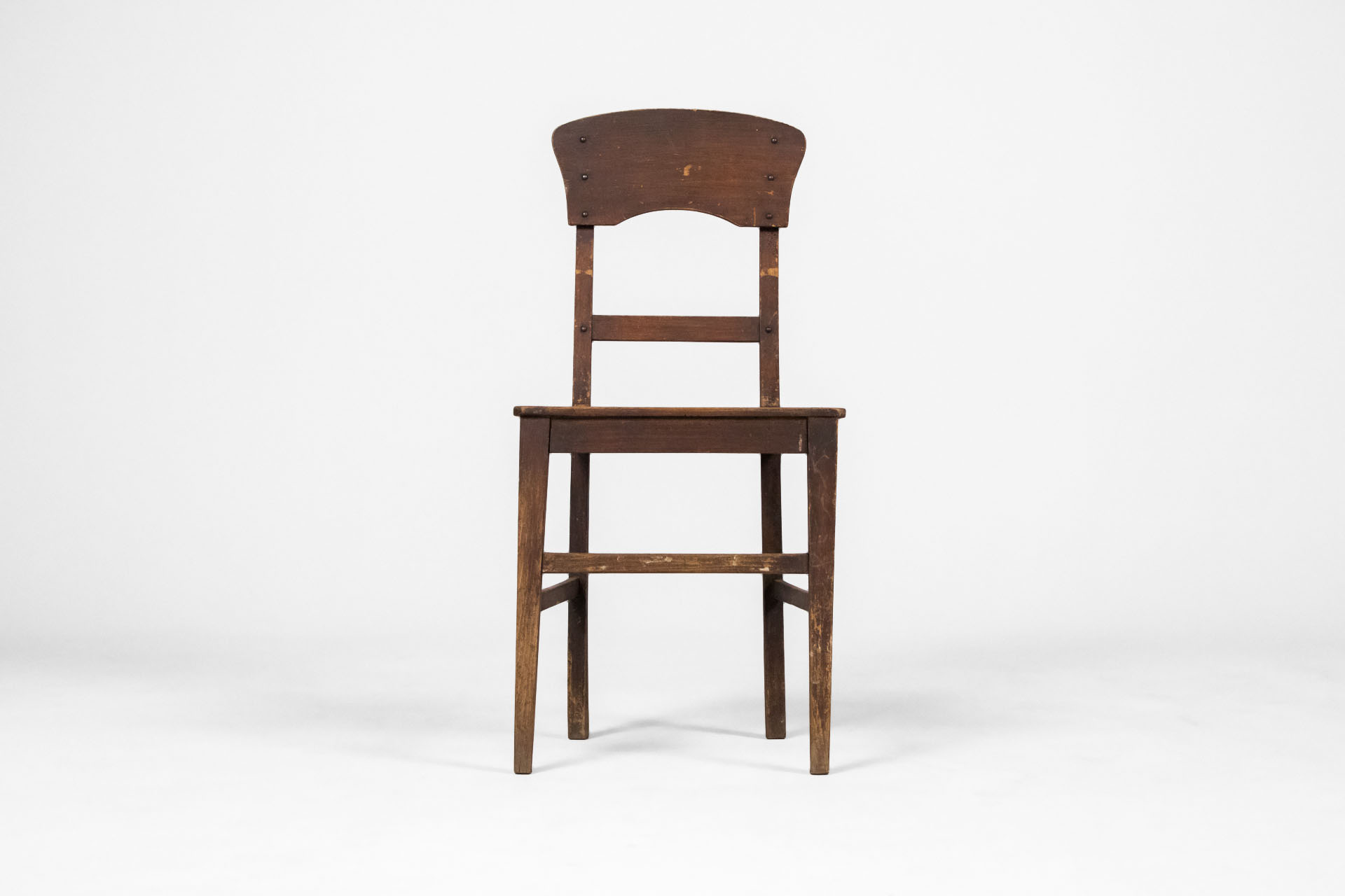 Egyszerű, de stílusos vintage fa szék. A szék sötétbarna színű, enyhén kopott felülettel, ami a használat nyomait viseli magán, így autentikus megjelenést kölcsönöz