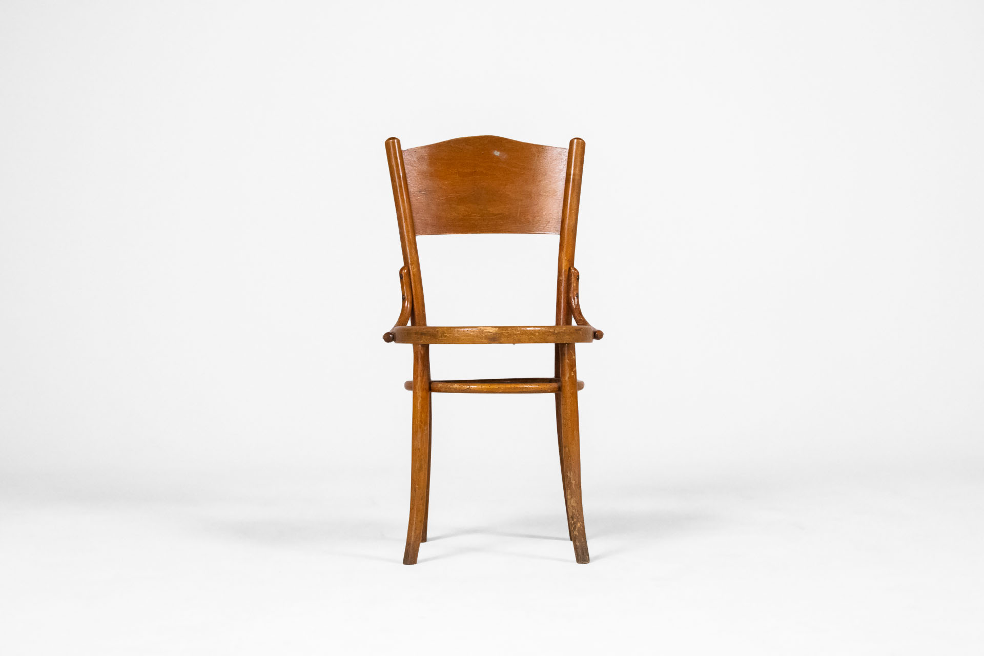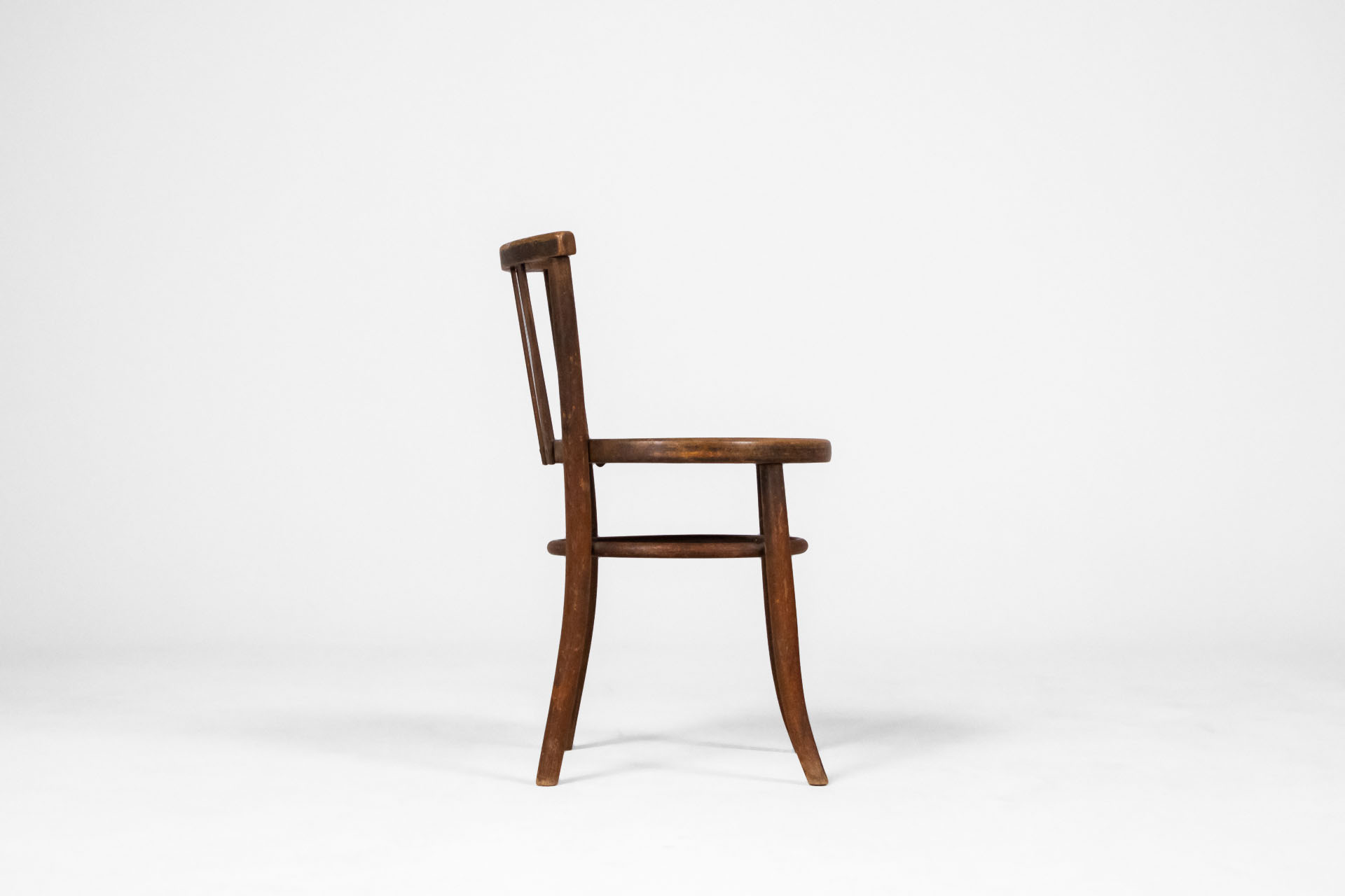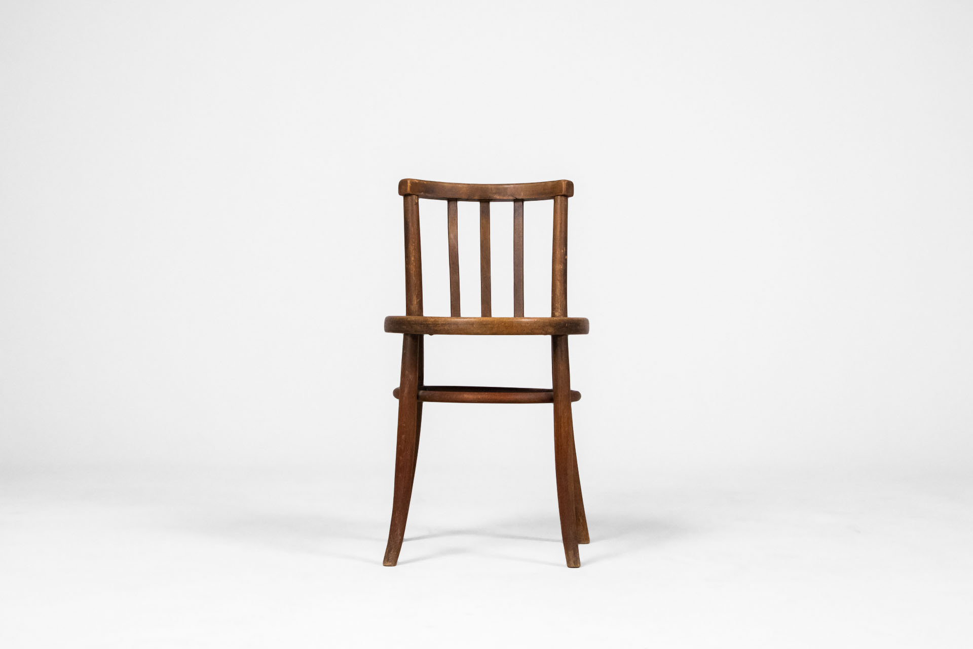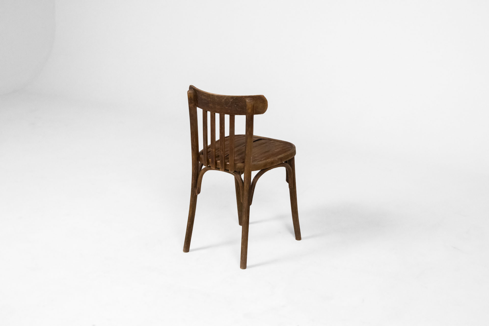 Egyszerű, de elegáns vintage fa szék, klasszikus formával és kényelmes kerek ülőfelülettel. A szék hátoldala enyhén ívelt, ami fokozza a kényelmet és a stílust