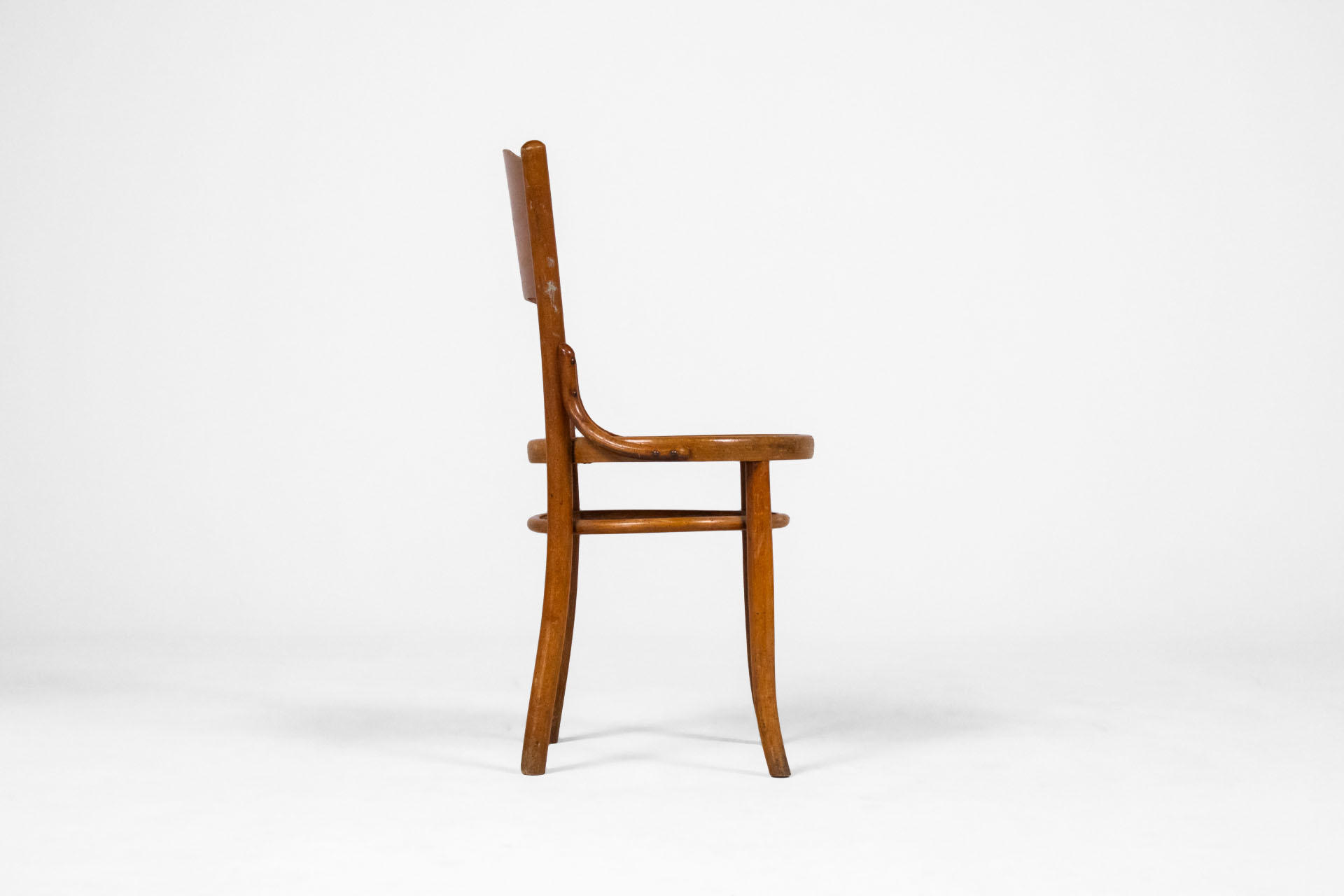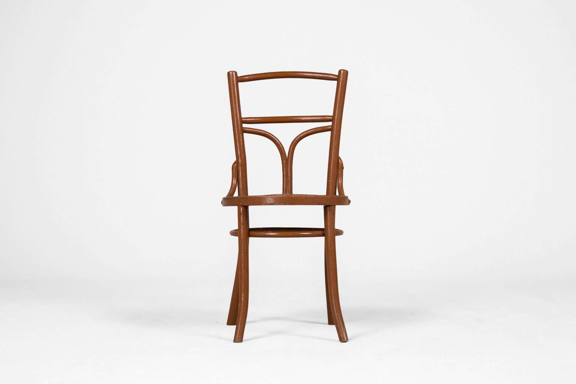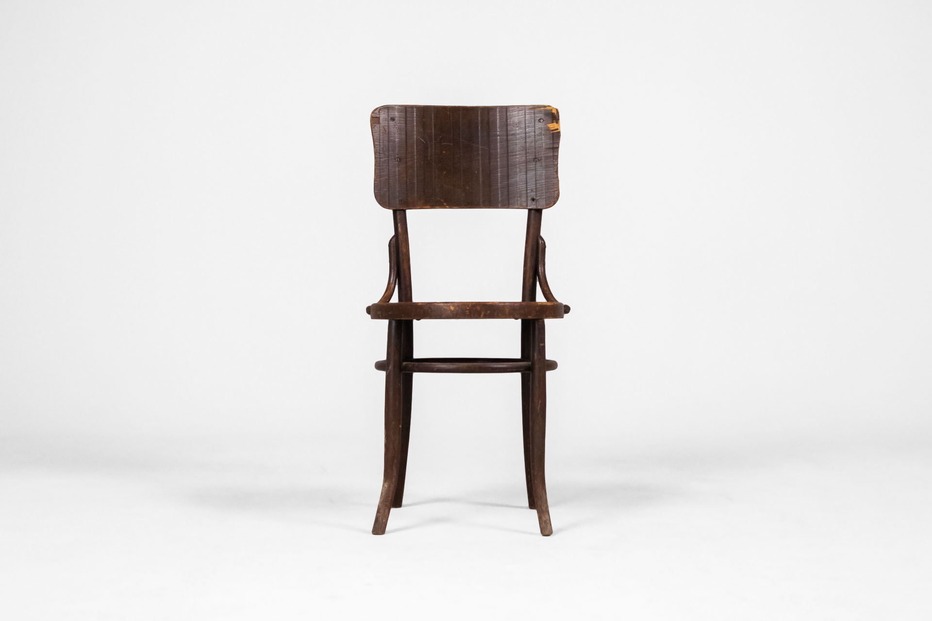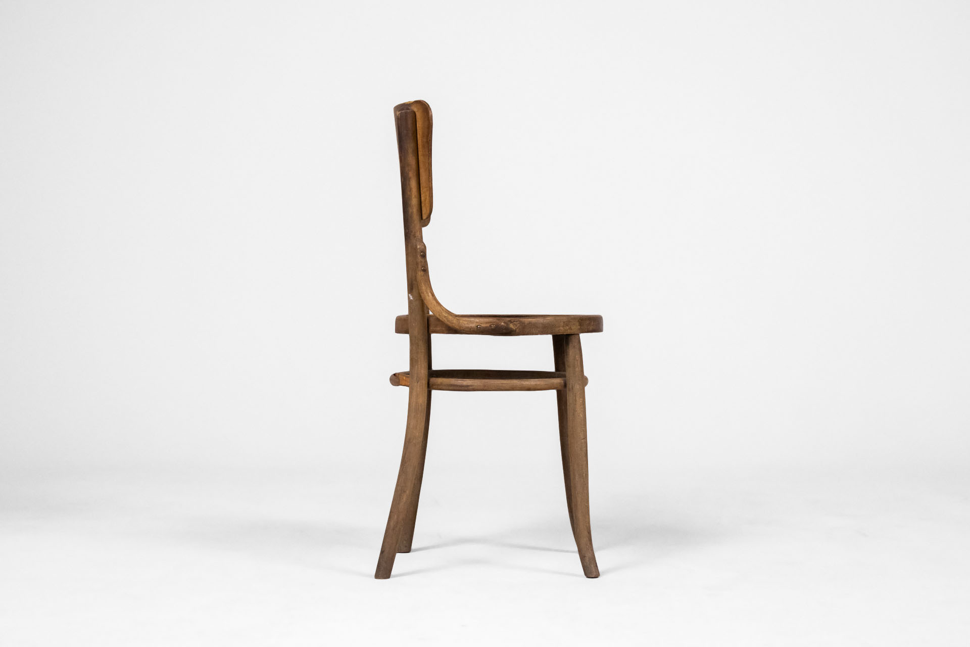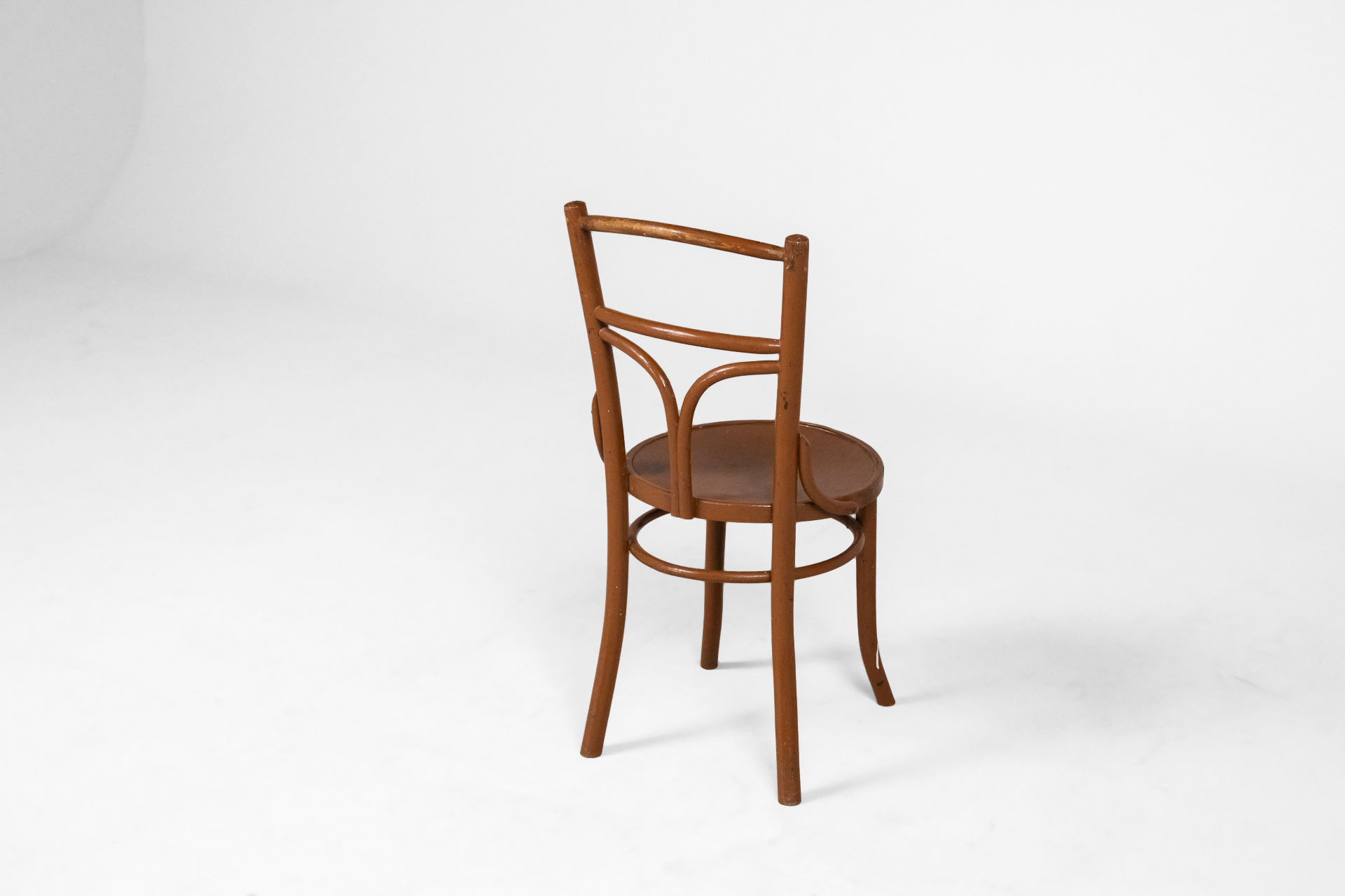 Egyszerű, de elegáns vintage fa szék, klasszikus formával és kényelmes kerek ülőfelülettel. A szék hátoldala enyhén ívelt, ami fokozza a kényelmet és a stílust