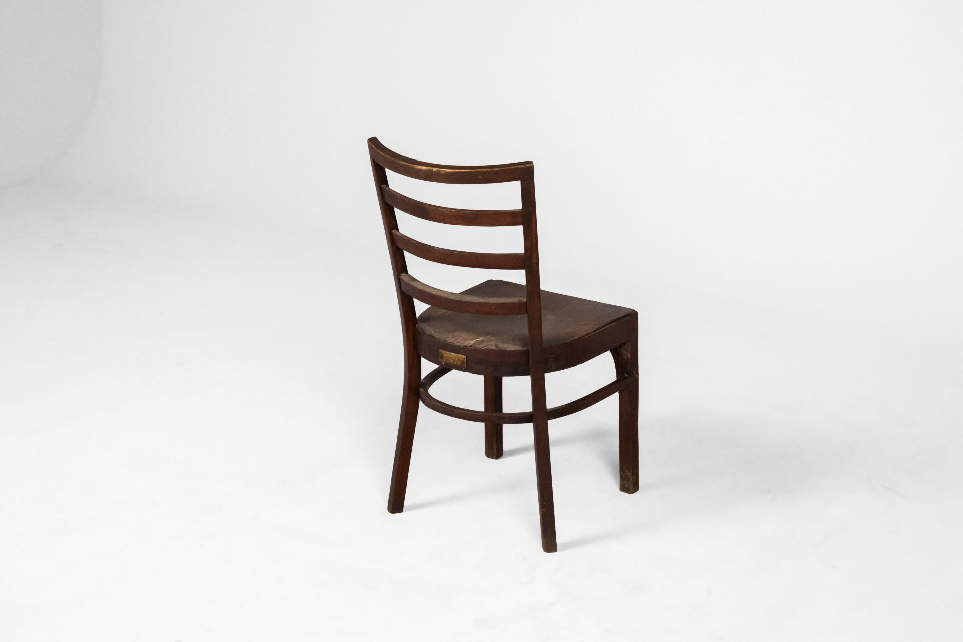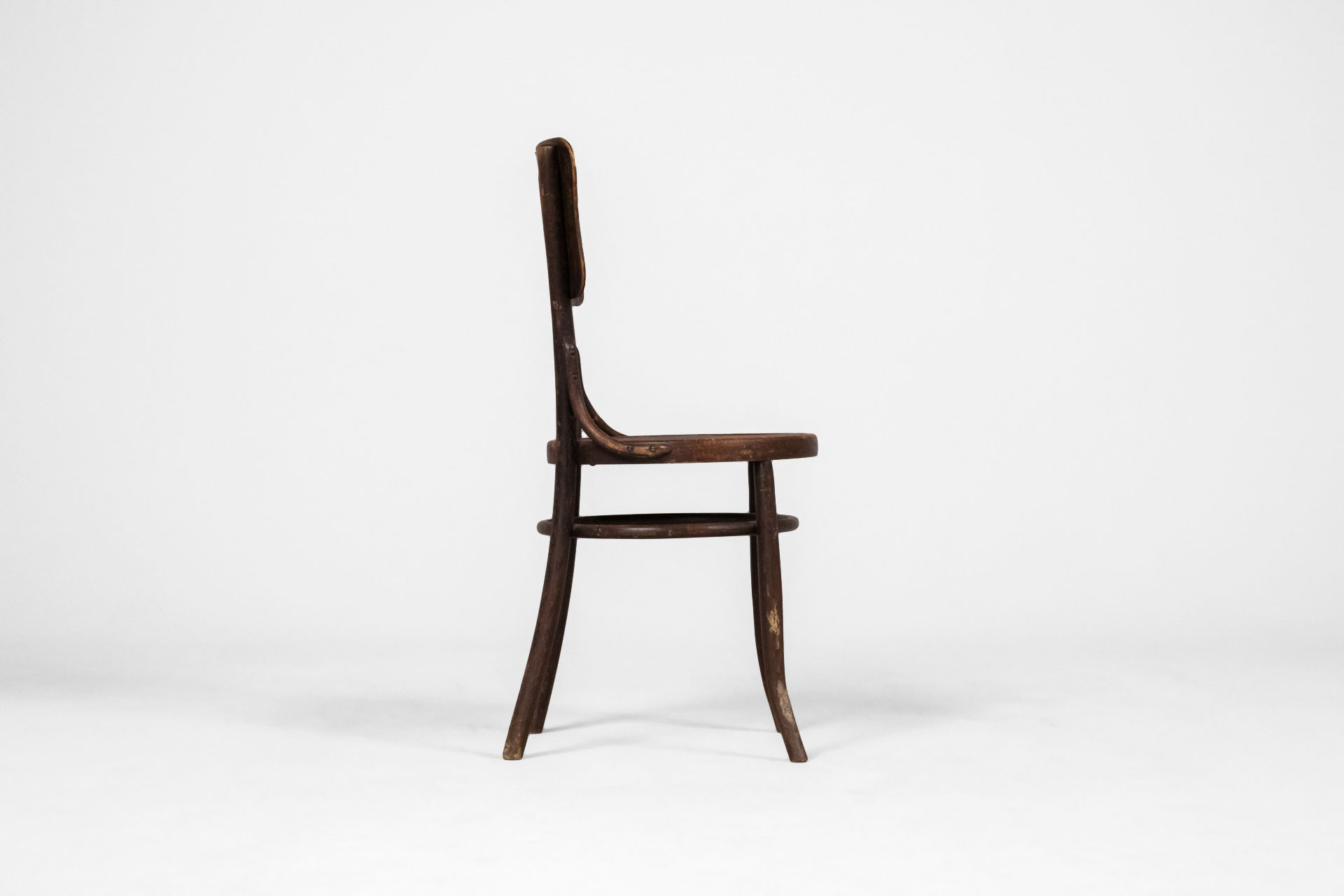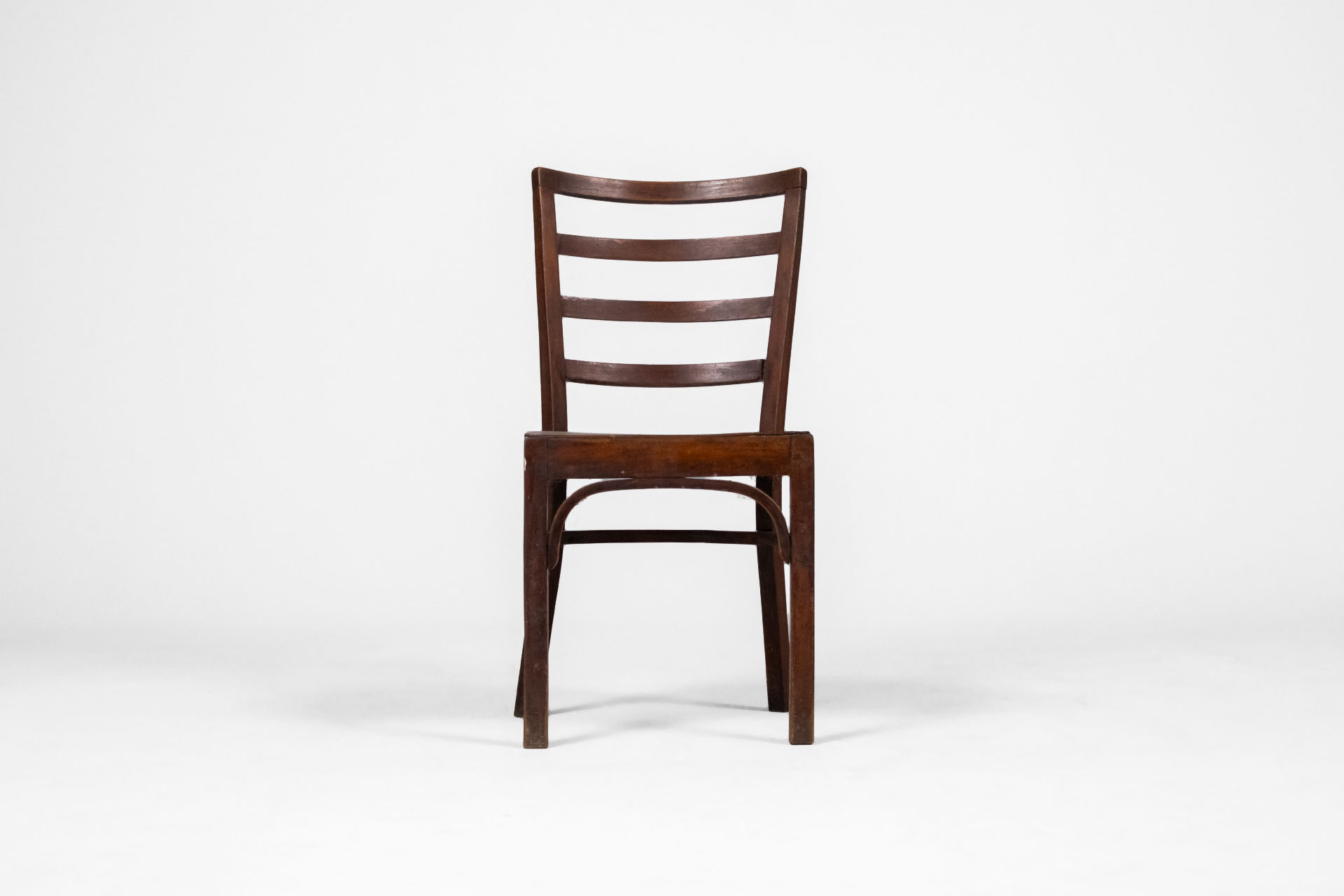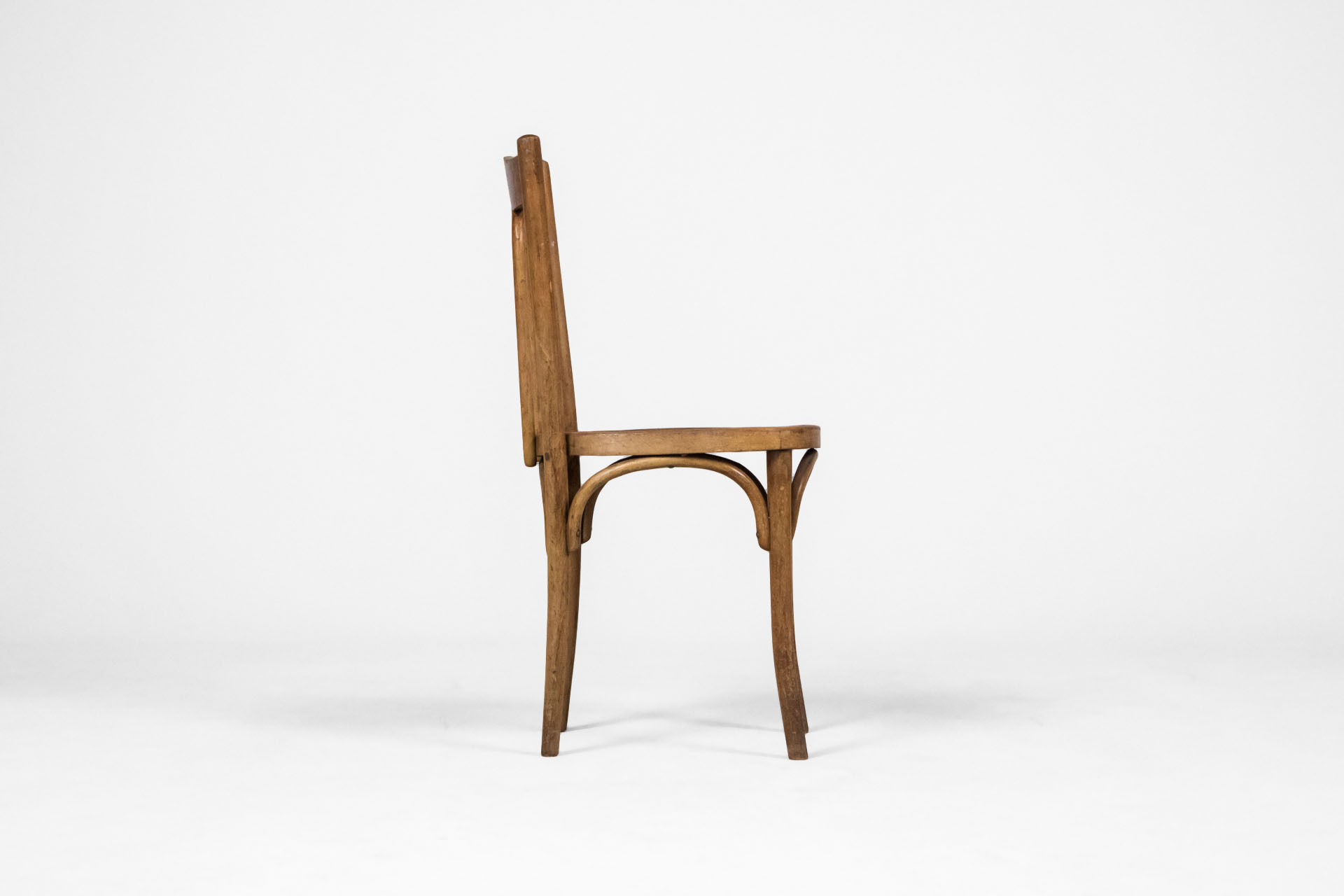 Egyszerű, de elegáns vintage fa szék, klasszikus formával és kényelmes kerek ülőfelülettel. A szék hátoldala enyhén ívelt, ami fokozza a kényelmet és a stílust