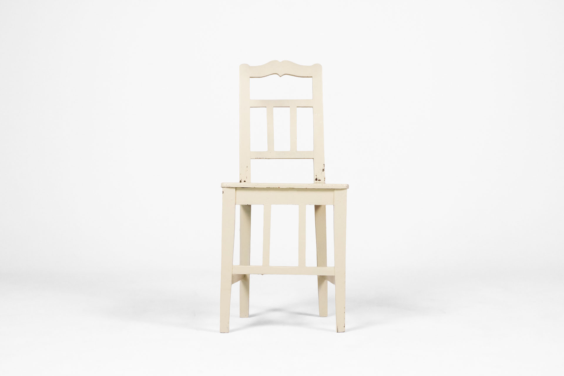 Minimalista, klasszikus stílusú fa szék, világos fehér színben