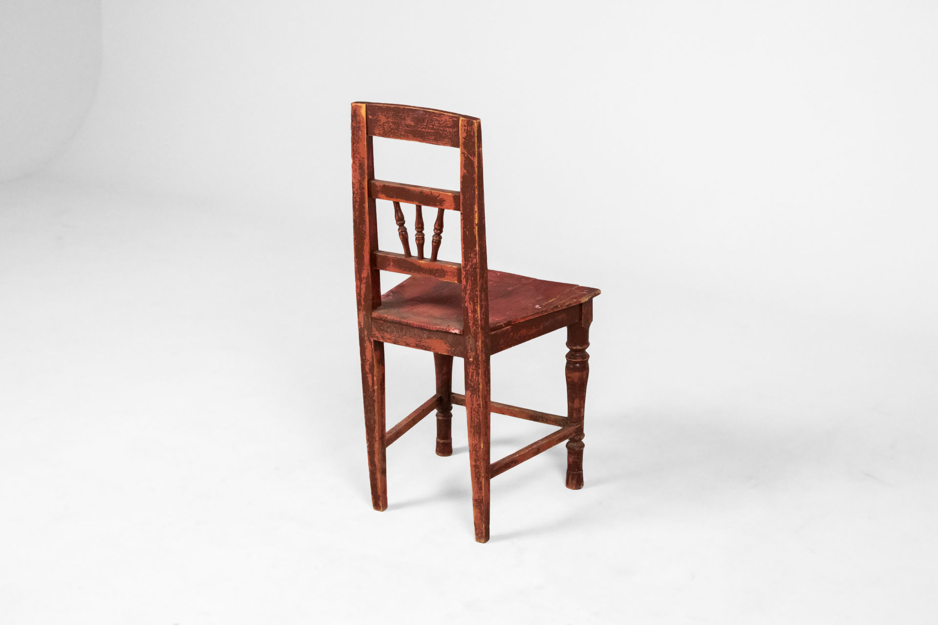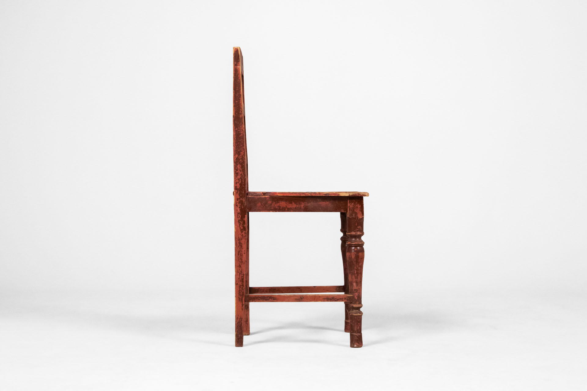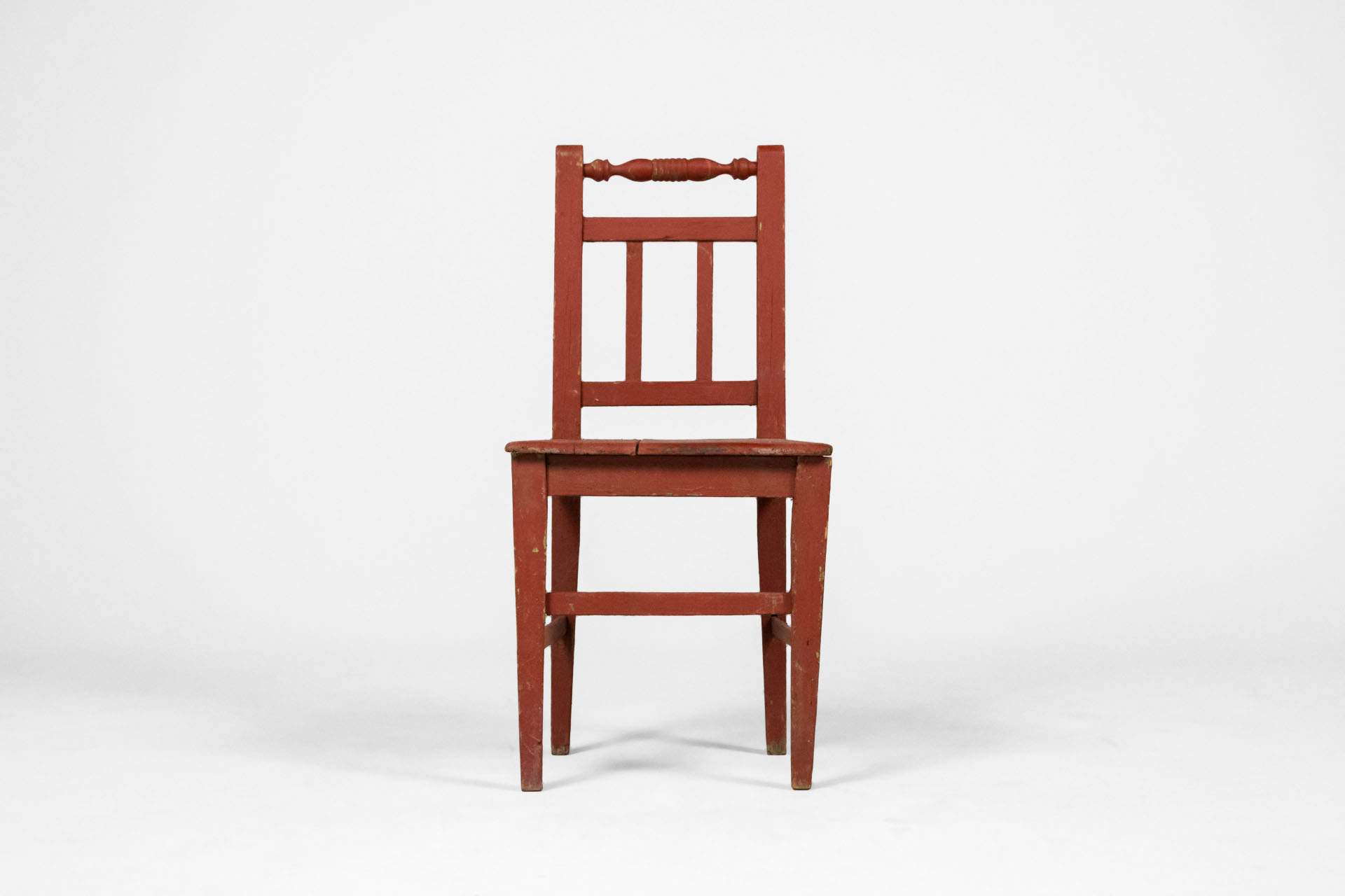 Egyszerű, rusztikus stílusú, pirosra festett fa szék, amely vintage hangulatot áraszt
