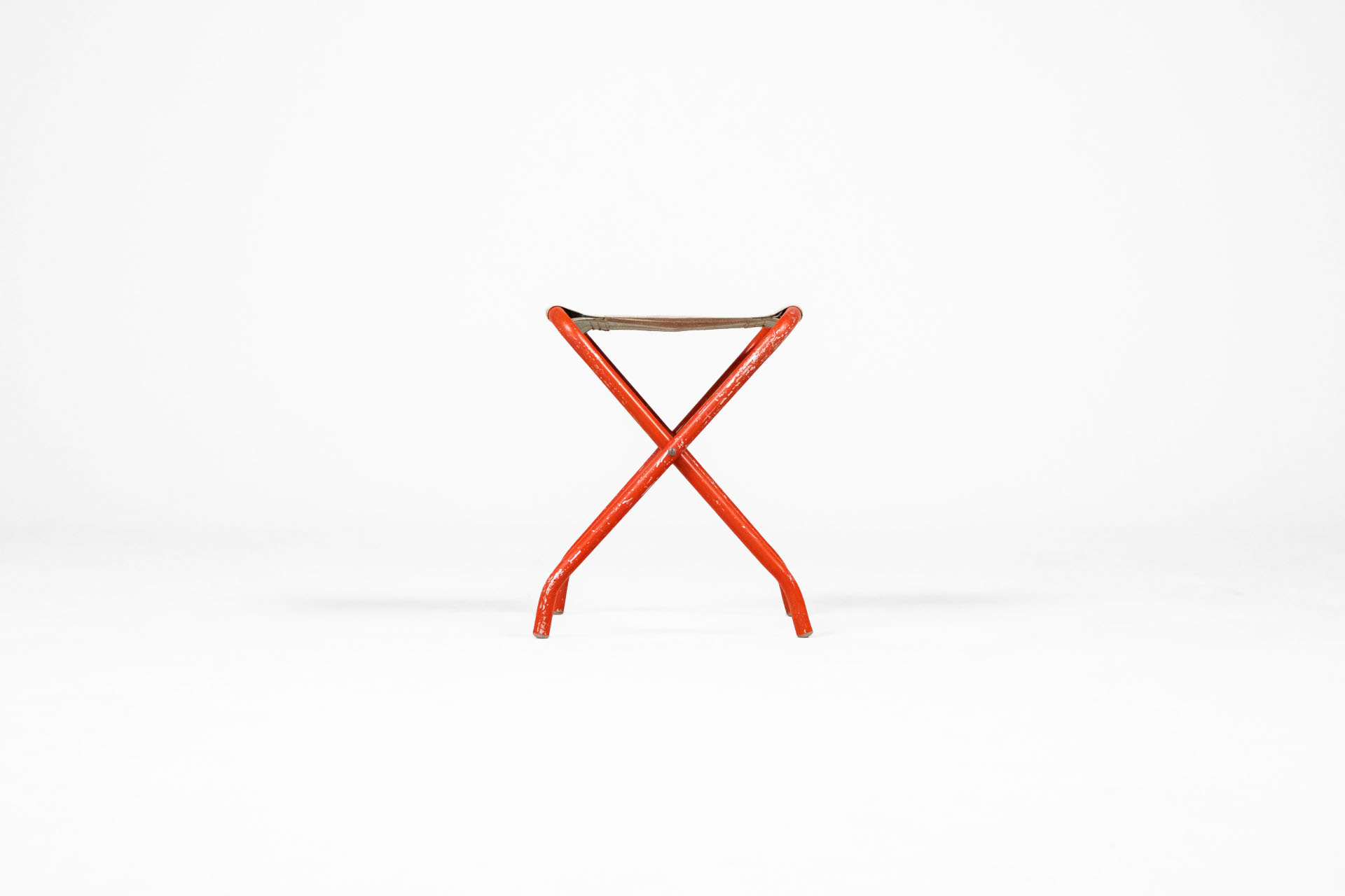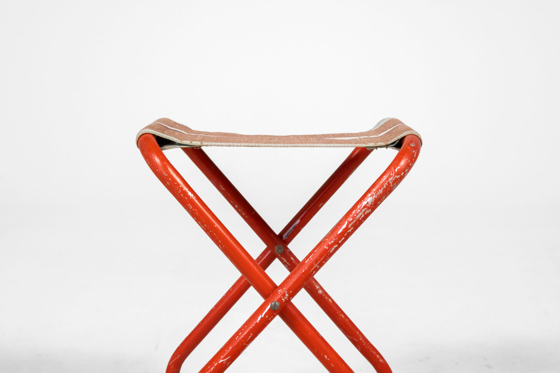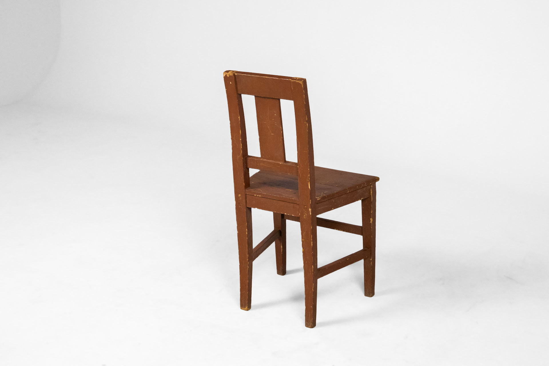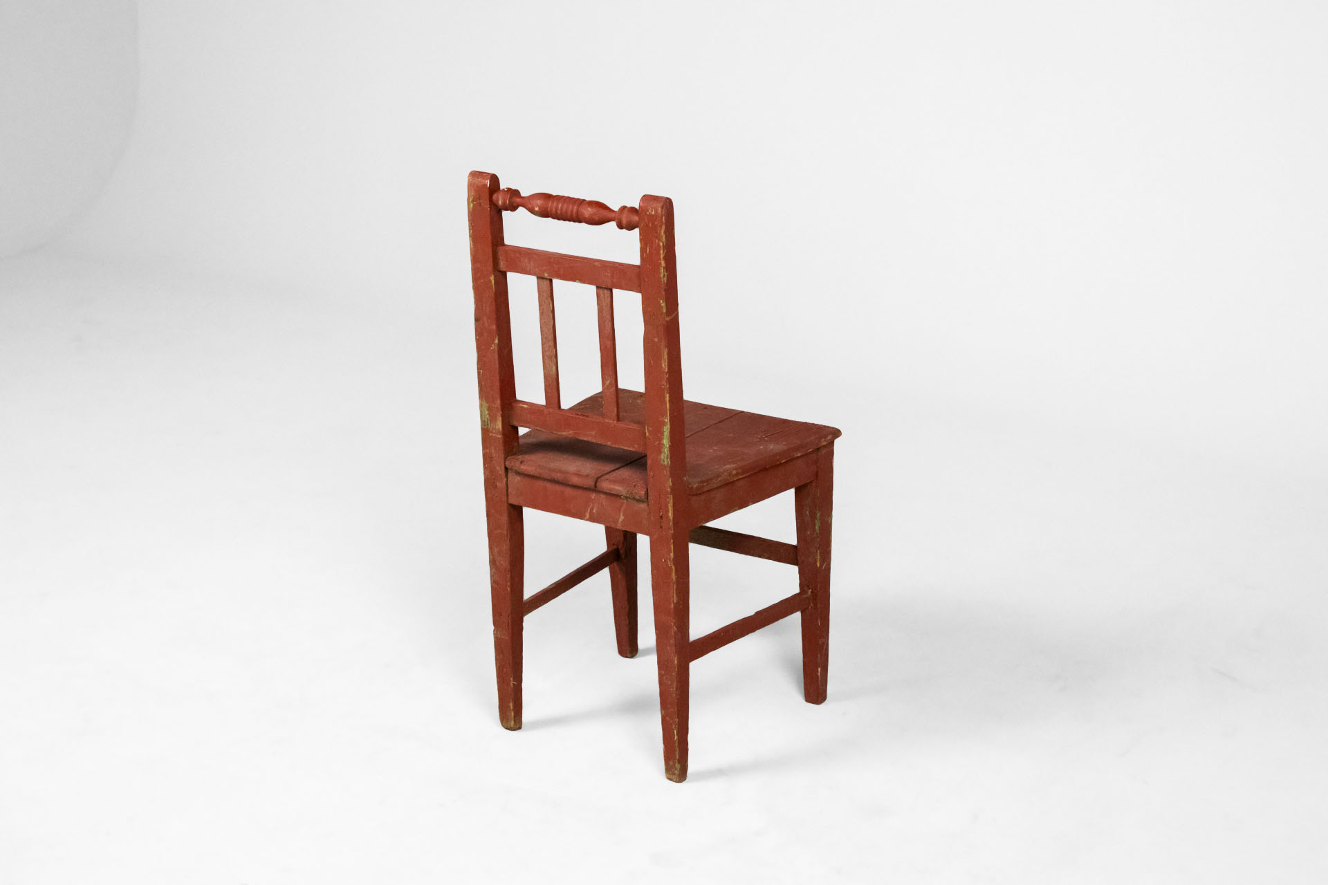 Egyszerű, rusztikus stílusú, pirosra festett fa szék, amely vintage hangulatot áraszt