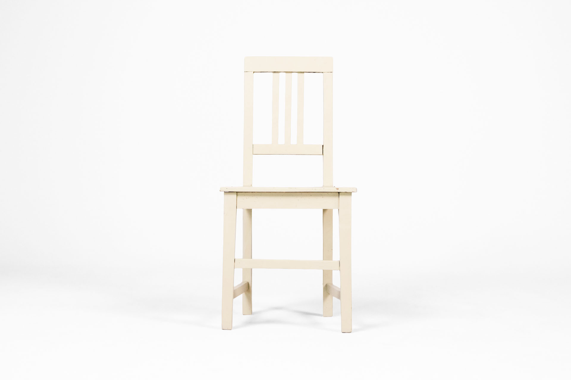 Régi stílusú, egyszerű formájú étkezőszék, amely masszív fából készült. A szék hátulján lévő lécek klasszikus megjelenést kölcsönöznek, míg a kopott felület a használat nyomait viseli magán, így autentikus, vintage...