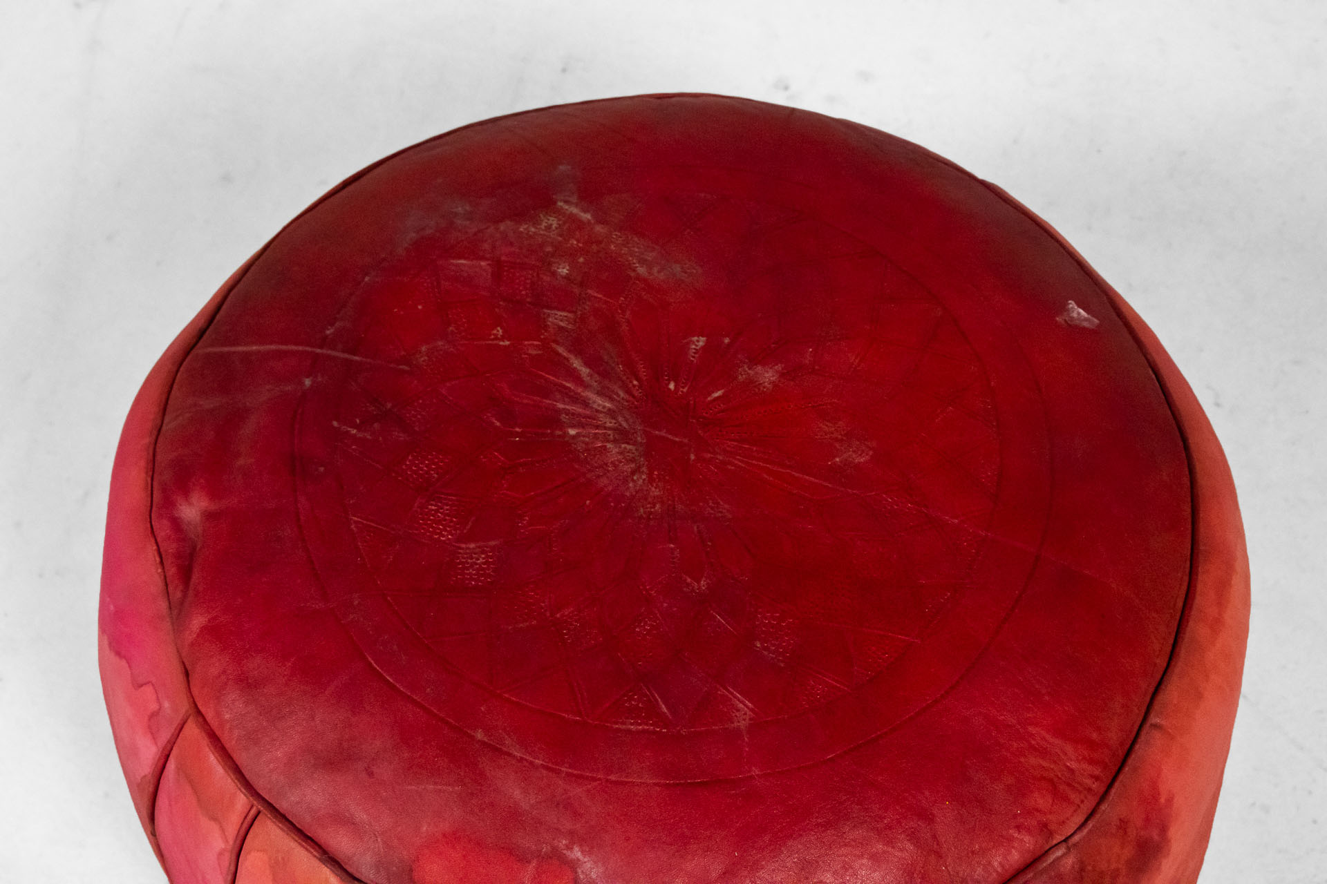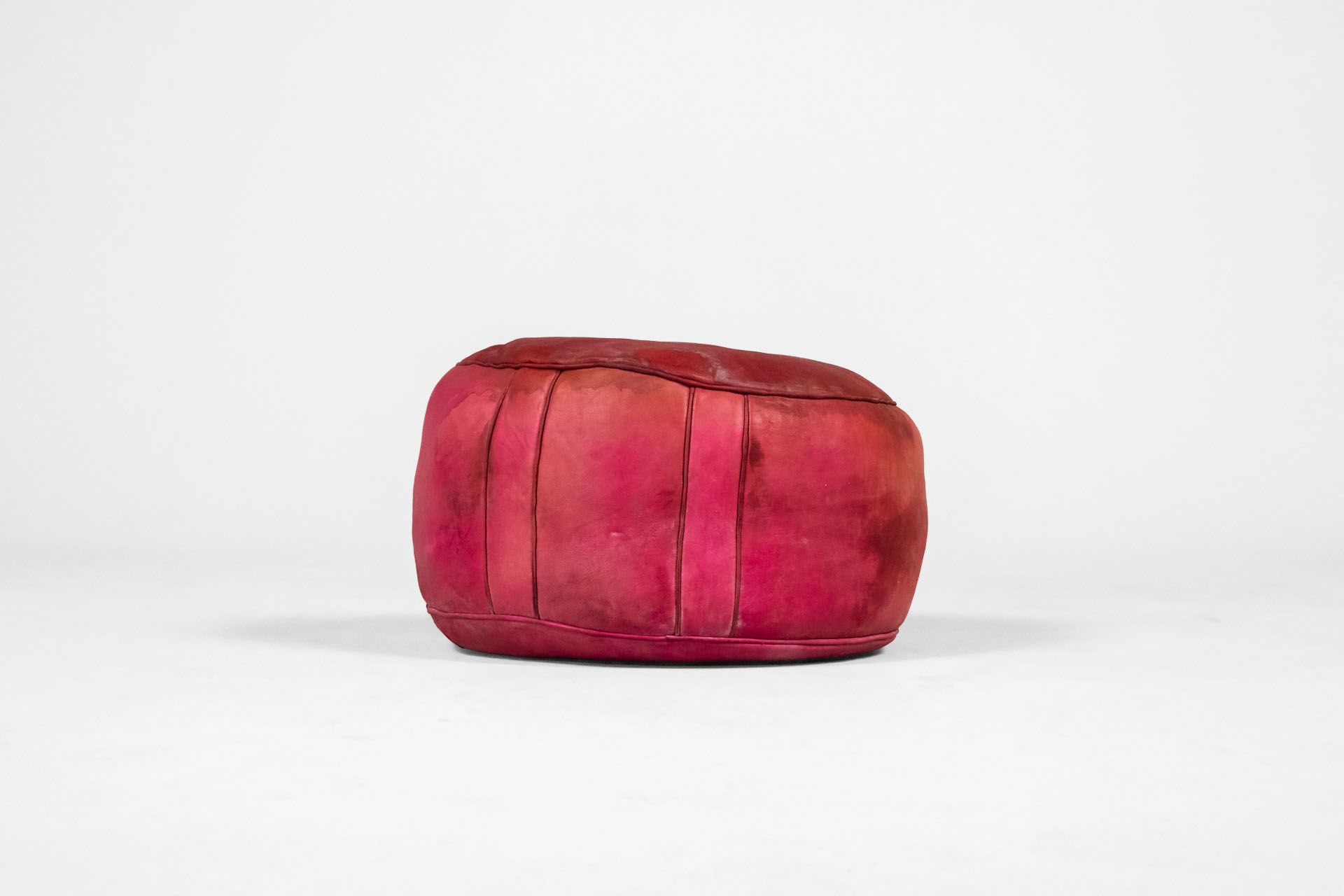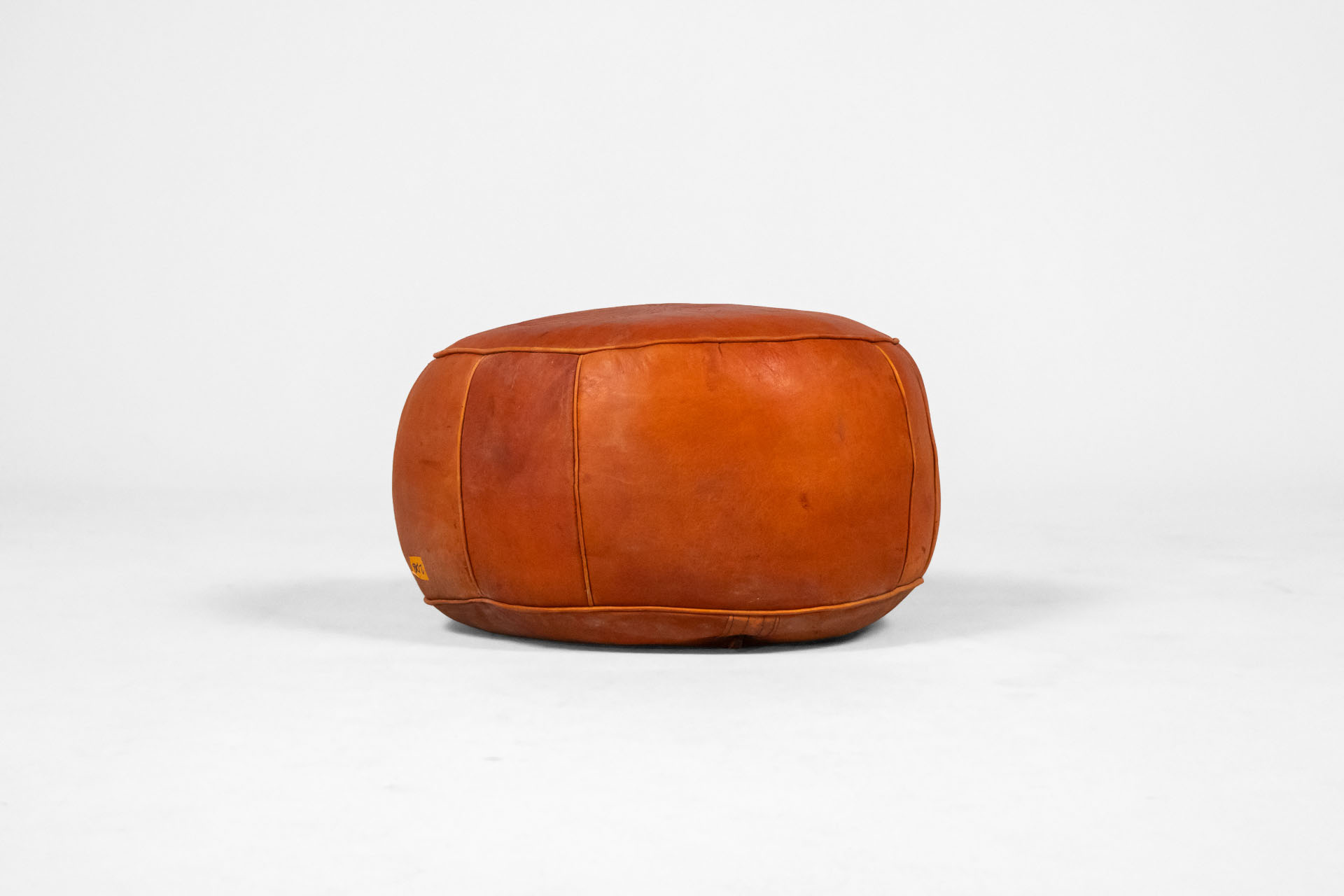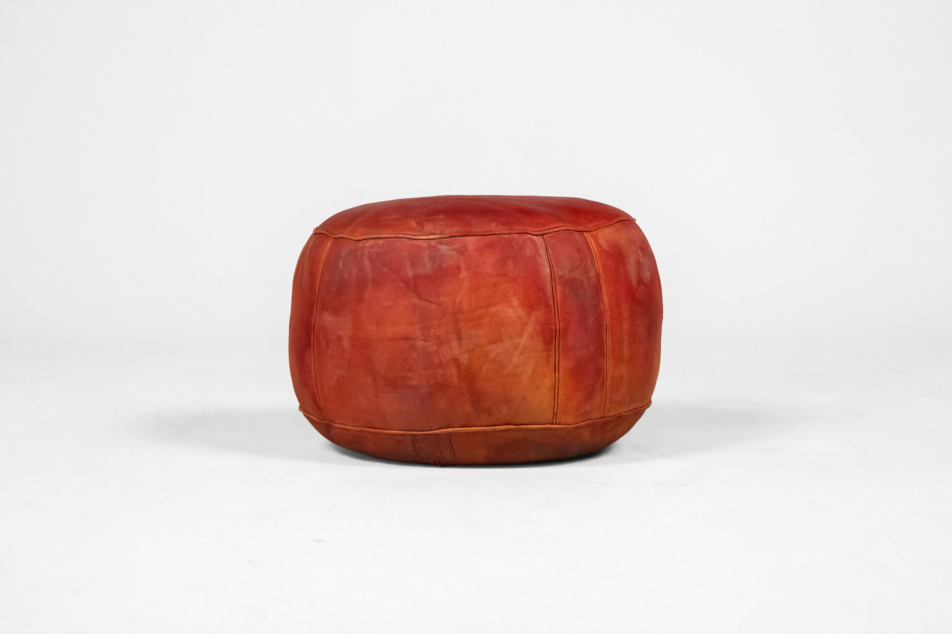 Kényelmes, kerek formájú puff, amely gazdag vöröses-barna bőr borítással rendelkezik. Az egyszerű, de elegáns kialakítás lehetővé teszi, hogy bármilyen belső térbe könnyedén illeszkedjen