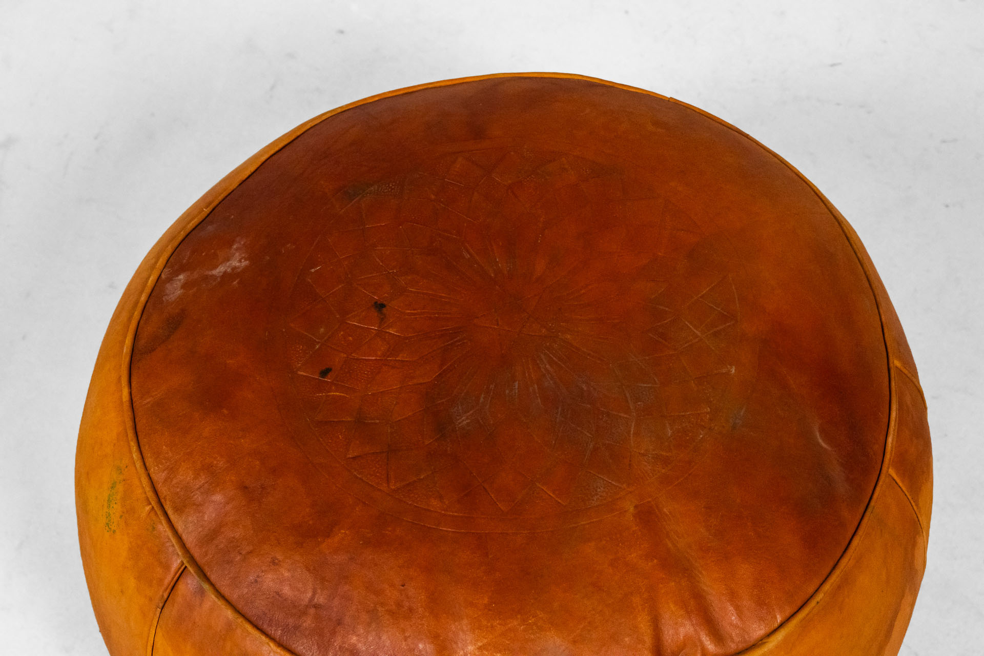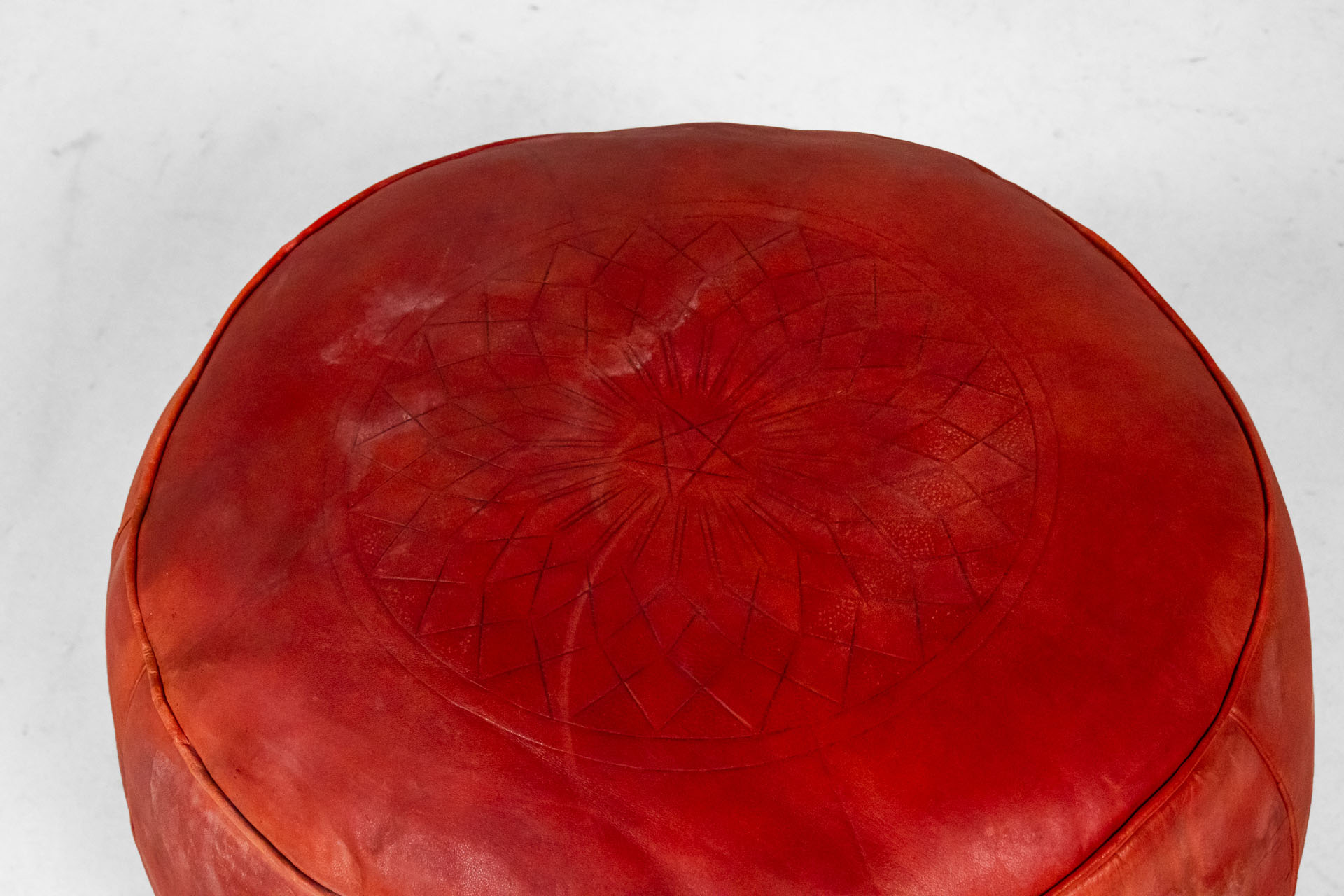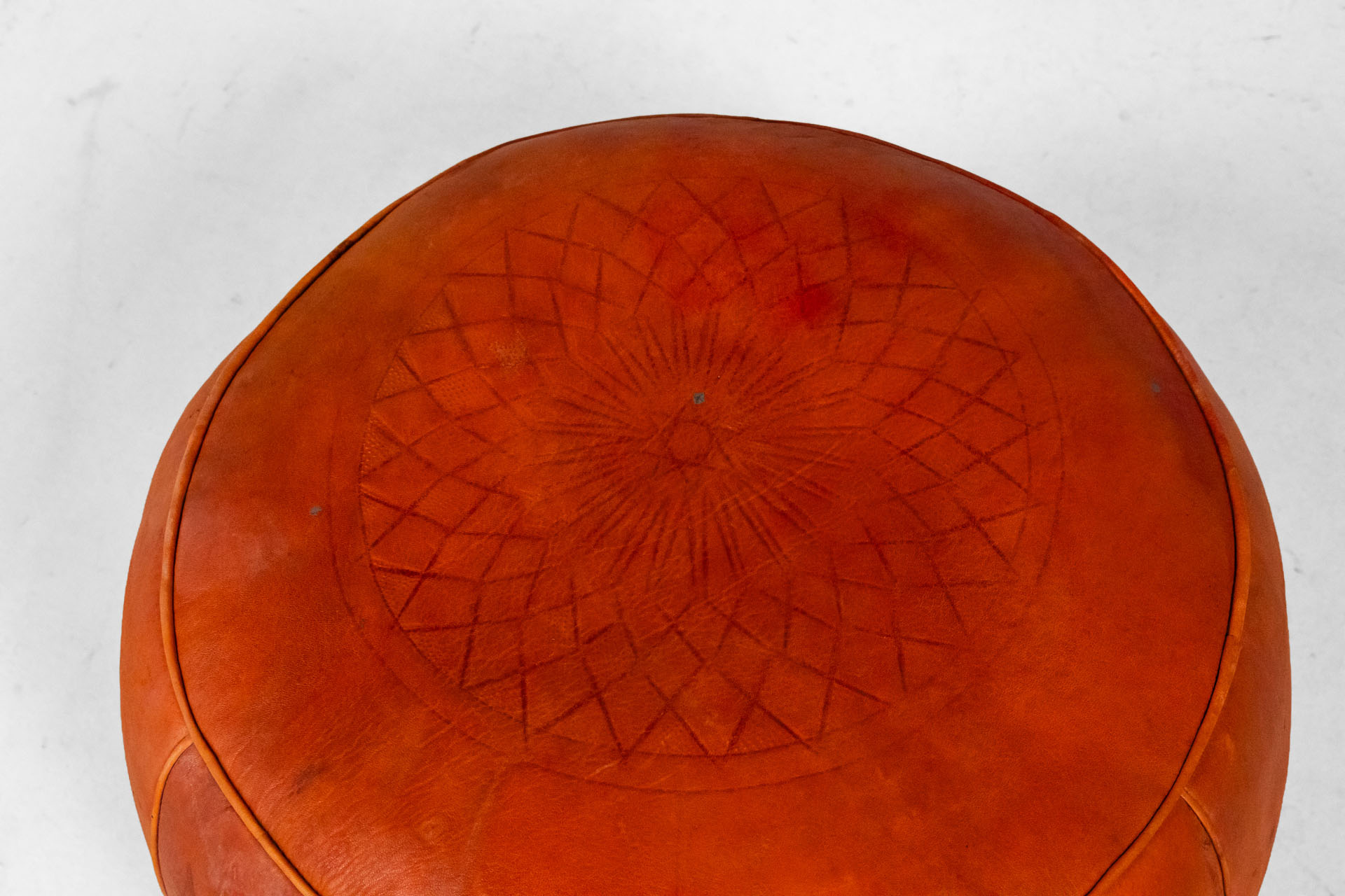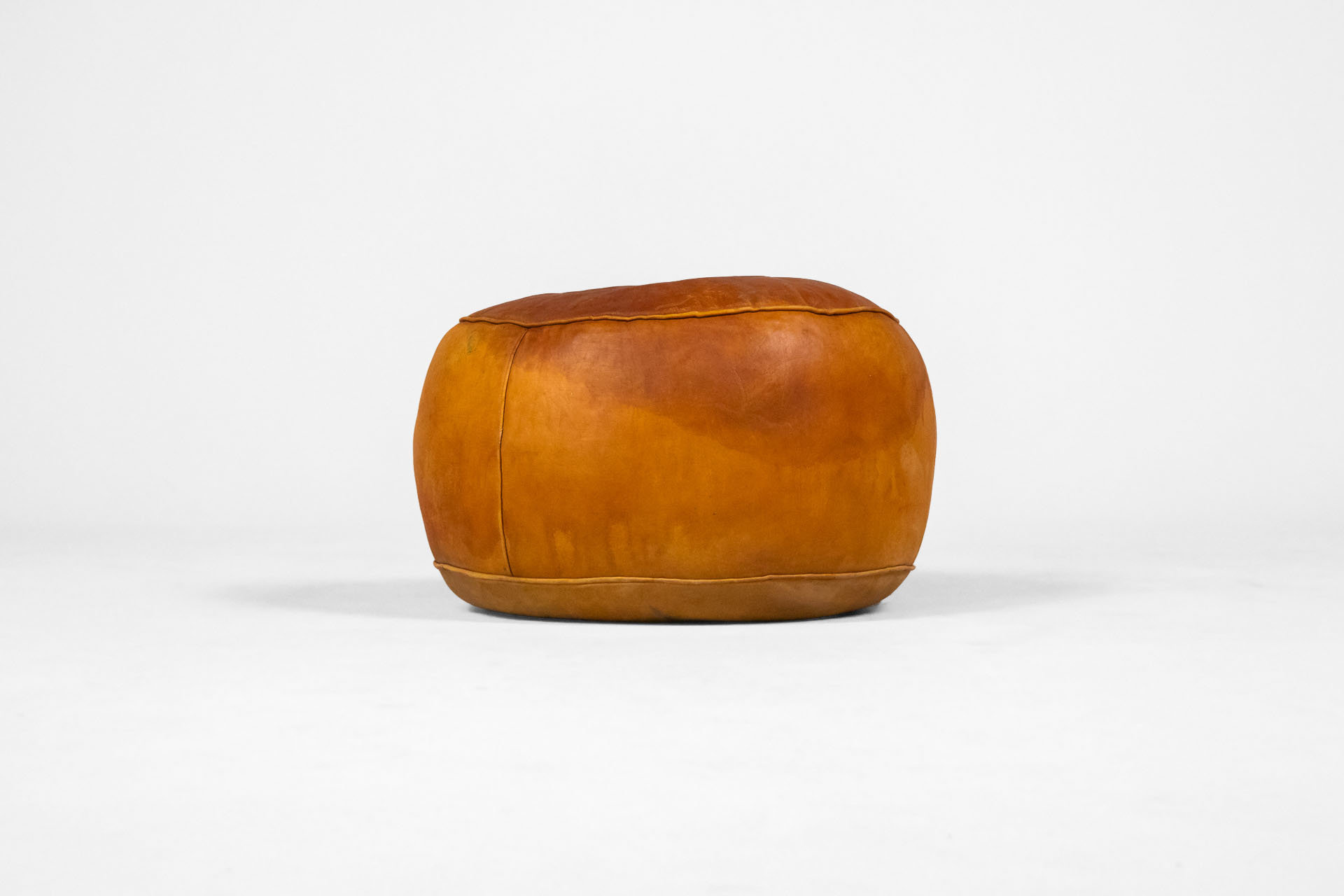 Kényelmes, kerek formájú puff, amely gazdag vöröses-barna bőr borítással rendelkezik. Az egyszerű, de elegáns kialakítás lehetővé teszi, hogy bármilyen belső térbe könnyedén illeszkedjen