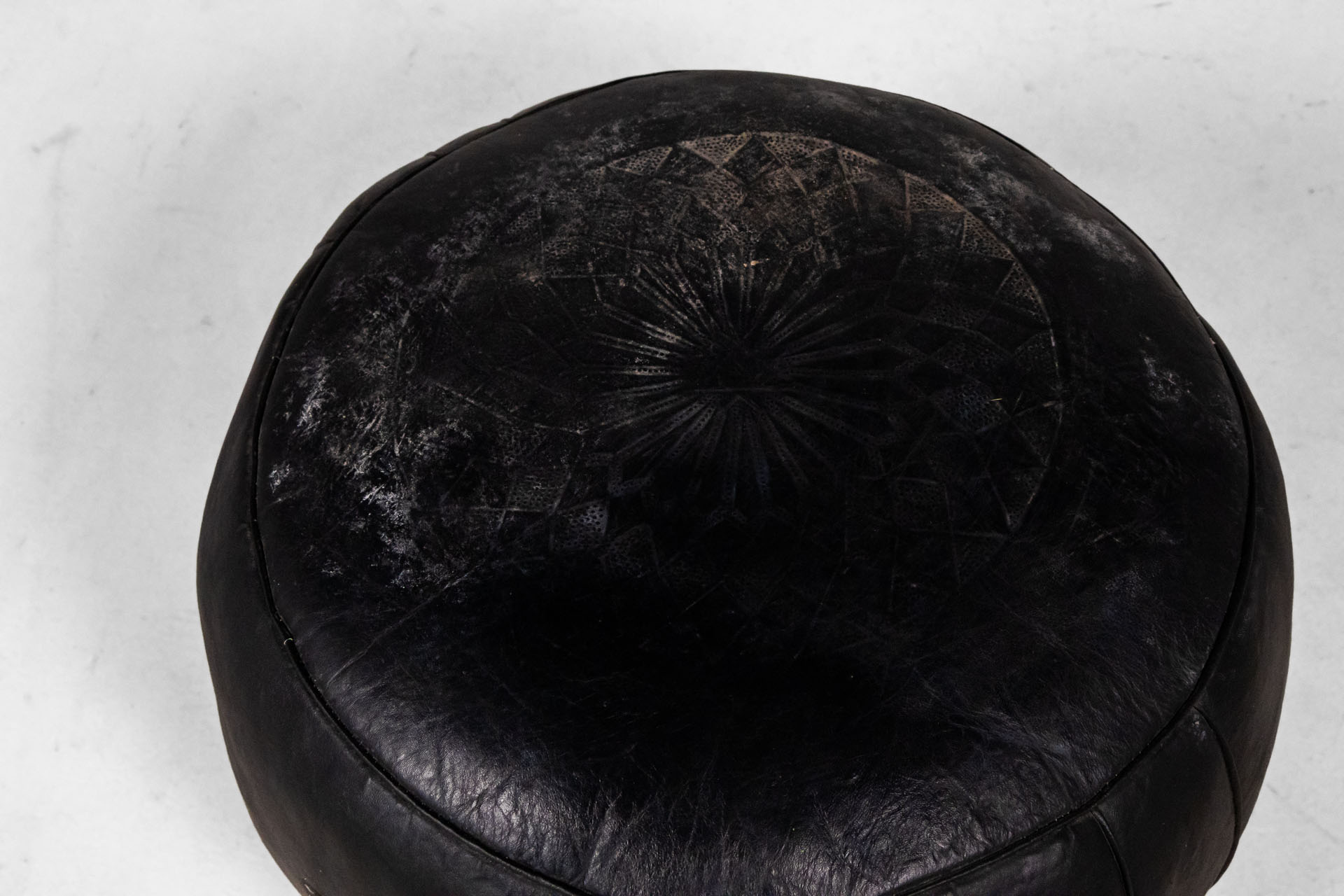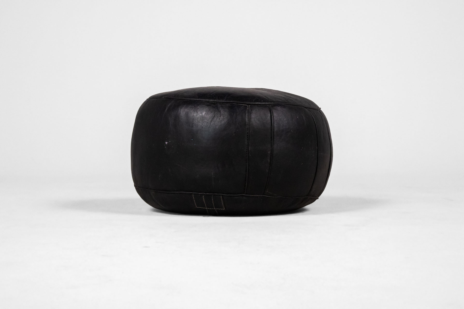 Stílusos, kerek bőr puff, amely kényelmes ülőfelületet biztosít. A párna sötét fekete színével és enyhén kopott felületével vintage megjelenést kölcsönöz, ideális kiegészítője lehet bármely modern vagy klasszikus enteriőrnek