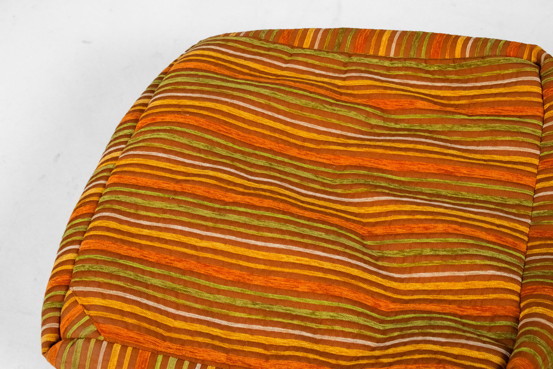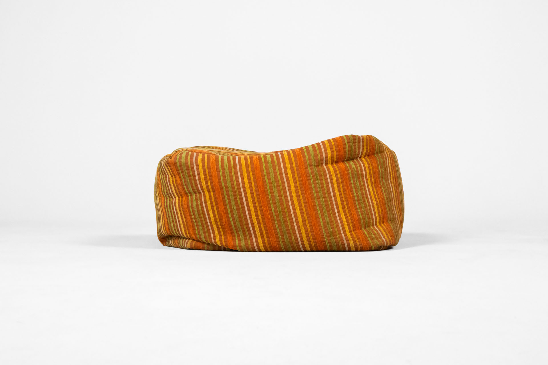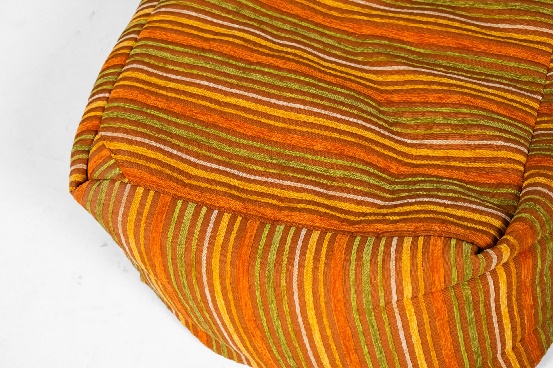 Kényelmes, színes csíkos puff, amely puha tömésével ideális ülőalkalmatosság. Az élénk narancs, zöld és sárga csíkok vidám hangulatot kölcsönöznek a térnek