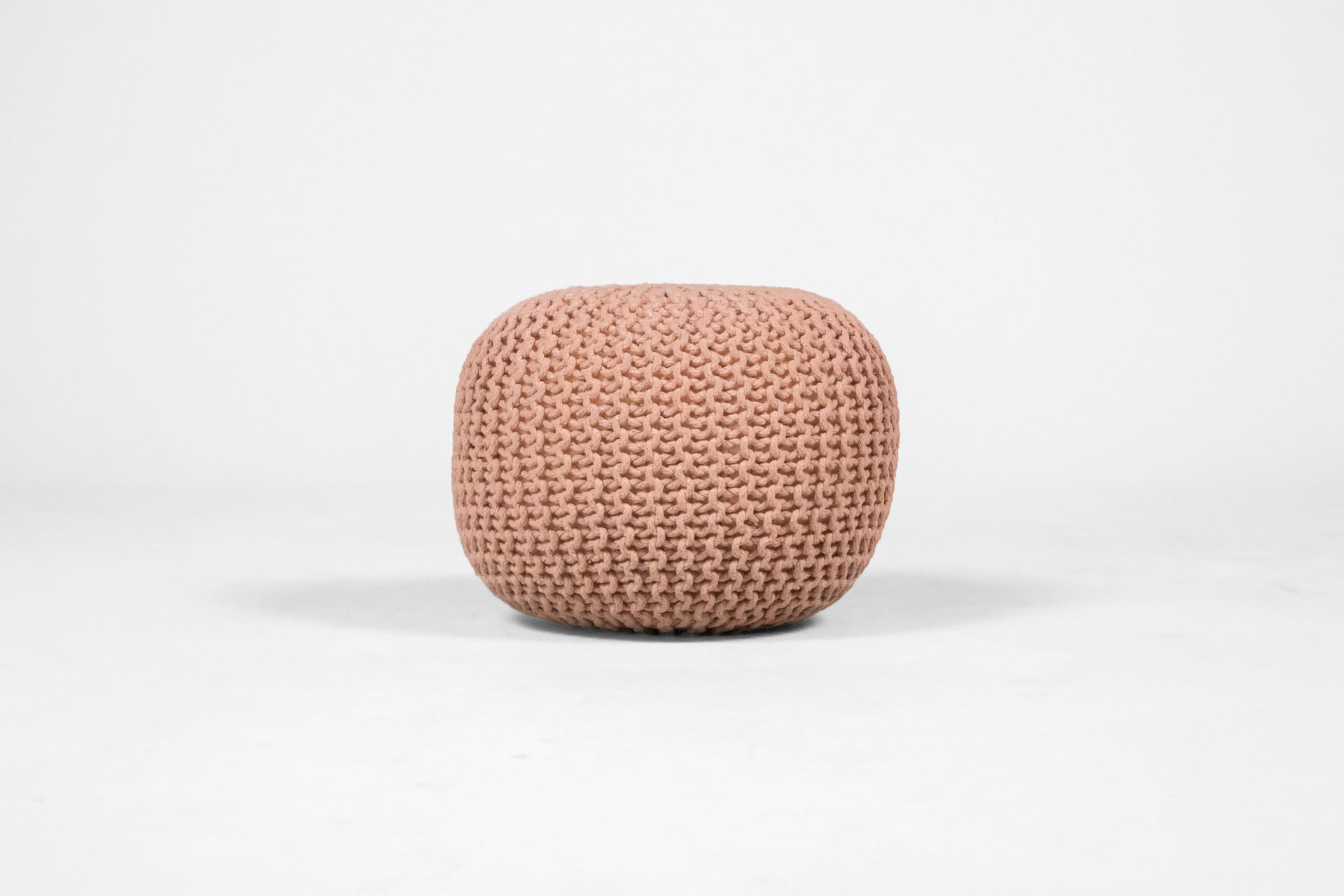Stílusos, kerek formájú puff, puha, kötött anyagból készült, amely kényelmes ülőfelületet biztosít. A világos rózsaszín árnyalat modern és barátságos megjelenést kölcsönöz