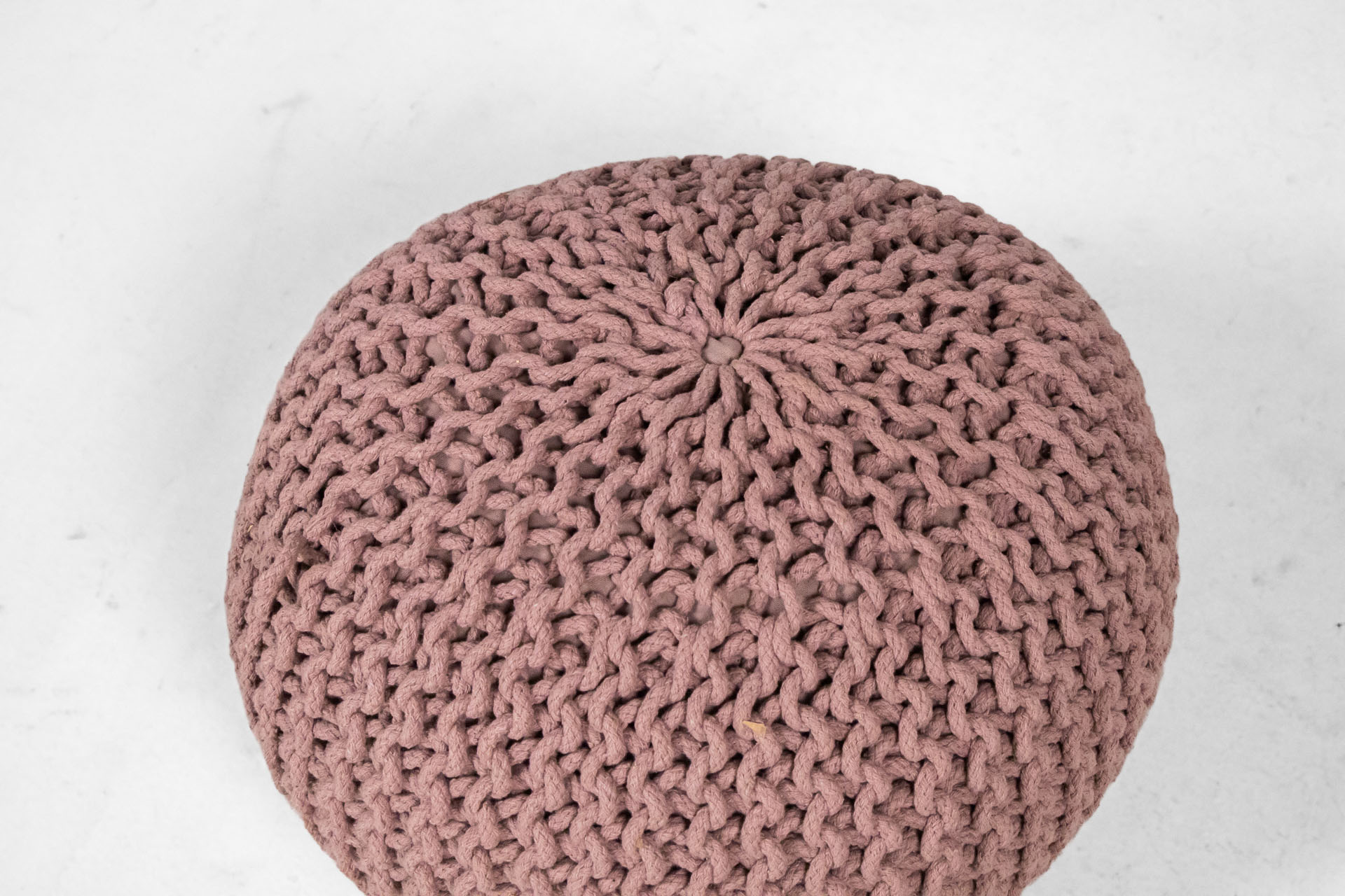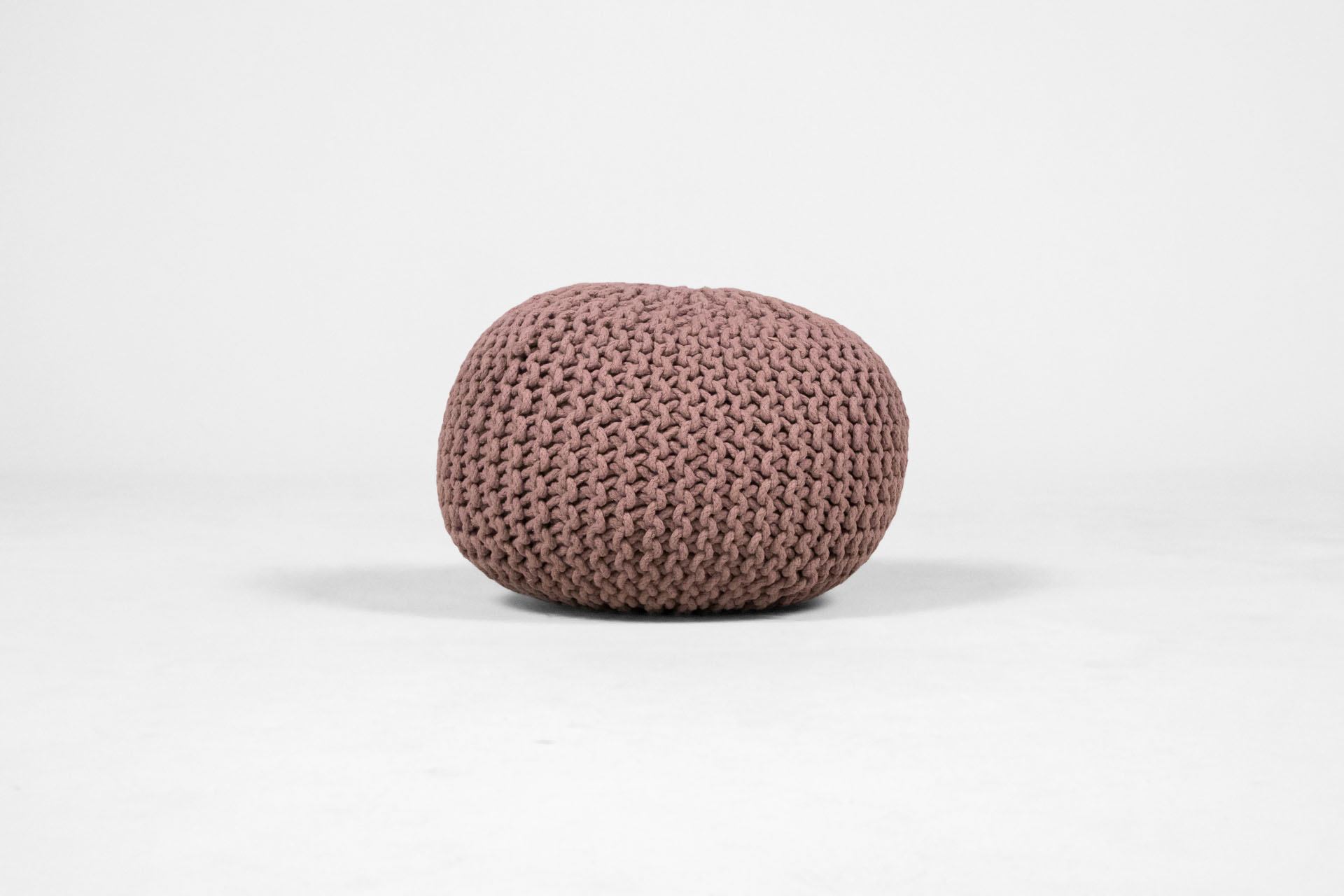 Stílusos, kerek formájú puff, puha, kötött anyagból készült, amely kényelmes ülőfelületet biztosít. A sötét rózsaszín árnyalat modern megjelenést kölcsönöz, ideális kiegészítője bármely enteriőrnek
