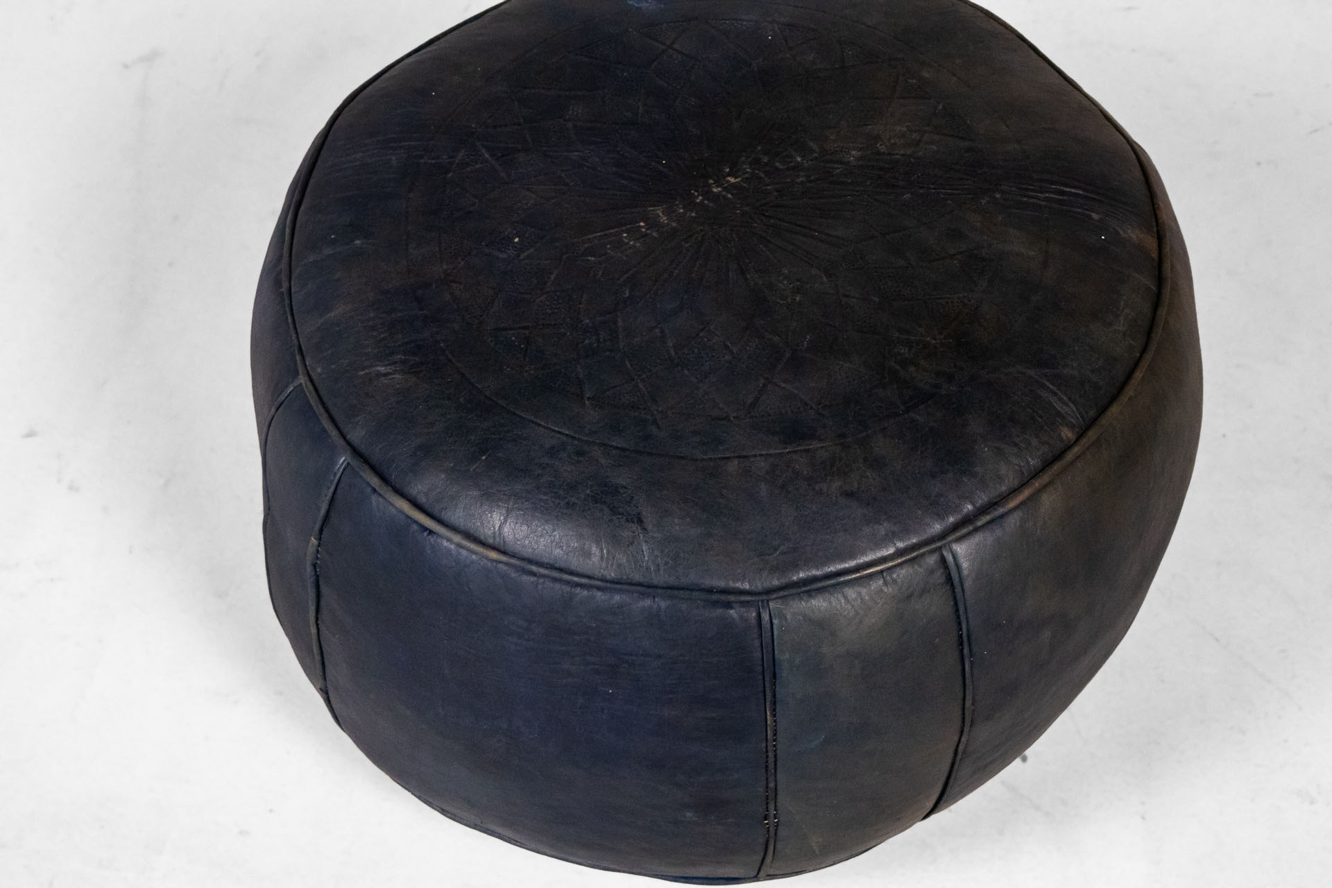 Stílusos, kerek puff, amely prémium minőségű, sötétkék bőrből készült. A puff lekerekített formája és puha felülete kényelmes ülőhelyet biztosít, míg a rusztikus megjelenés egyedi karaktert ad a térnek