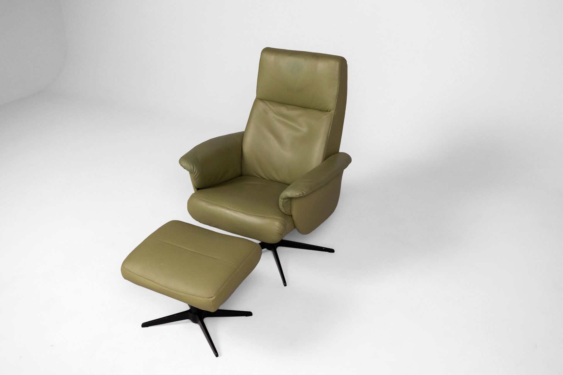 Zöld bőrfotel lábartóval