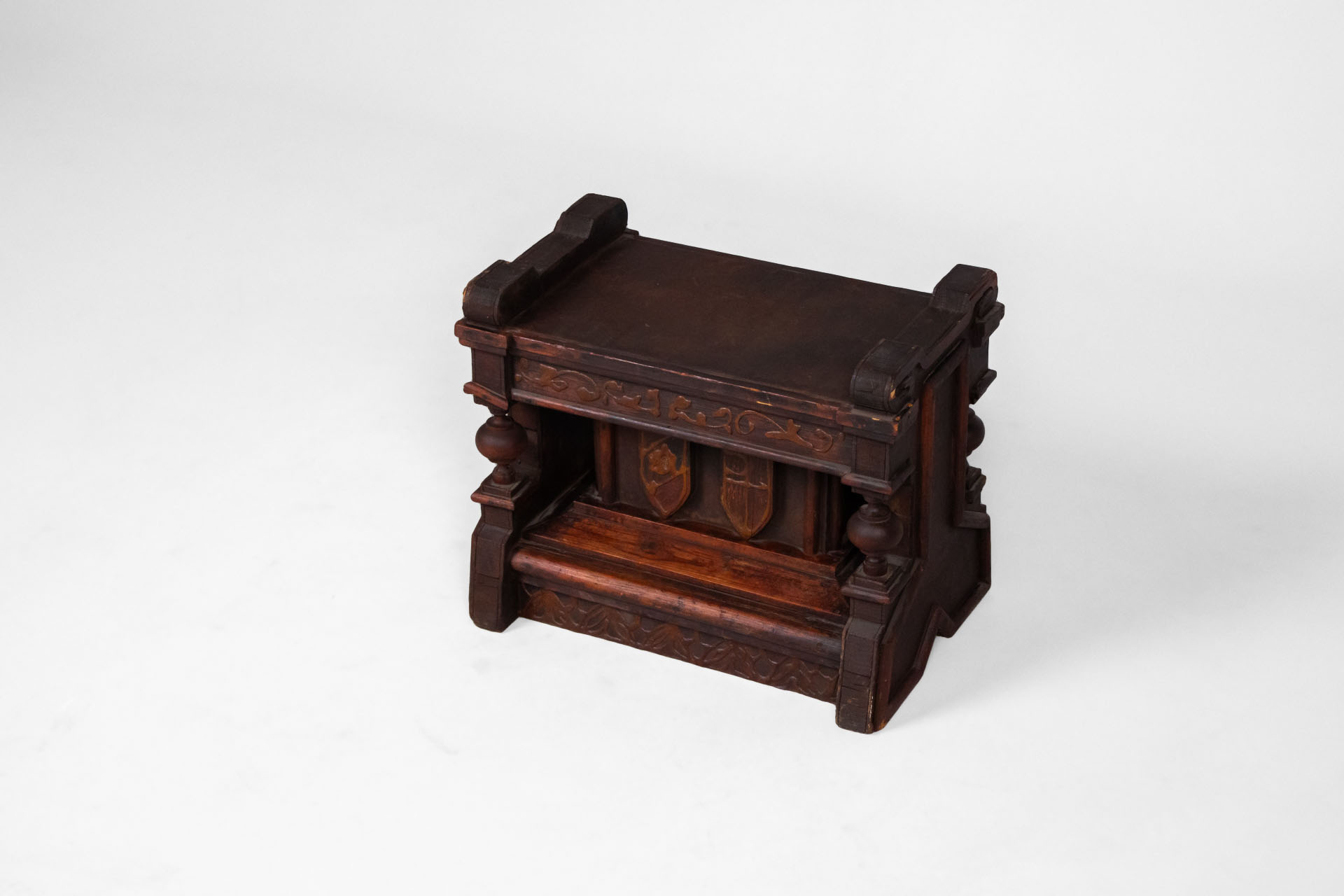 Faragott mahagóni fellépő