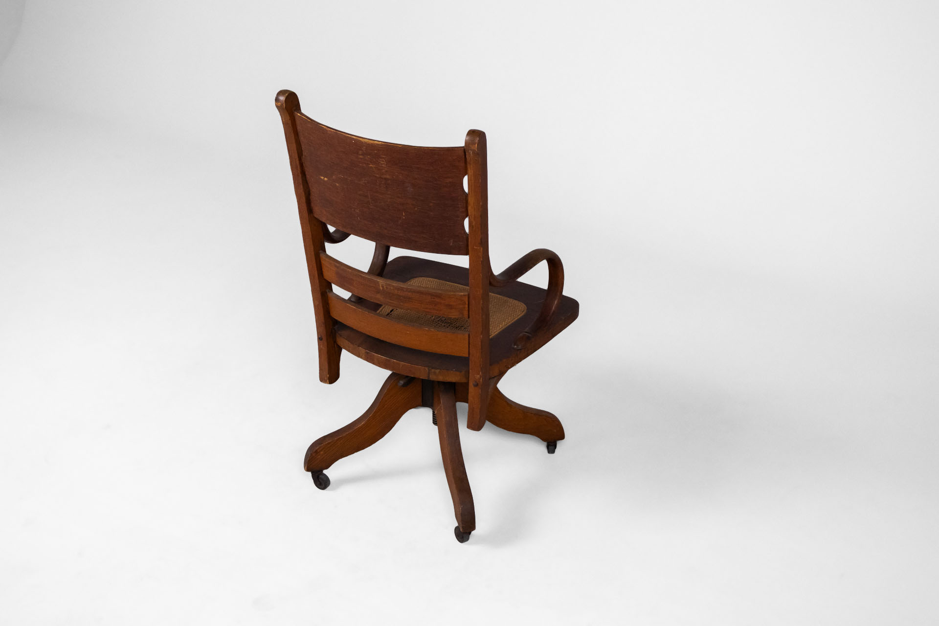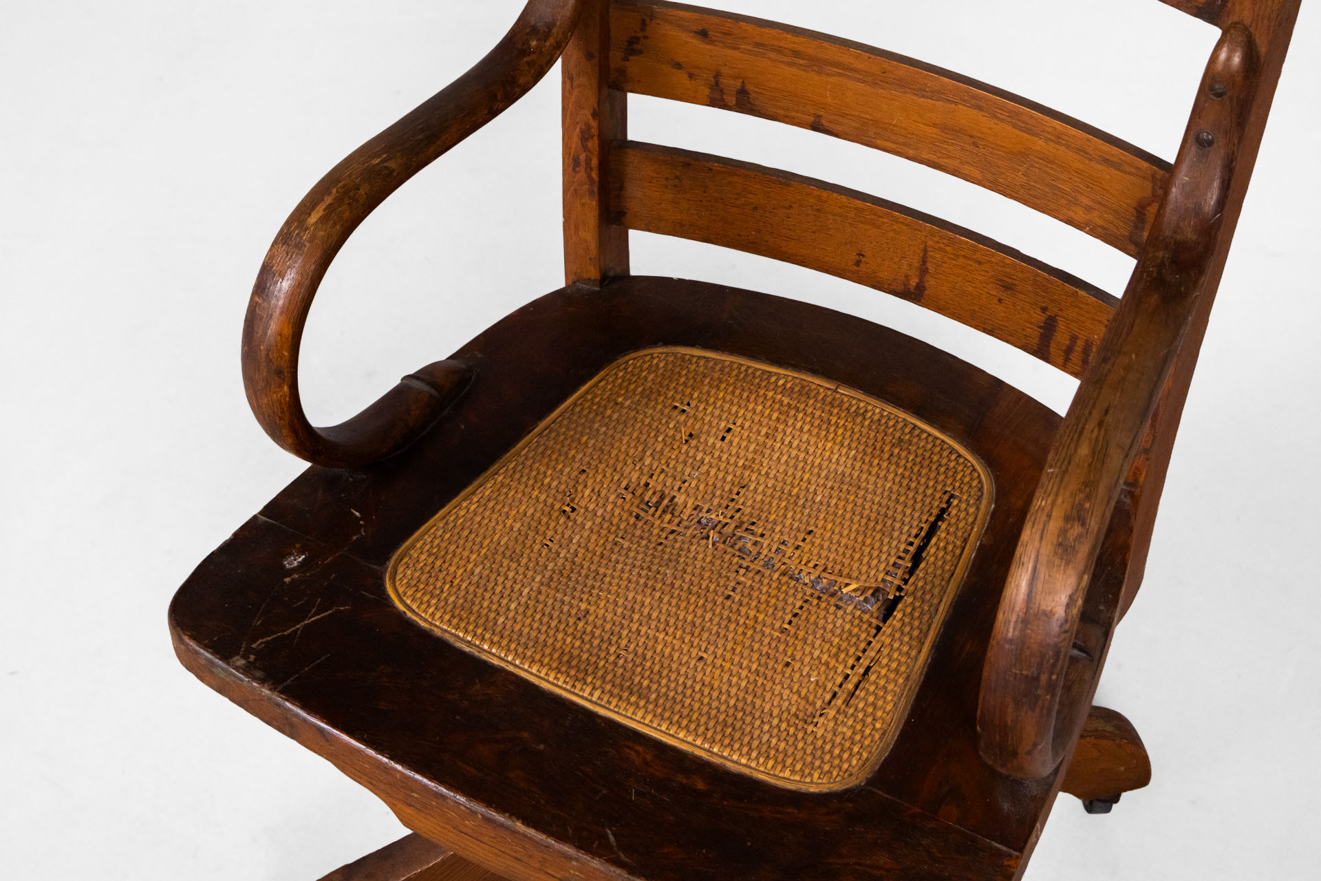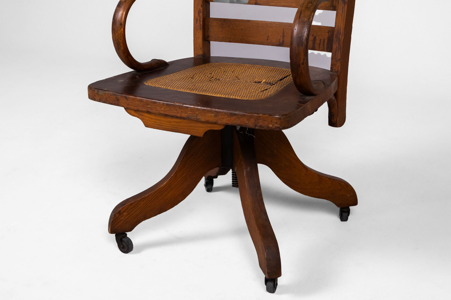 Klasszikus stílusú, antik forgószék, masszív fa szerkezettel és kényelmes, szőtt ülőfelülettel. A széles karfák és az ívelt háttámla biztosítja a maximális kényelmet, míg a görgők lehetővé teszik a könnyű mozgást. Az...