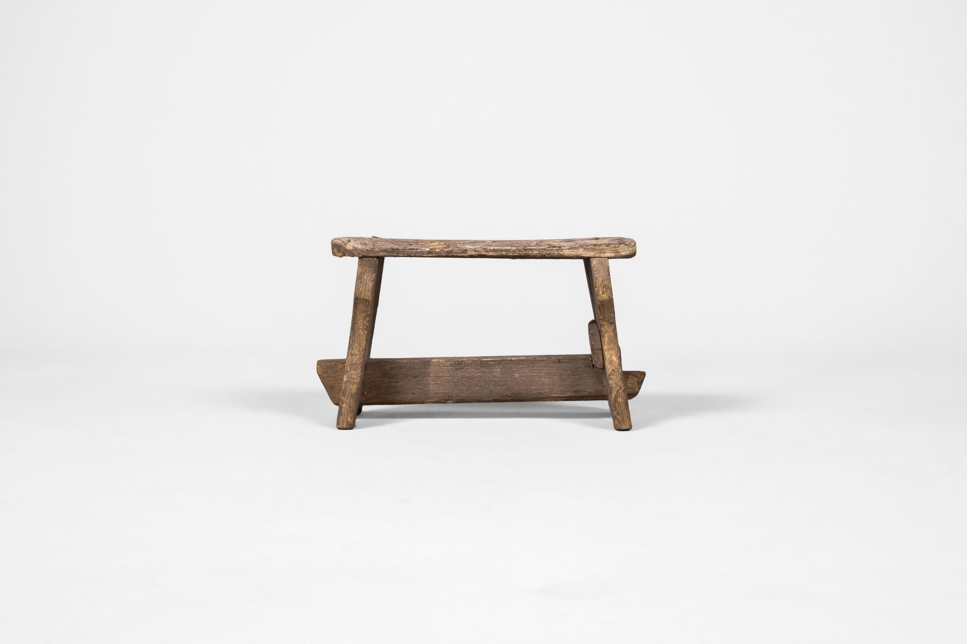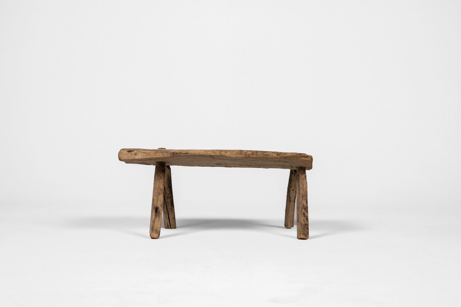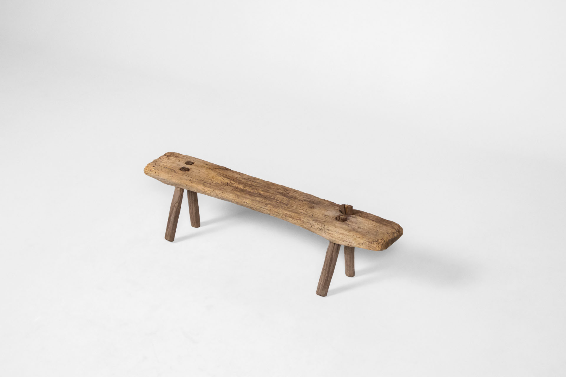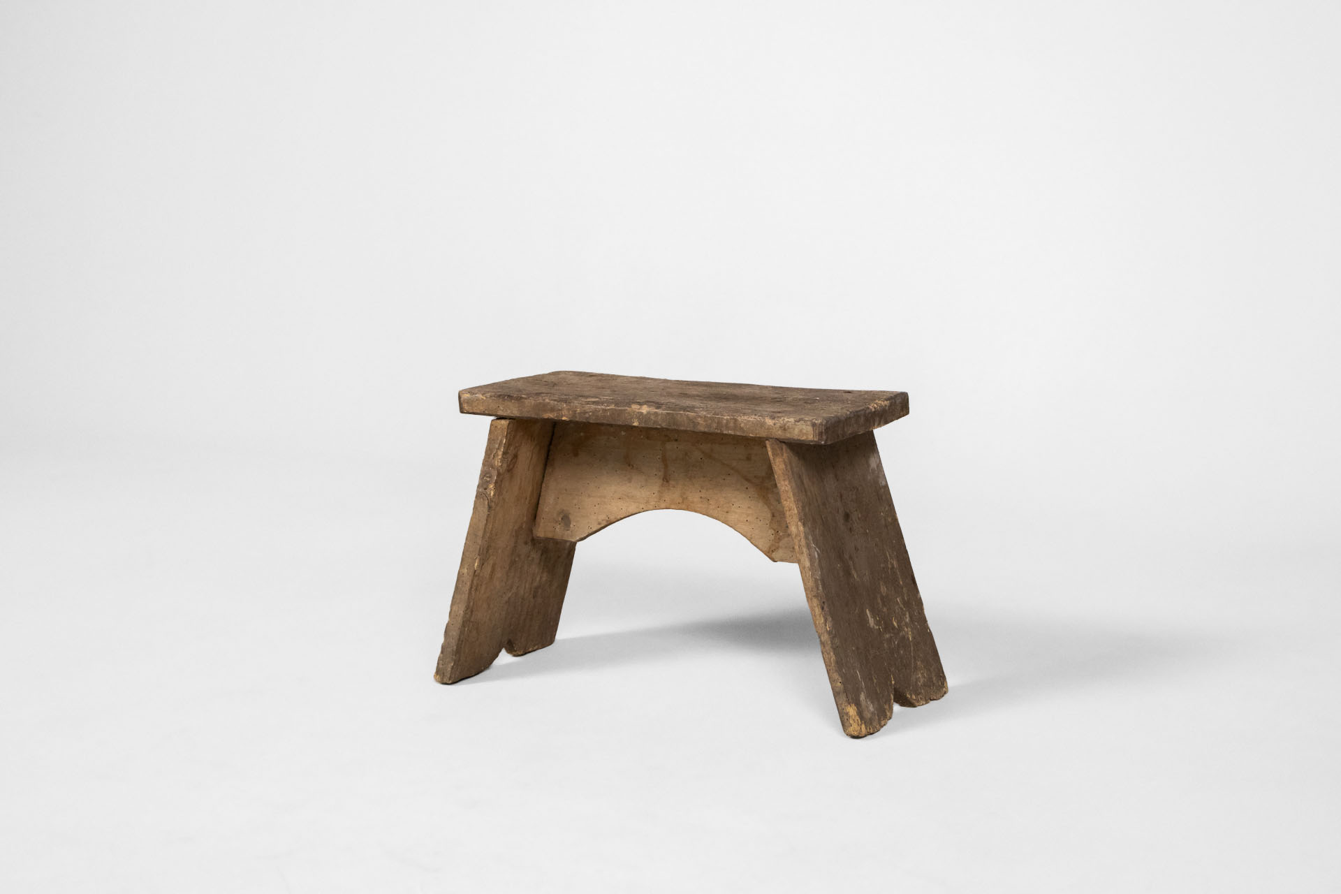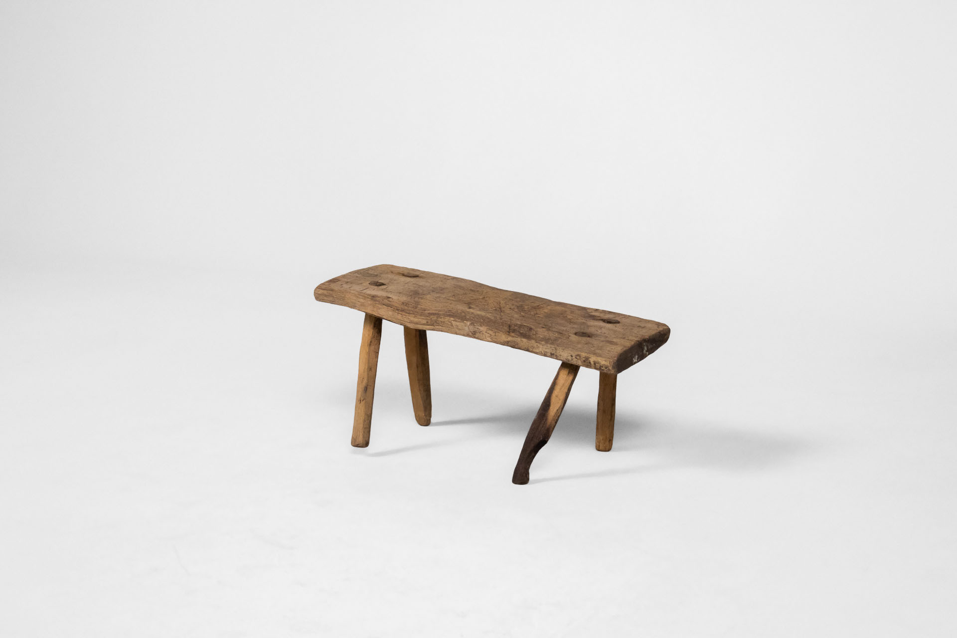Egyszerű, rusztikus stílusú fa ülőke, amely masszív szerkezettel és természetes, megkopott felülettel rendelkezik. Az ívelt lábak stabilitást biztosítanak, míg a széles, lapos teteje praktikus használatot tesz...
