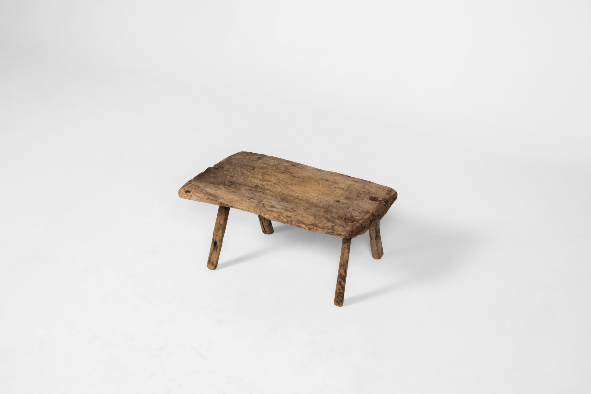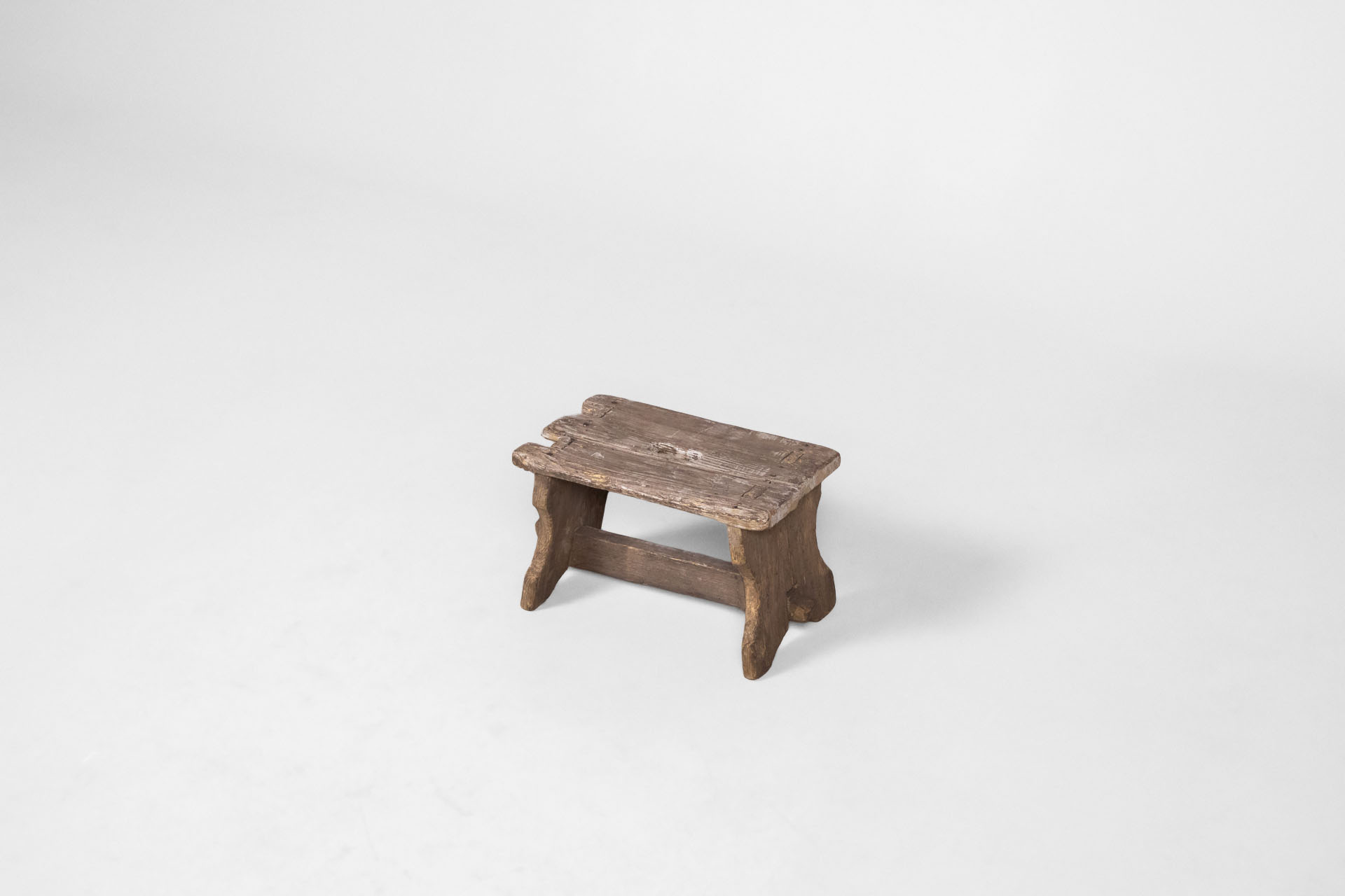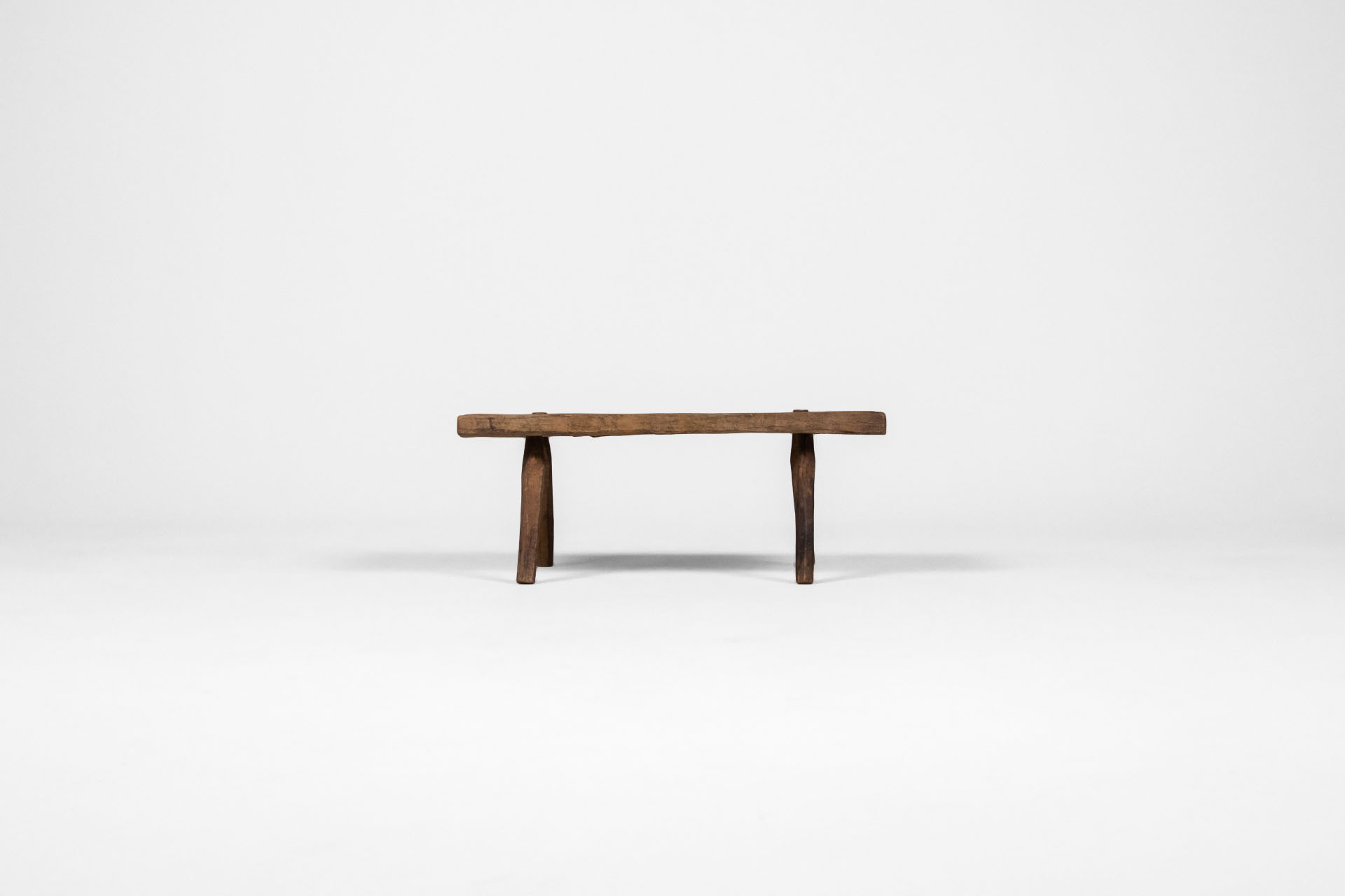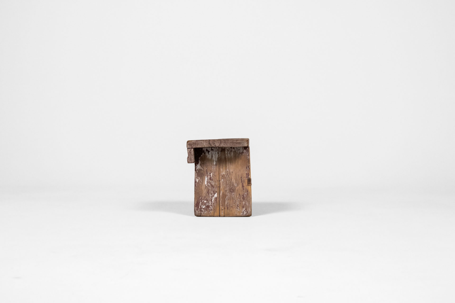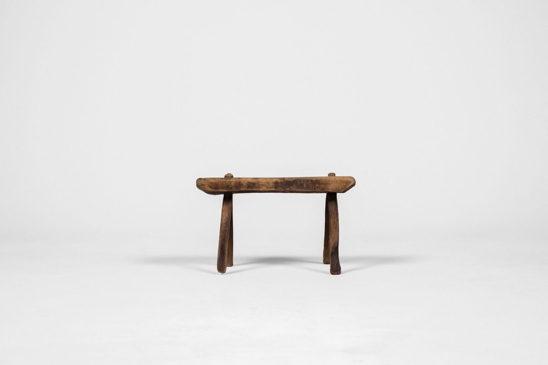 Egyszerű, rusztikus stílusú fa ülőke, amely masszív szerkezettel és természetes, megkopott felülettel rendelkezik. Az ívelt lábak stabilitást biztosítanak, míg a széles, lapos teteje praktikus használatot tesz...