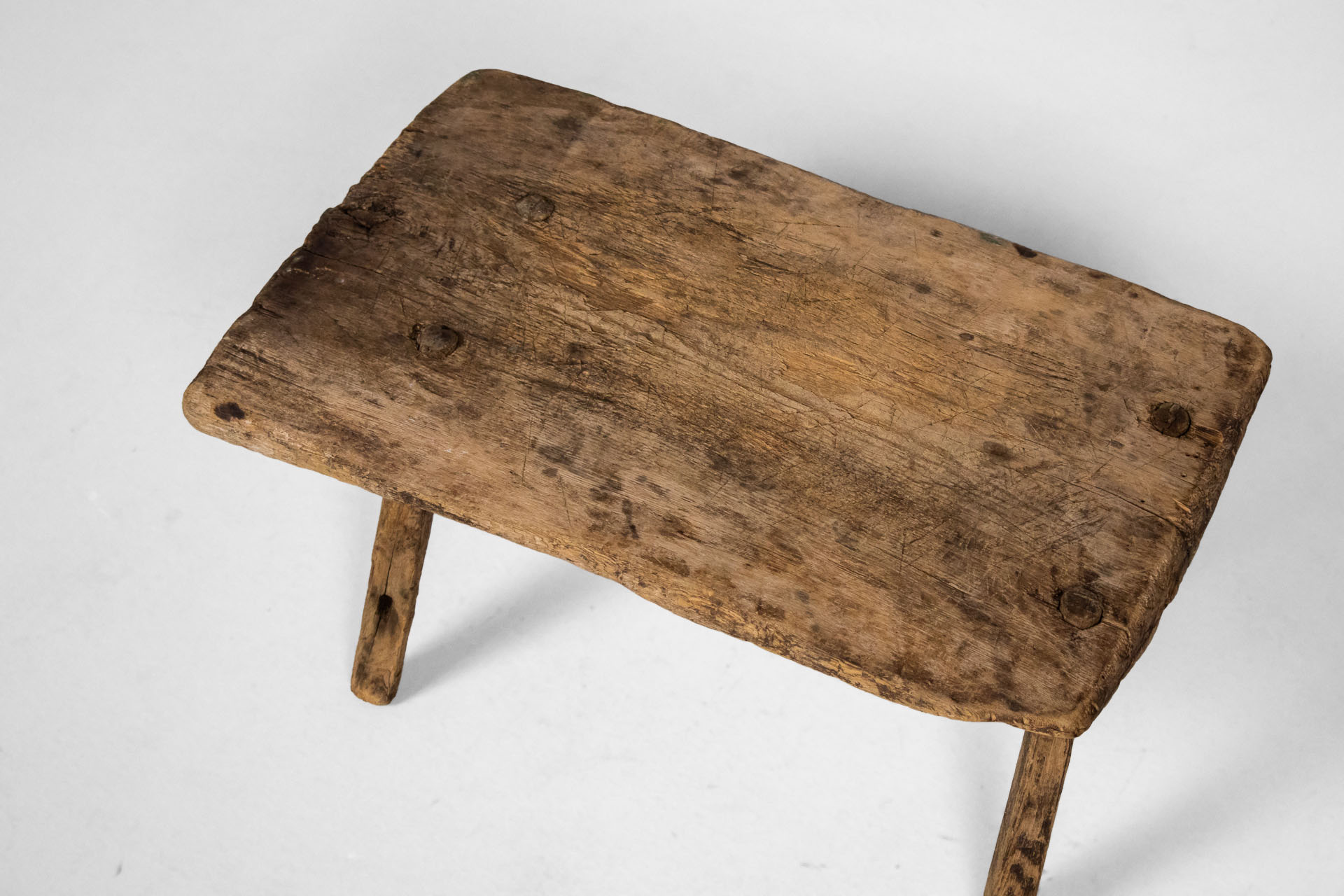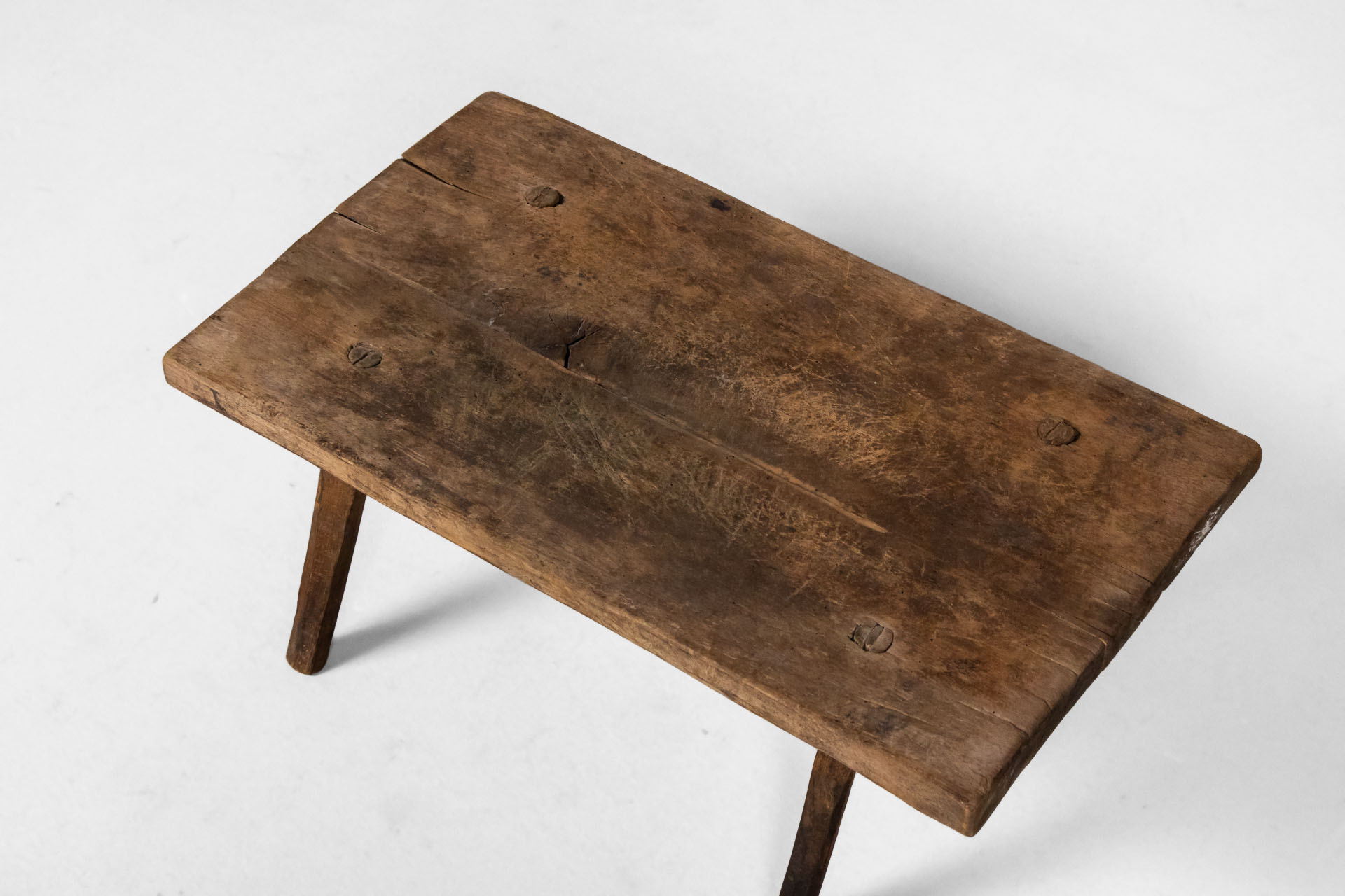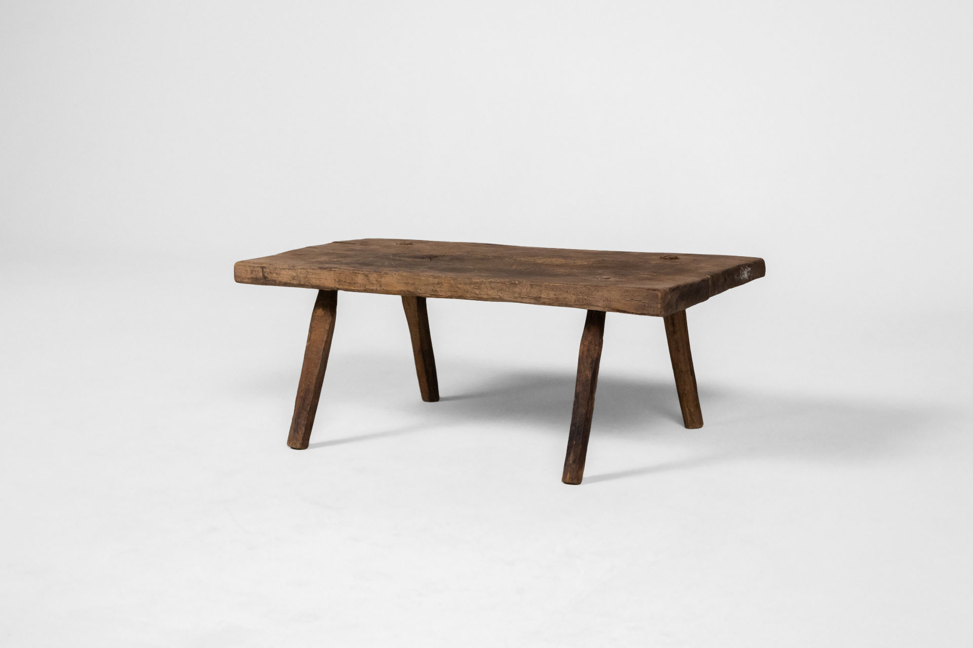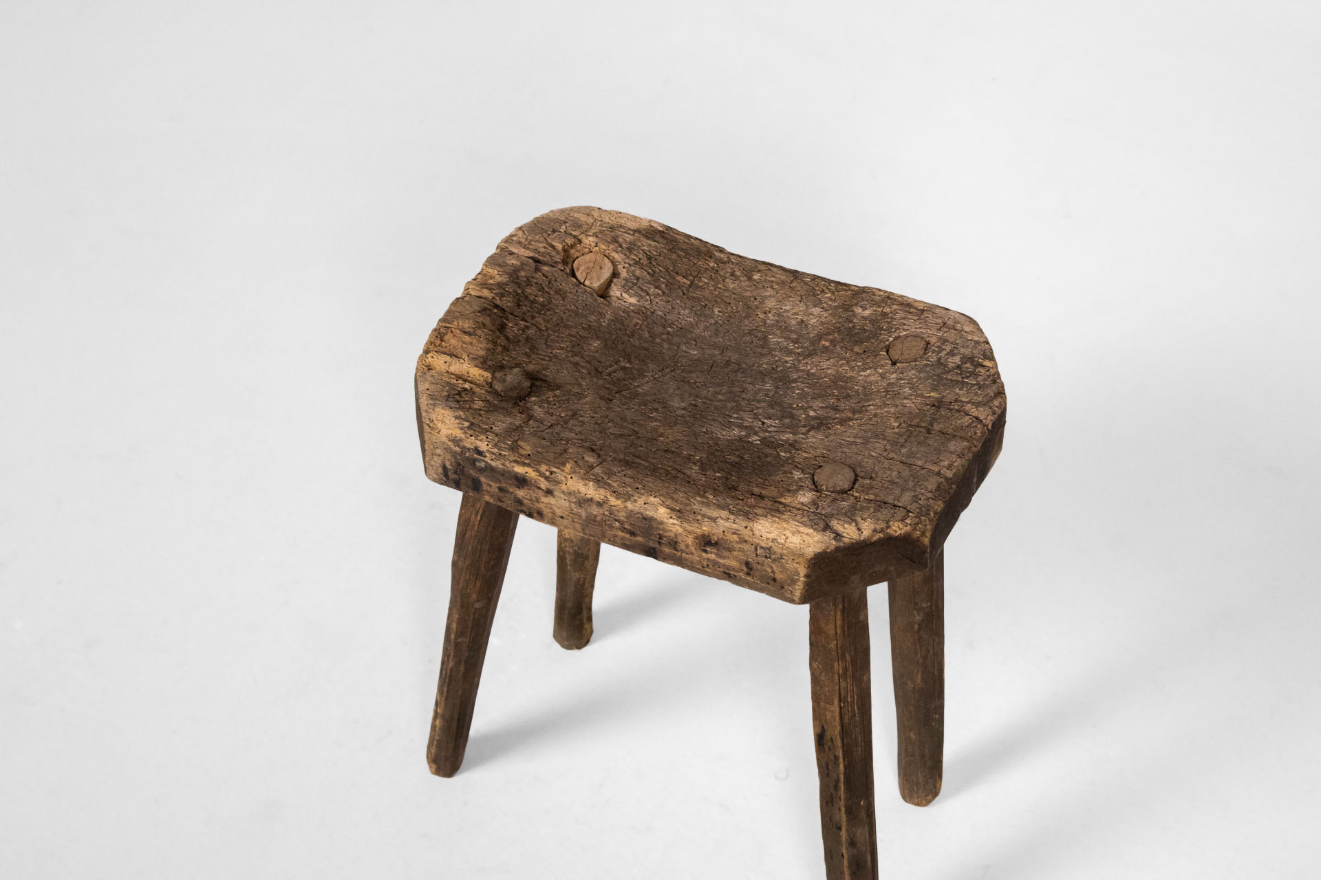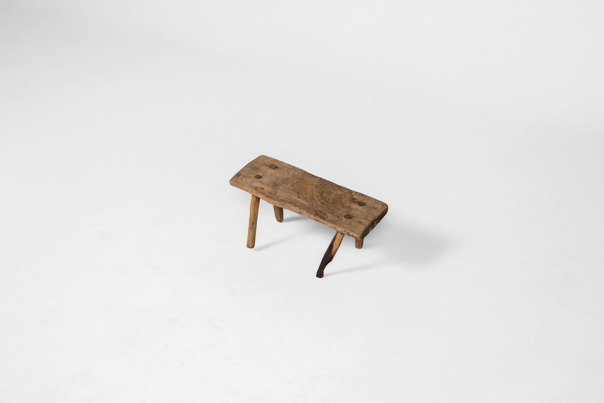 Egyszerű, rusztikus stílusú fa ülőke, amely masszív szerkezettel és természetes, megkopott felülettel rendelkezik. Az ívelt lábak stabilitást biztosítanak, míg a széles, lapos teteje praktikus használatot tesz...