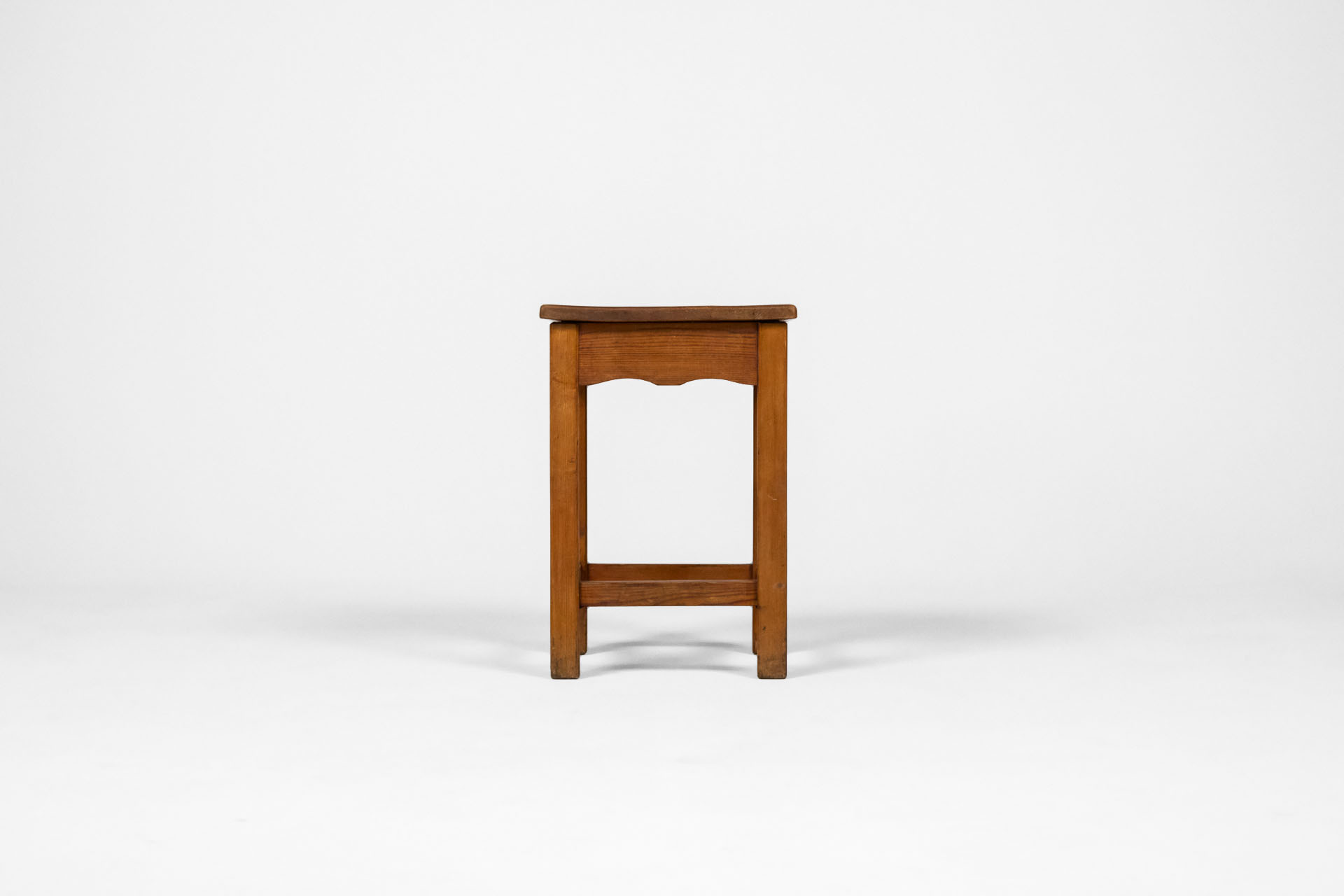 Egyszerű, rusztikus stílusú, négyzet alakú fa szék, masszív, stabil szerkezettel és letisztult vonalakkal. A szék időtálló dizájnja és praktikus kialakítása ideálissá teszi mindennapi használatra