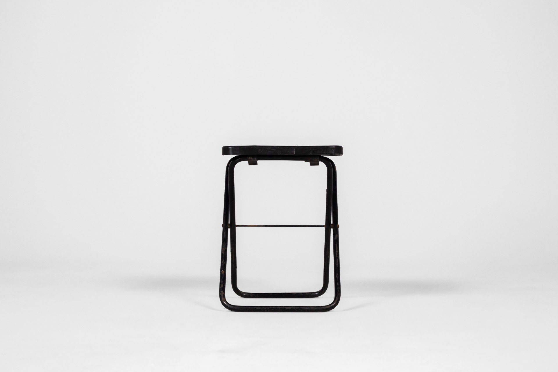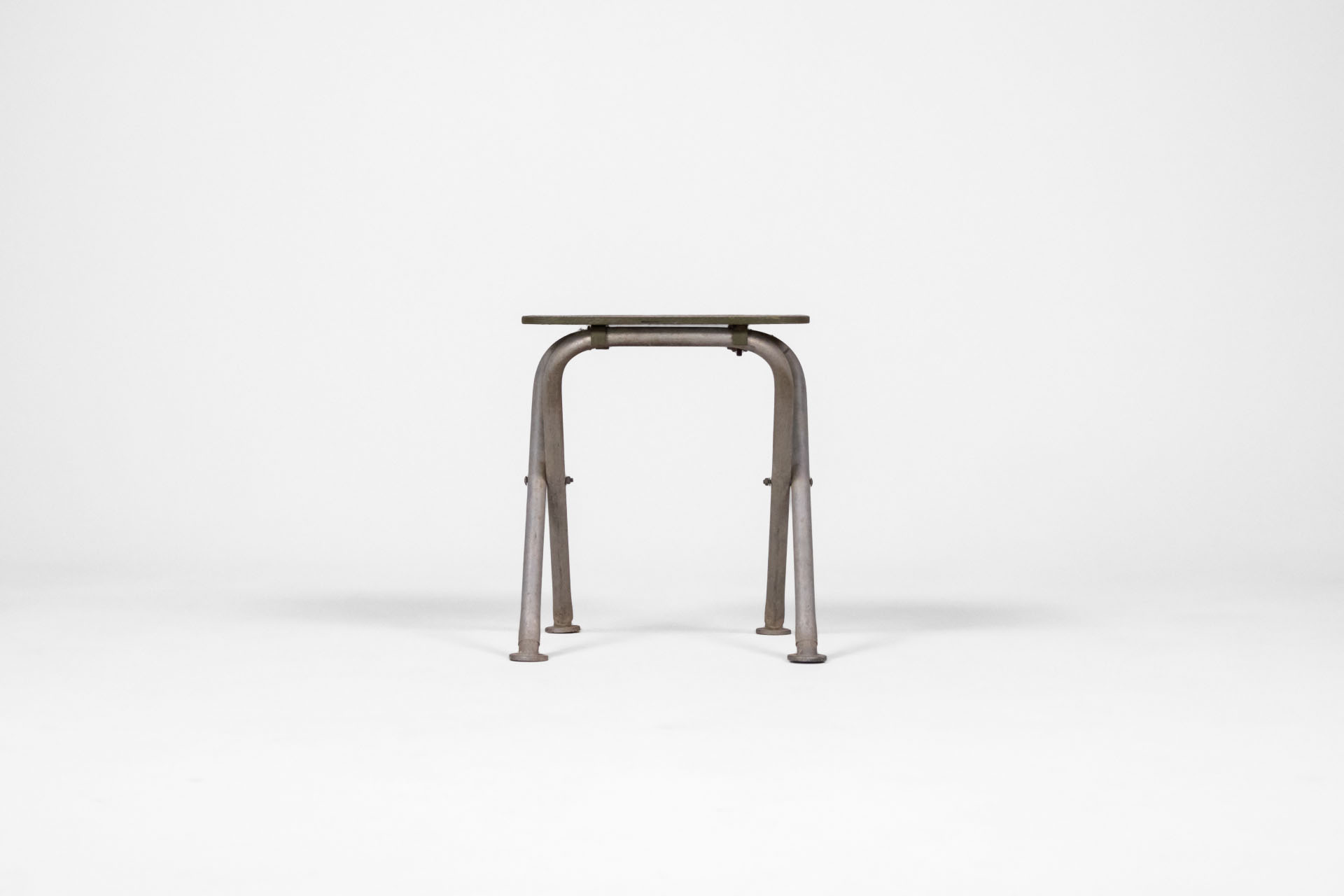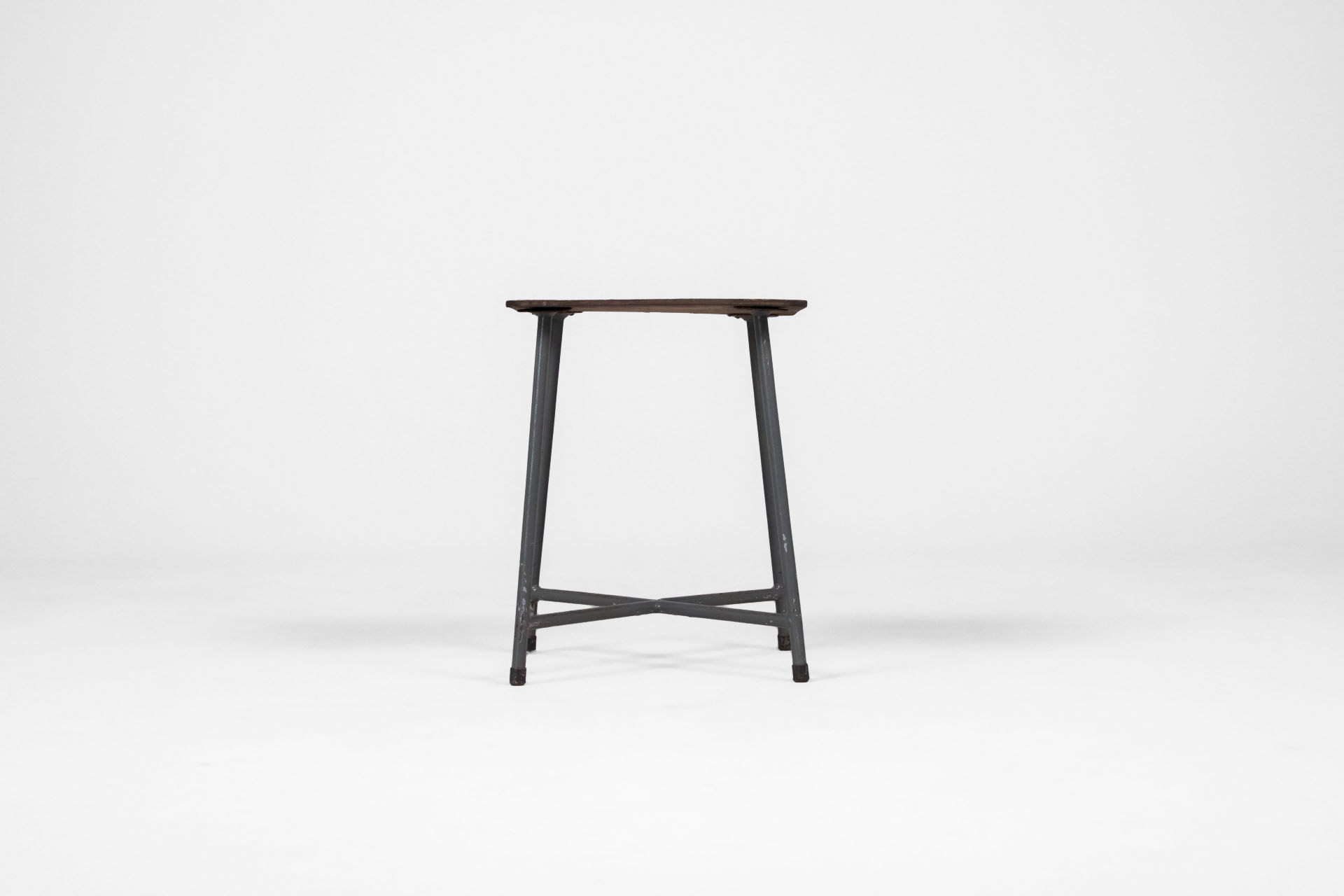 Modern, ipari stílusú fém forgószék, kör alakú ülőfelülettel és stabil, háromlábú szerkezettel. A szék egyszerű, de funkcionális kialakítása ideálissá teszi különböző környezetekben, legyen az egy műhely, egy bár...