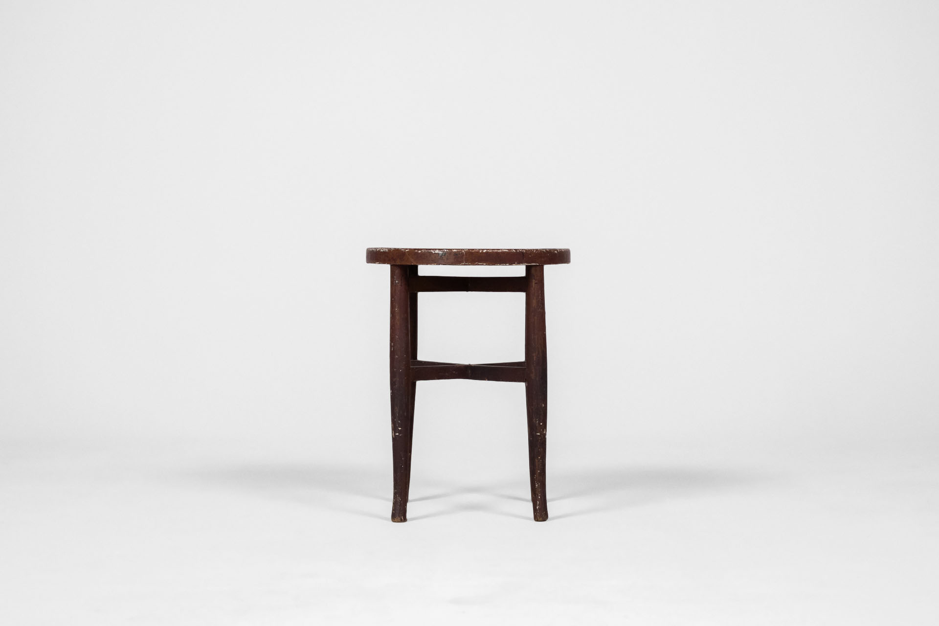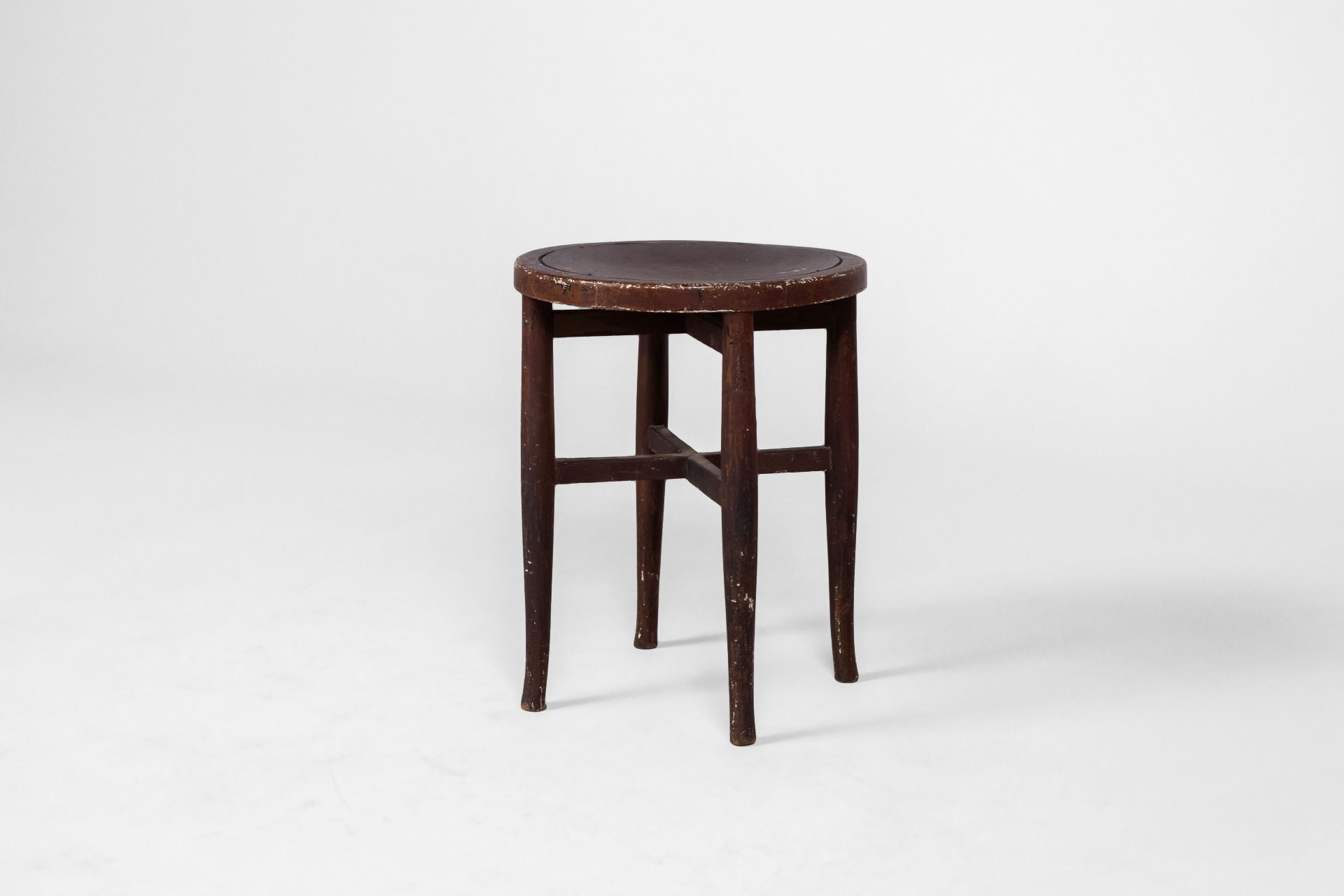 Egyszerű, rusztikus stílusú, kerek formájú ülőke. A sötétbarna festés és a kopott felület időtlen megjelenést kölcsönöz, ideális választás bármilyen vintage vagy vidéki enteriőrbe