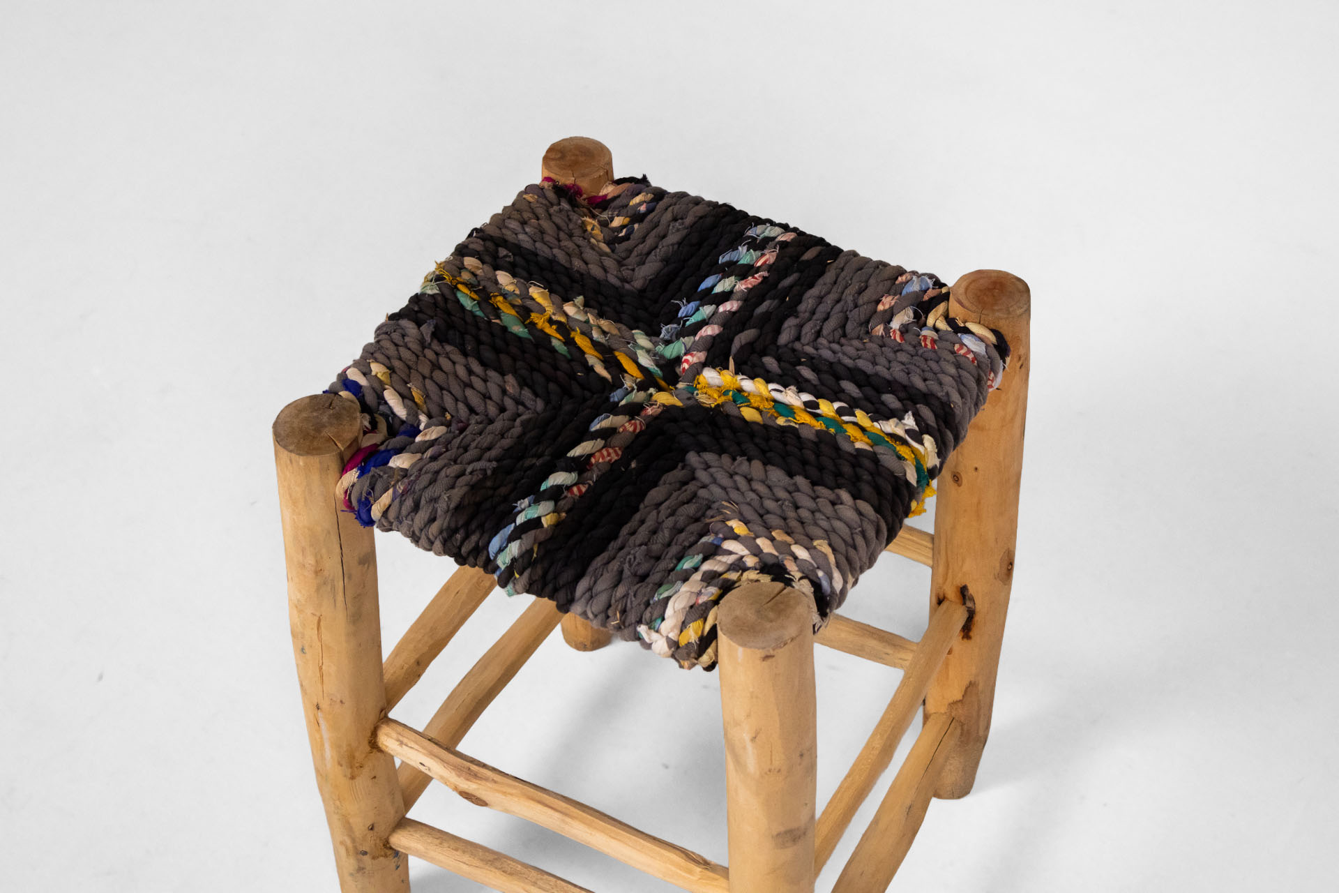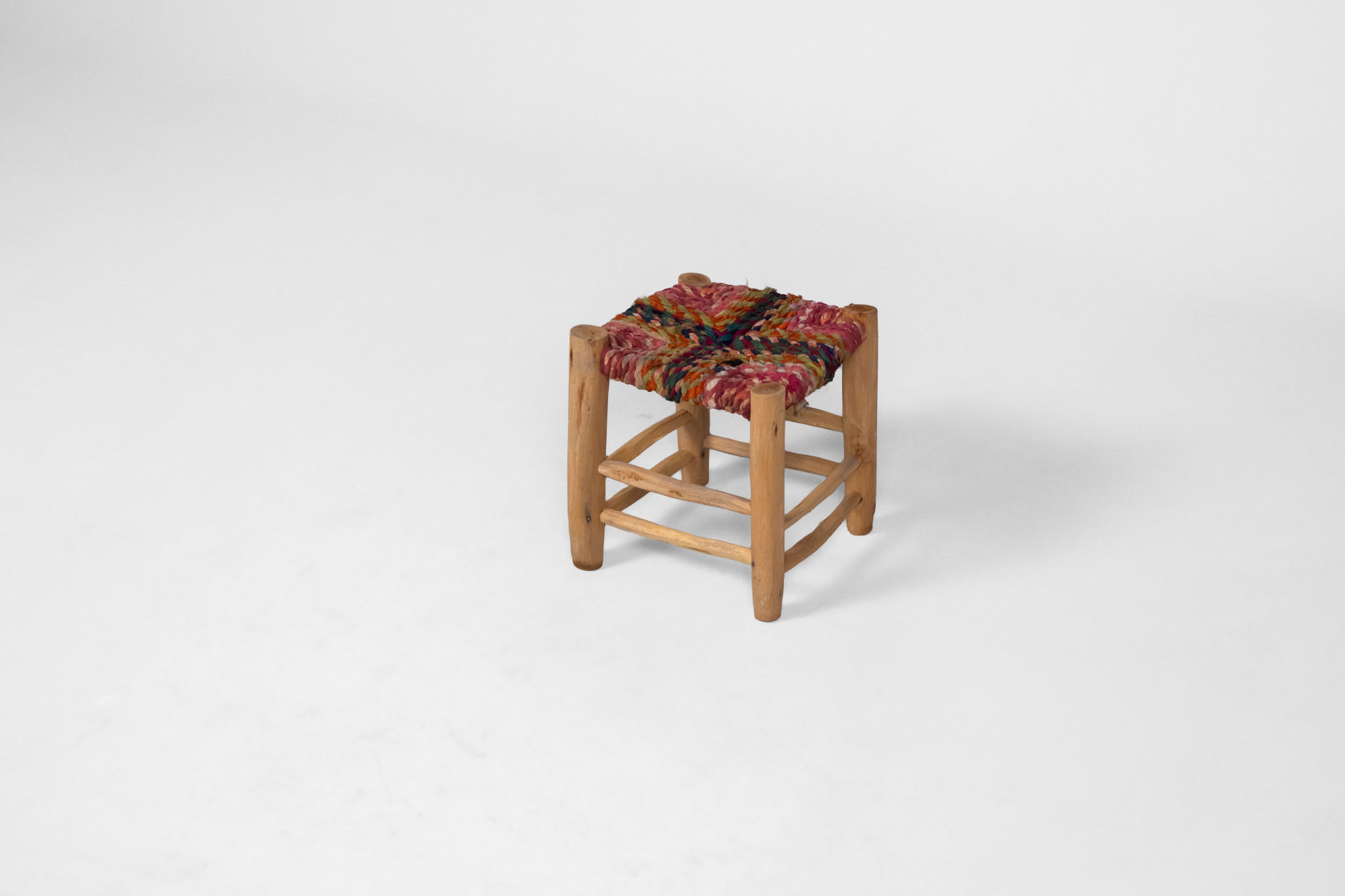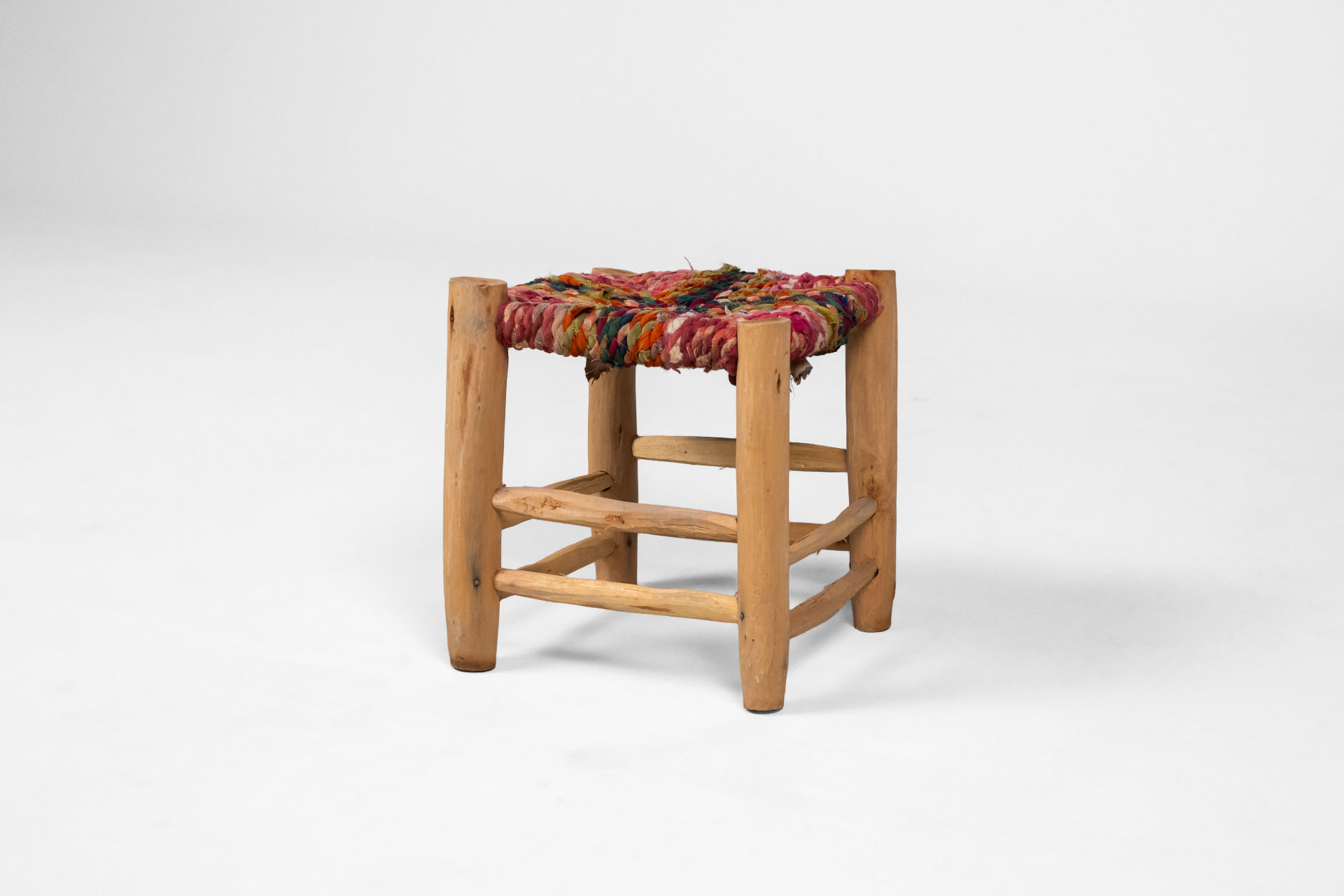 Kézműves, rusztikus stílusú kicsi sámli, amely természetes fa lábakkal és színes, szőtt ülőfelülettel rendelkezik. Időtlen megjelenése ideális választás bármely klasszikus otthoni díszletbe