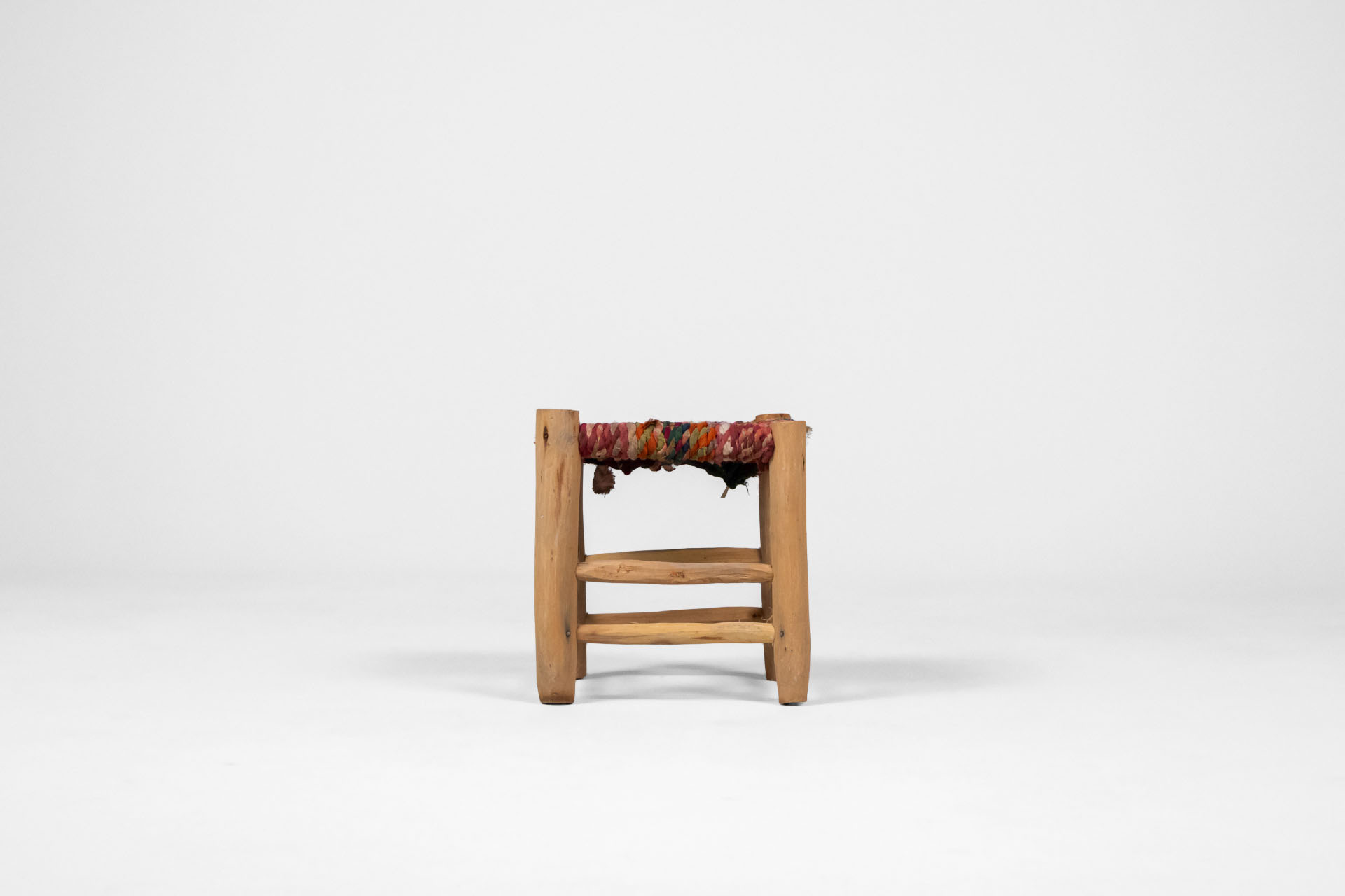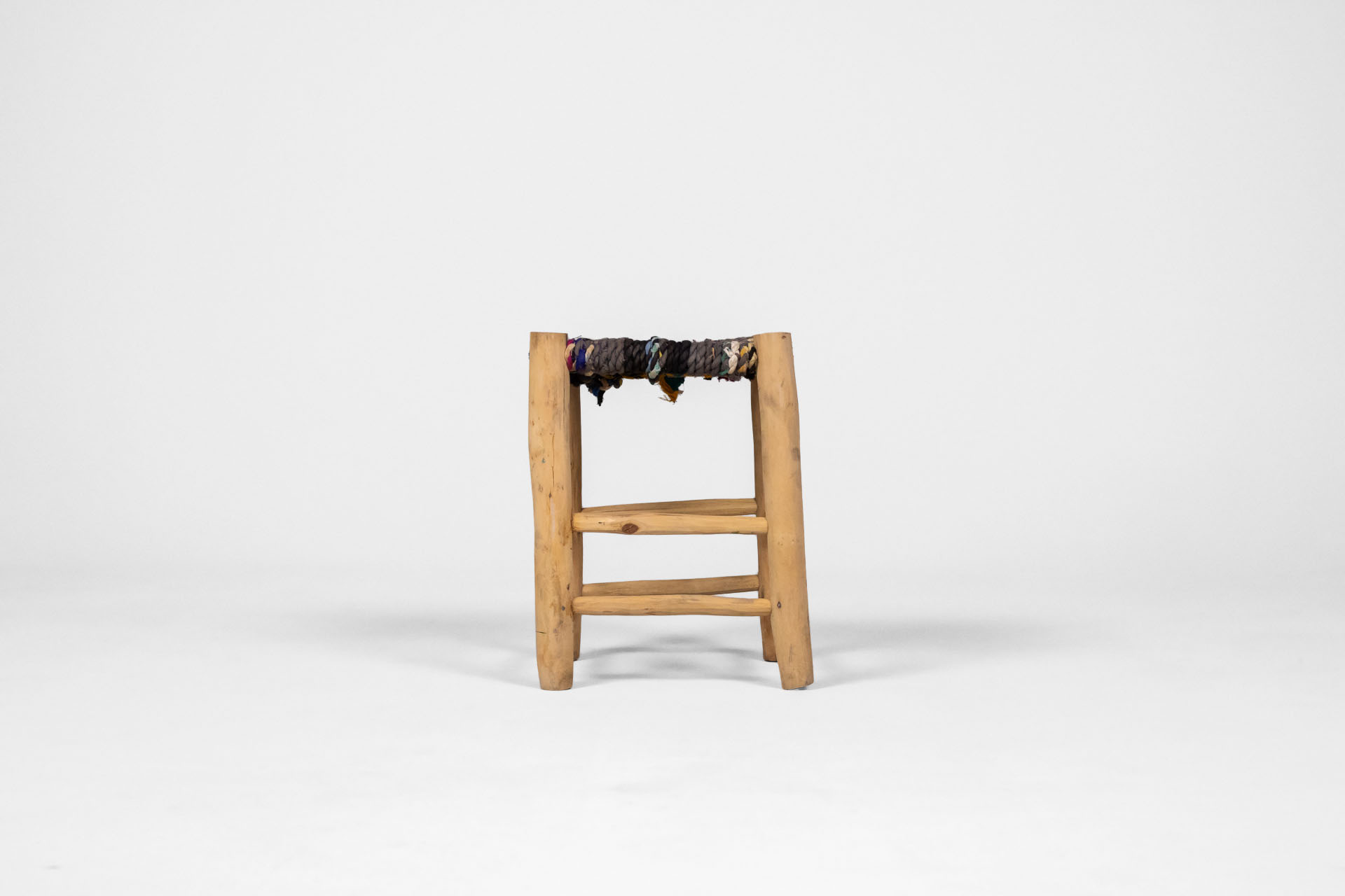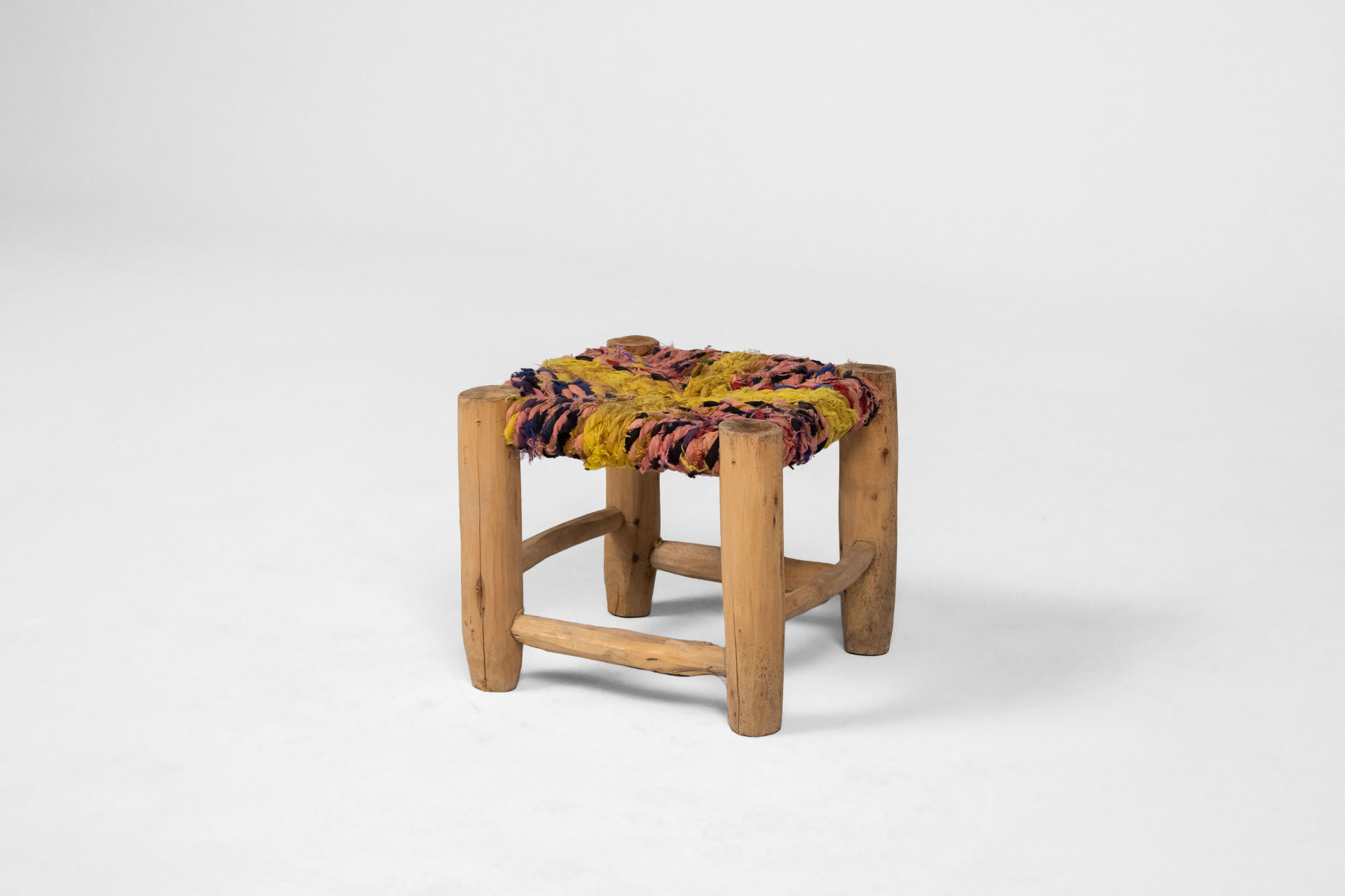 Kézműves, rusztikus stílusú kicsi sámli, amely természetes fa lábakkal és színes, szőtt ülőfelülettel rendelkezik. Időtlen megjelenése ideális választás bármely klasszikus otthoni díszletbe