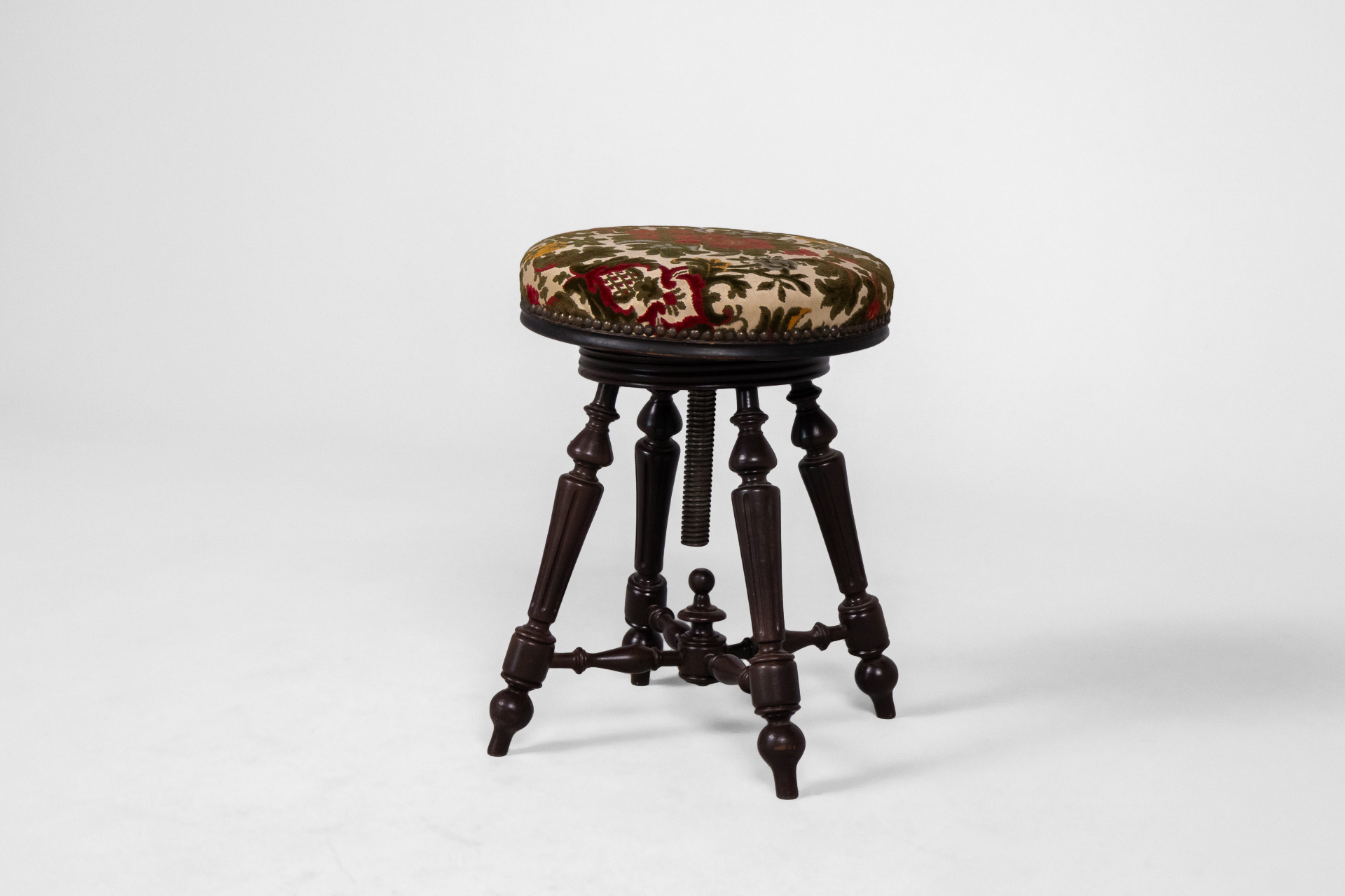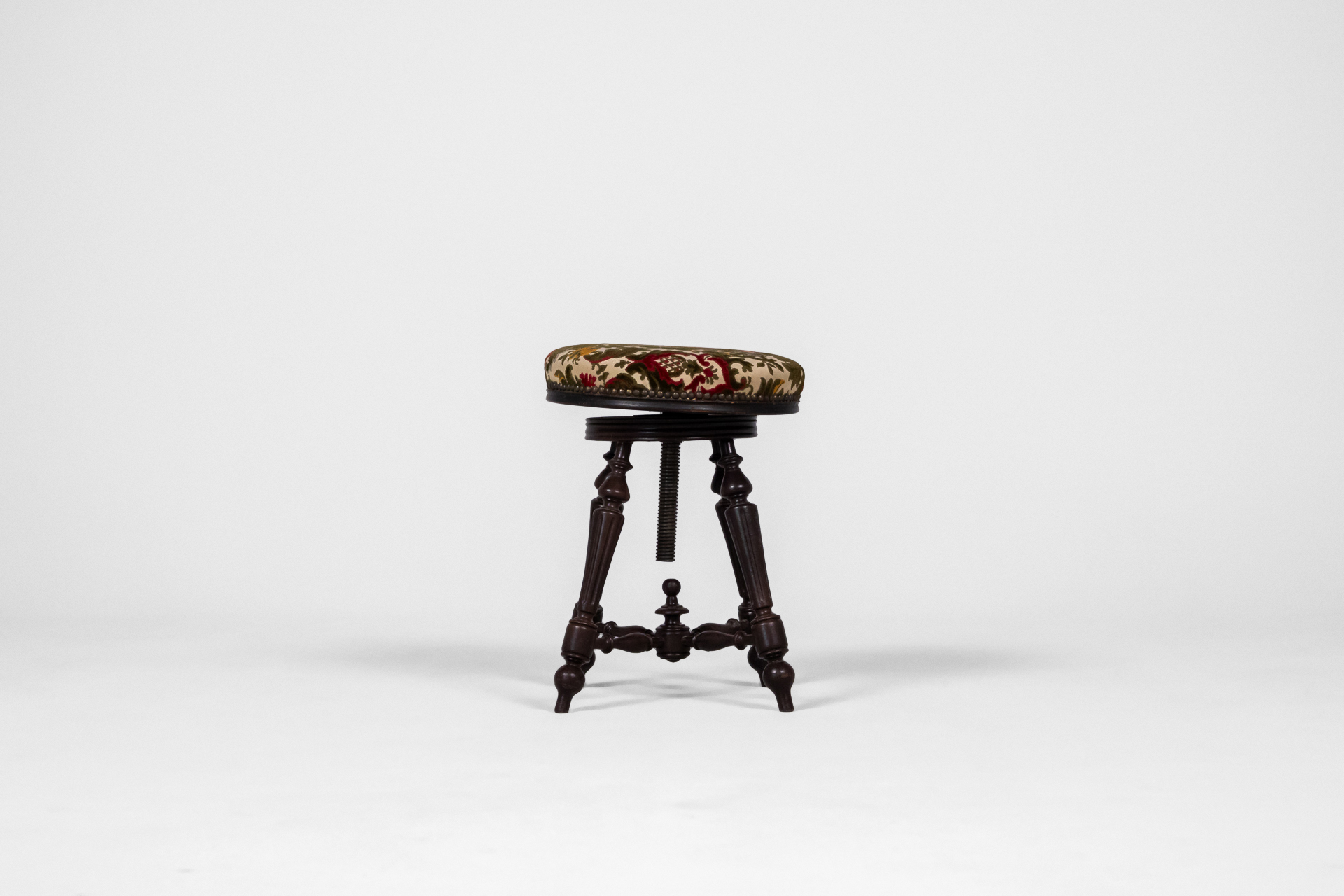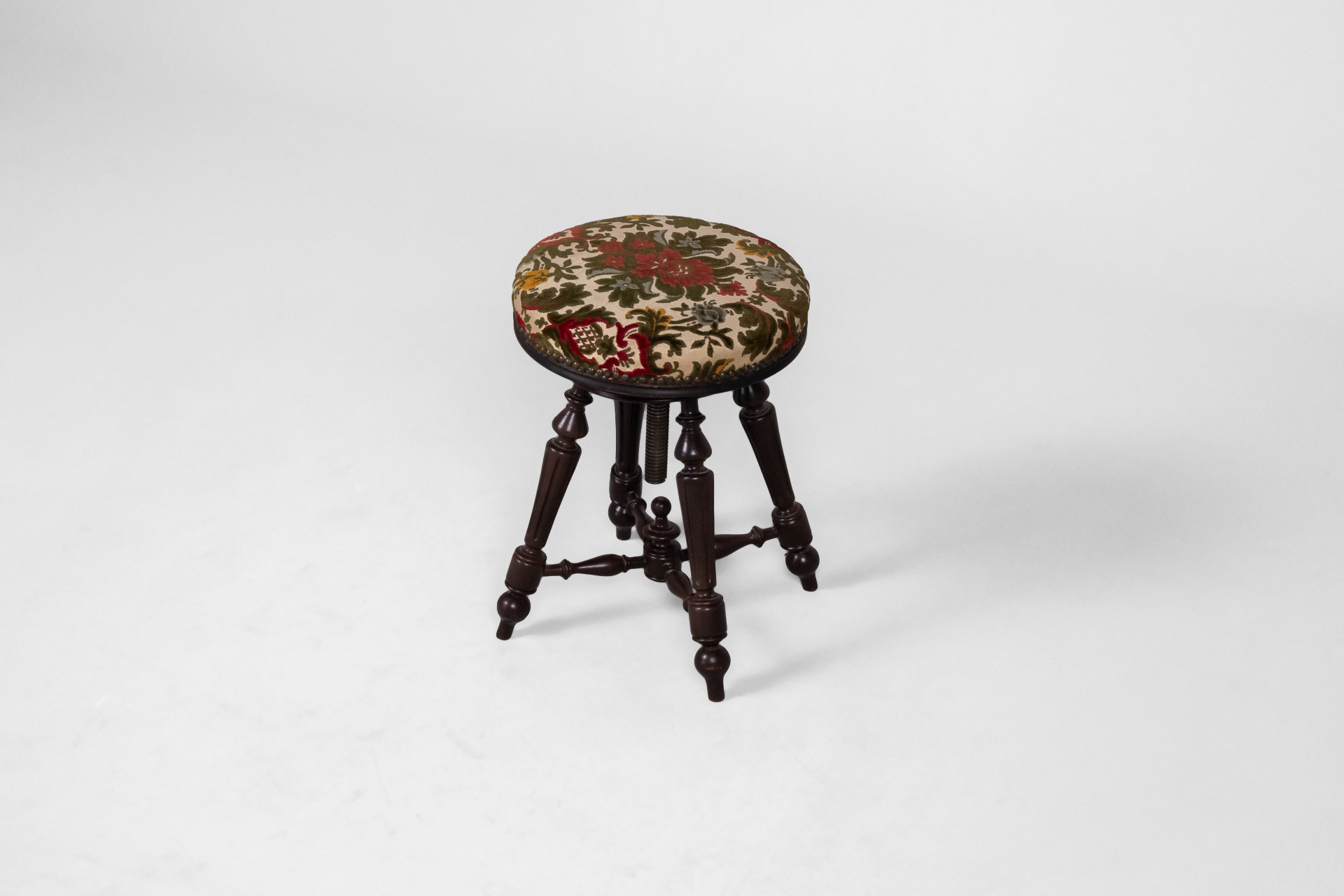 Kerek sötétbarna fa bárszék virágmintás textilborítással