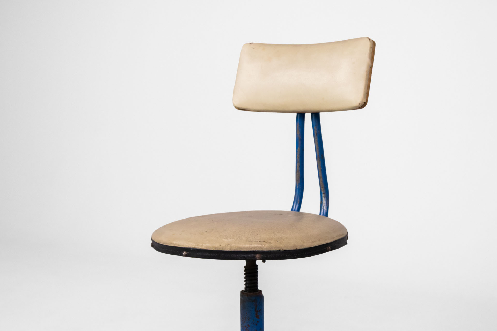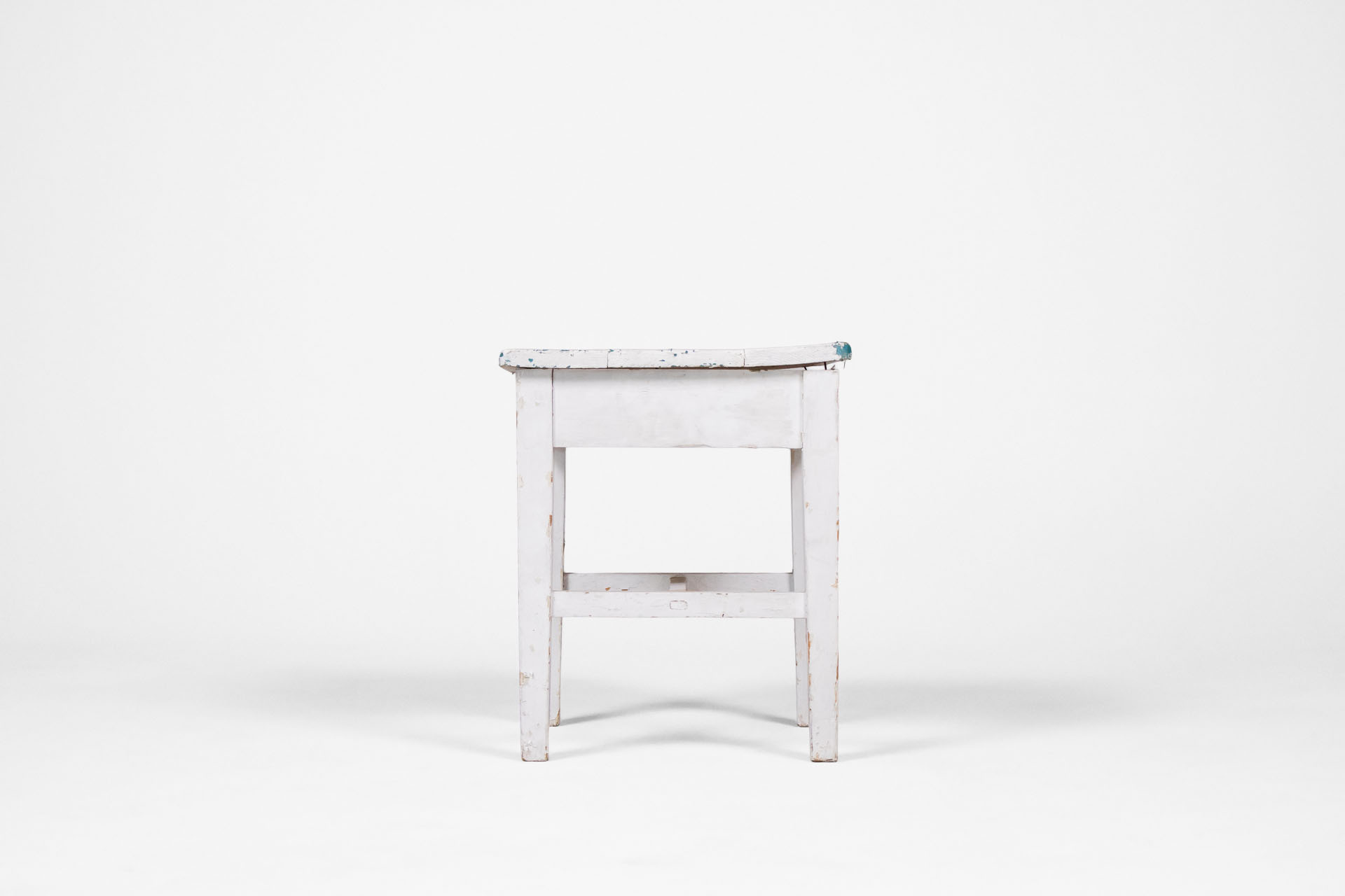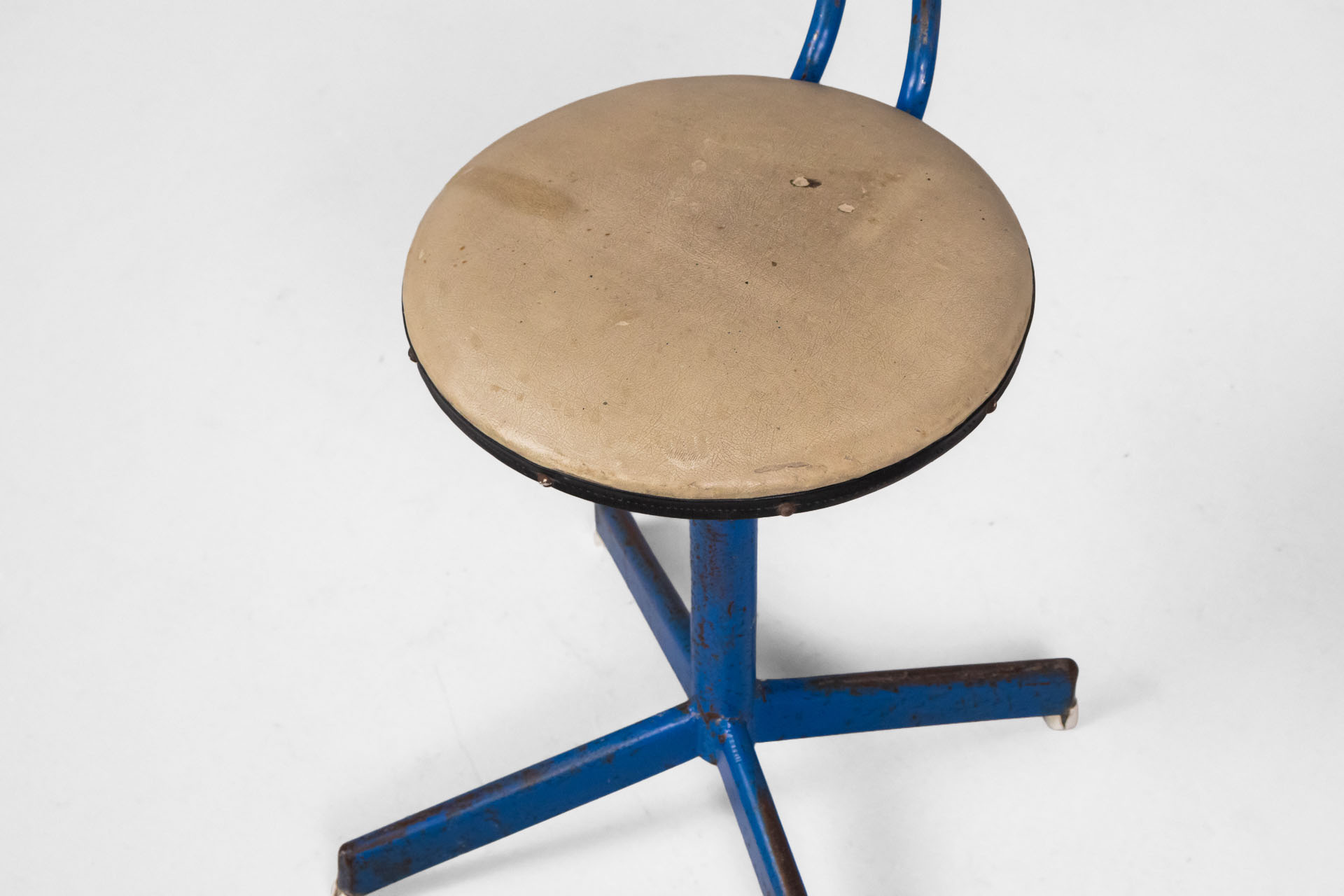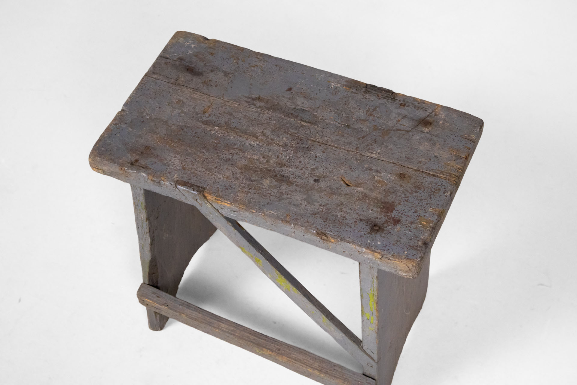 Egyszerű, funkcionális sámli, élénk kék színben, amely vintage megjelenést kölcsönöz. A kopottas felület és a festékhibák karakteres megjelenést kölcsönöznek, ideálissá téve retro stílusú enteriőrökbe