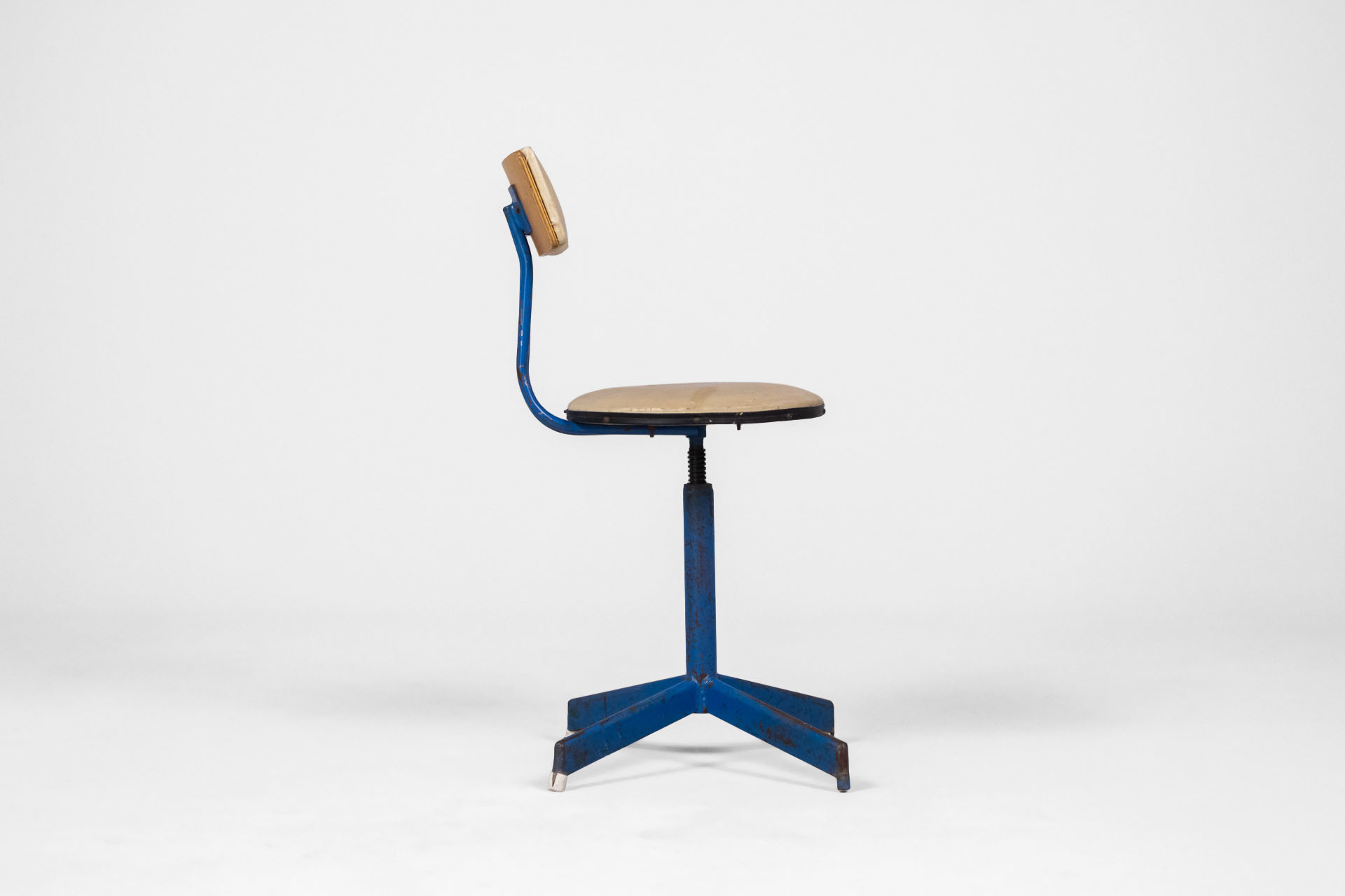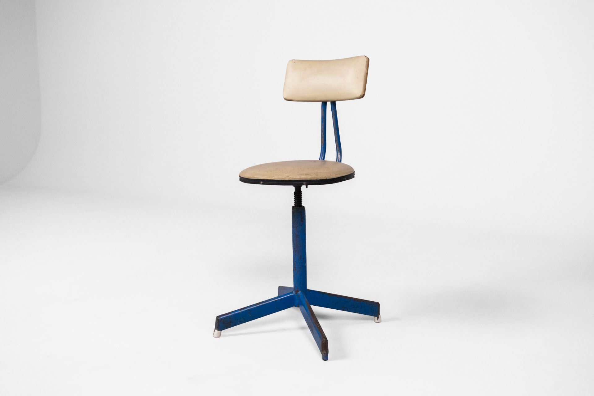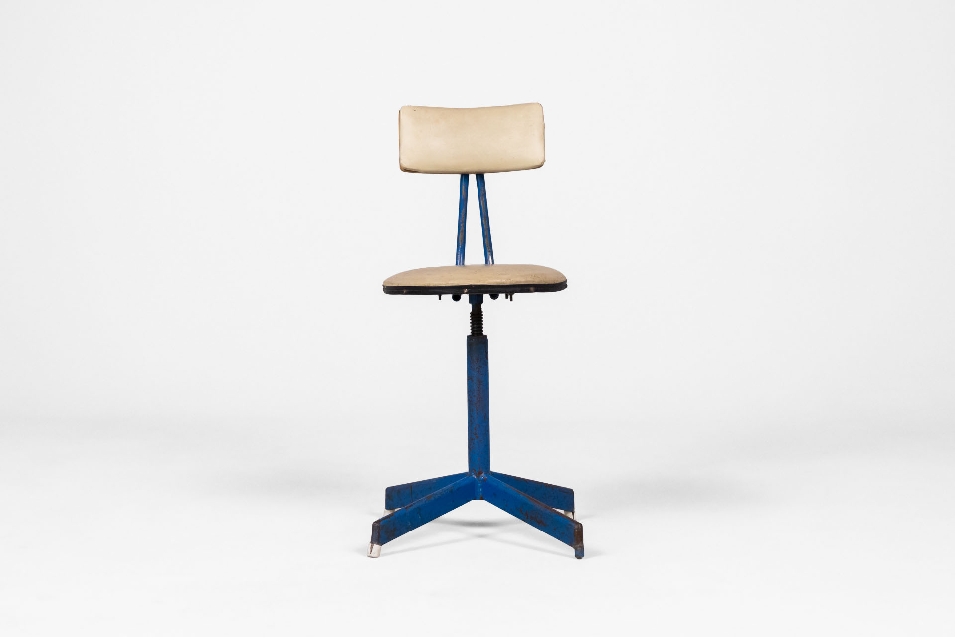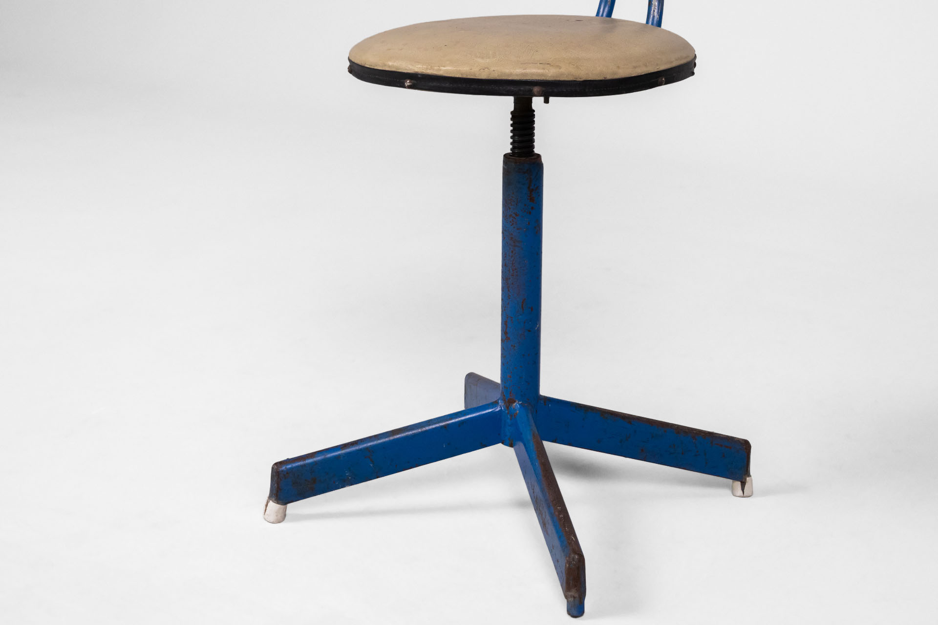 Egyszerű, funkcionális sámli, élénk kék színben, amely vintage megjelenést kölcsönöz. A kopottas felület és a festékhibák karakteres megjelenést kölcsönöznek, ideálissá téve retro stílusú enteriőrökbe