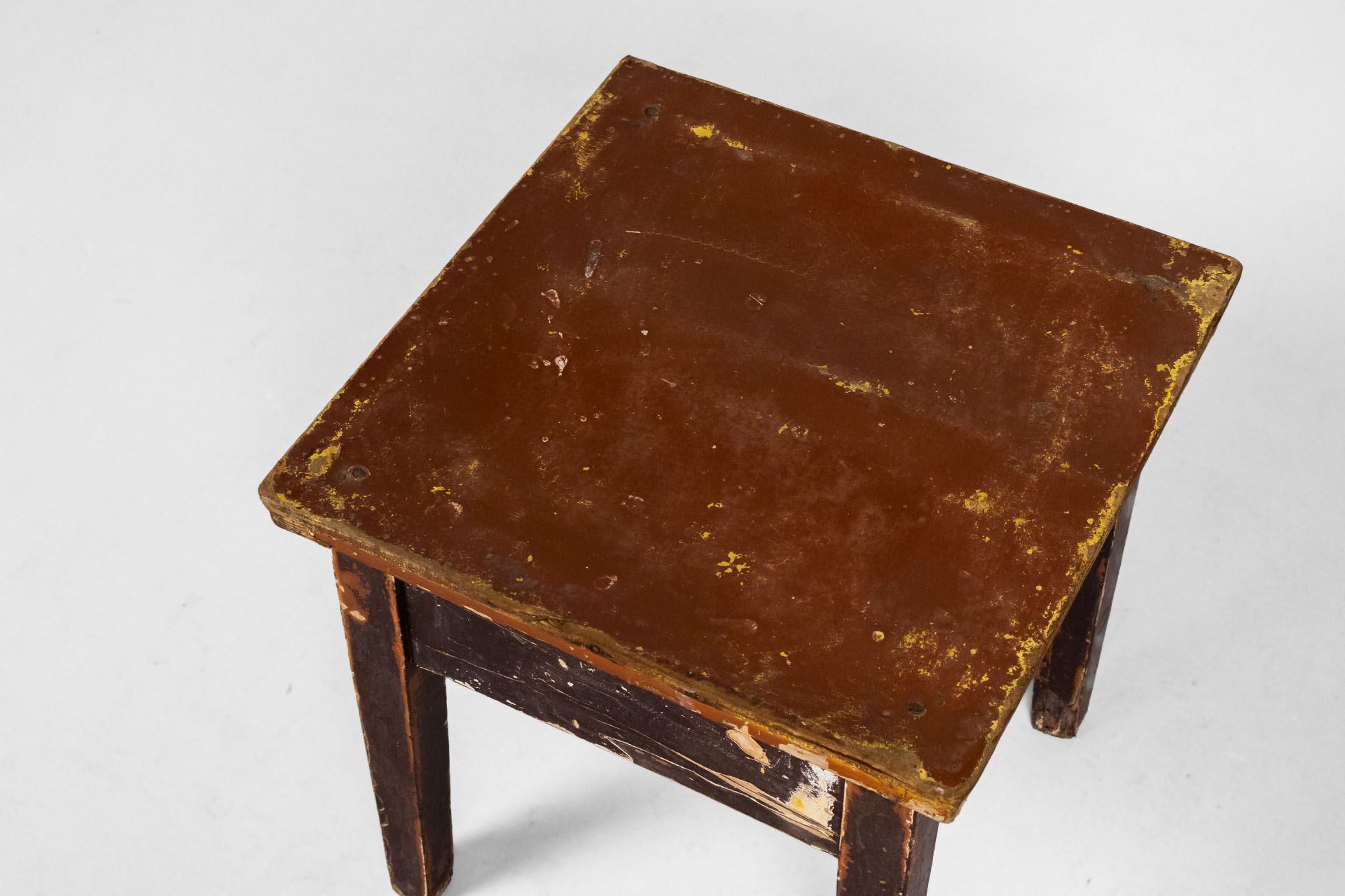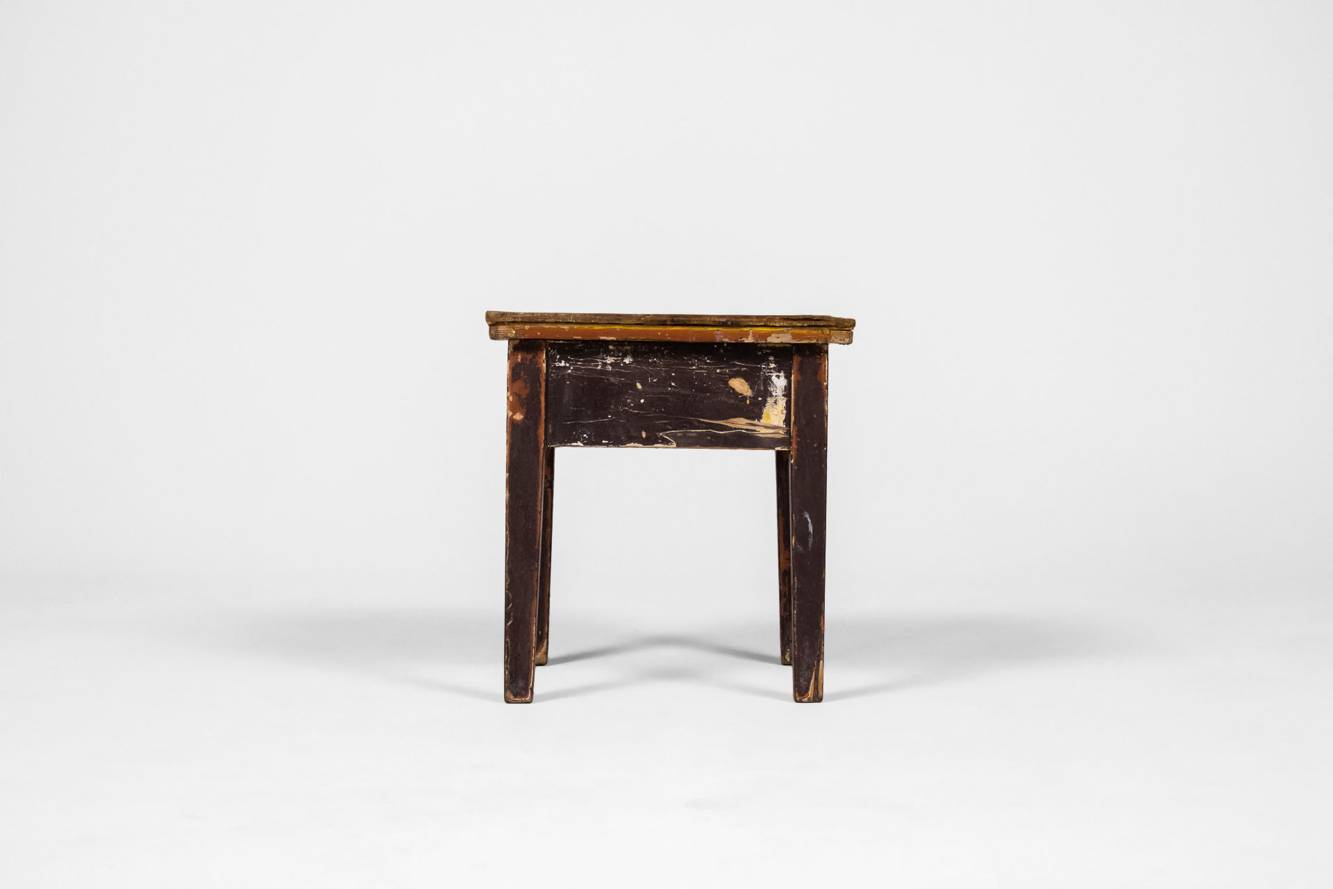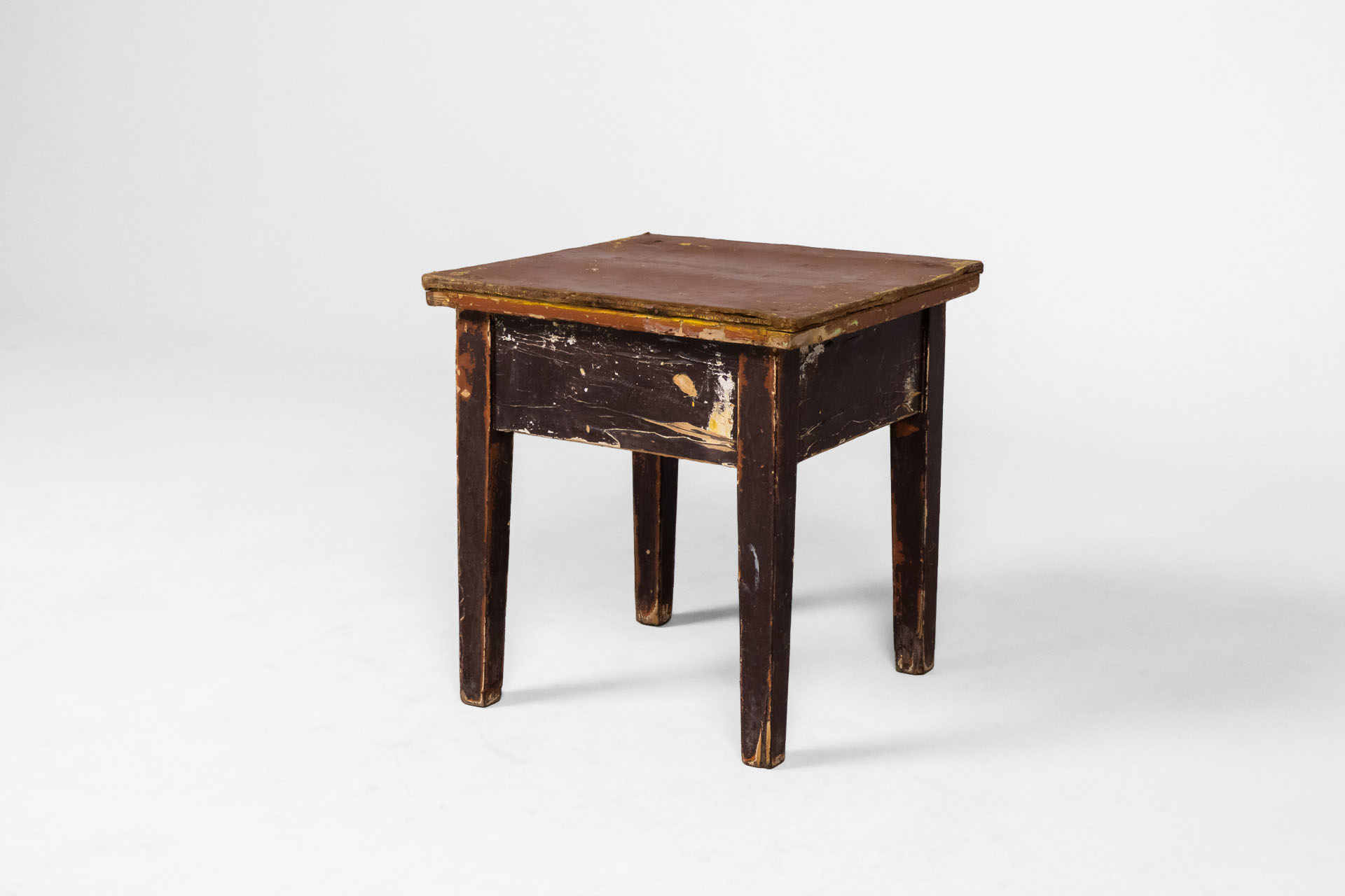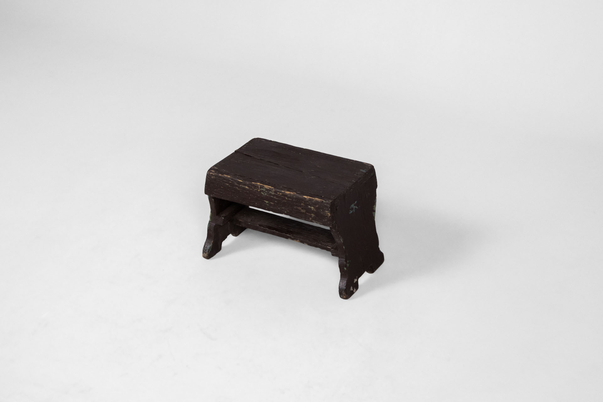 Egy kis méretű, vintage stílusú hokedli. A sötétbarna, kopott felület és a lekerekített sarkok időtlen megjelenést kölcsönöznek neki, ideális választás bármilyen retro vagy vidéki enteriőrbe