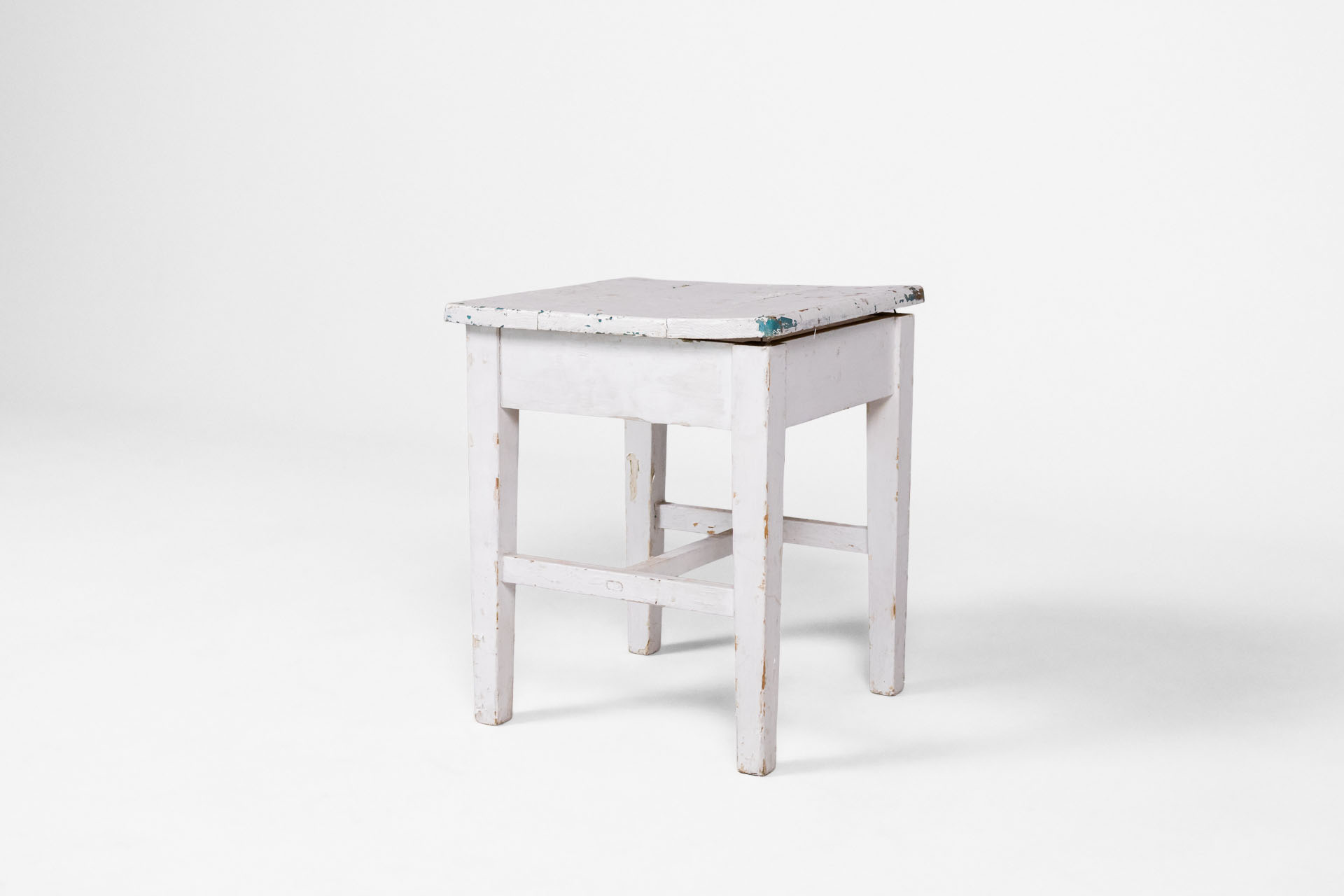 Egyszerű, de karakteres hokedli vintage stílussal és kopottas megjelenéssel. A lekerekített sarkok és a rusztikus felület barátságos és otthonos érzést nyújt