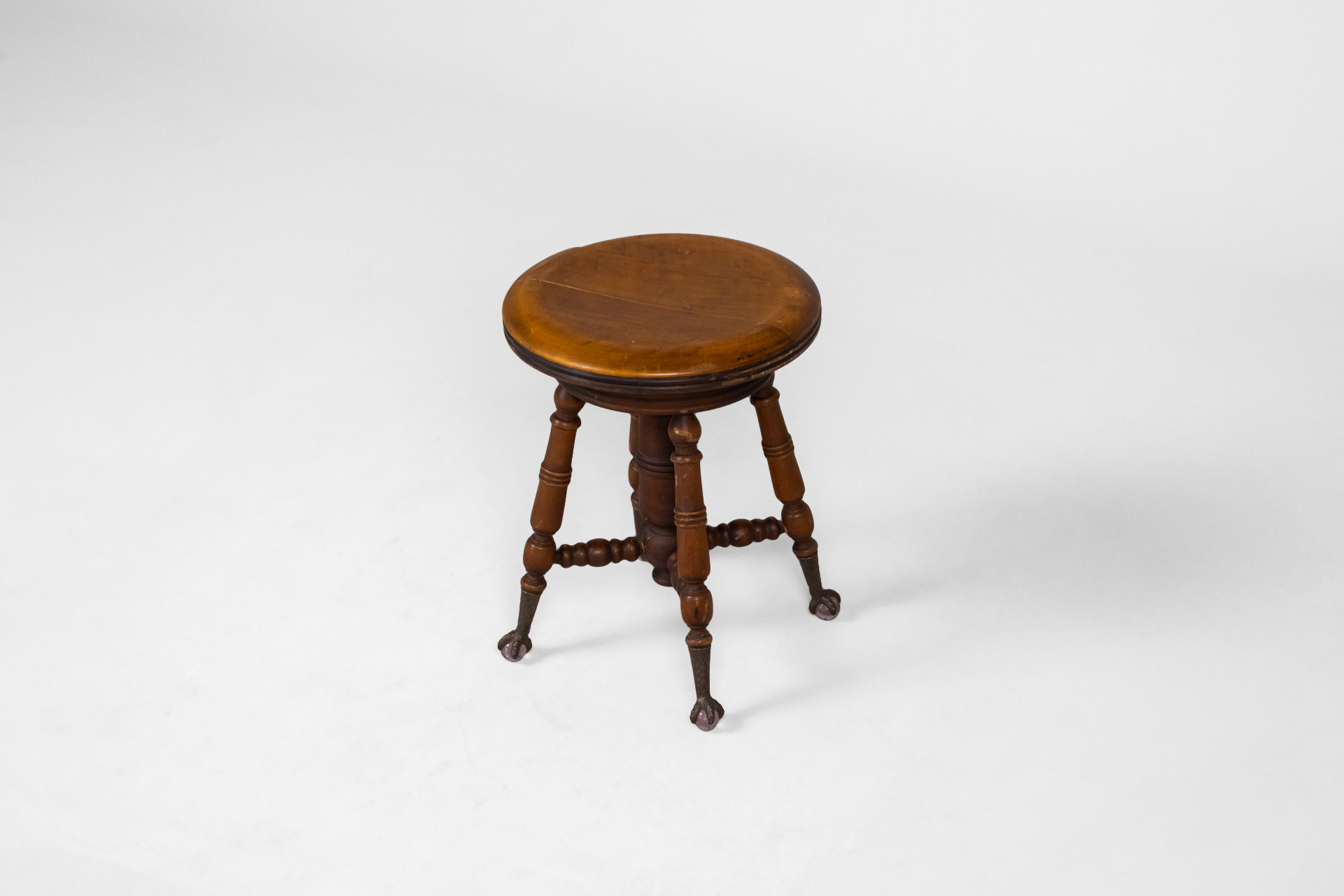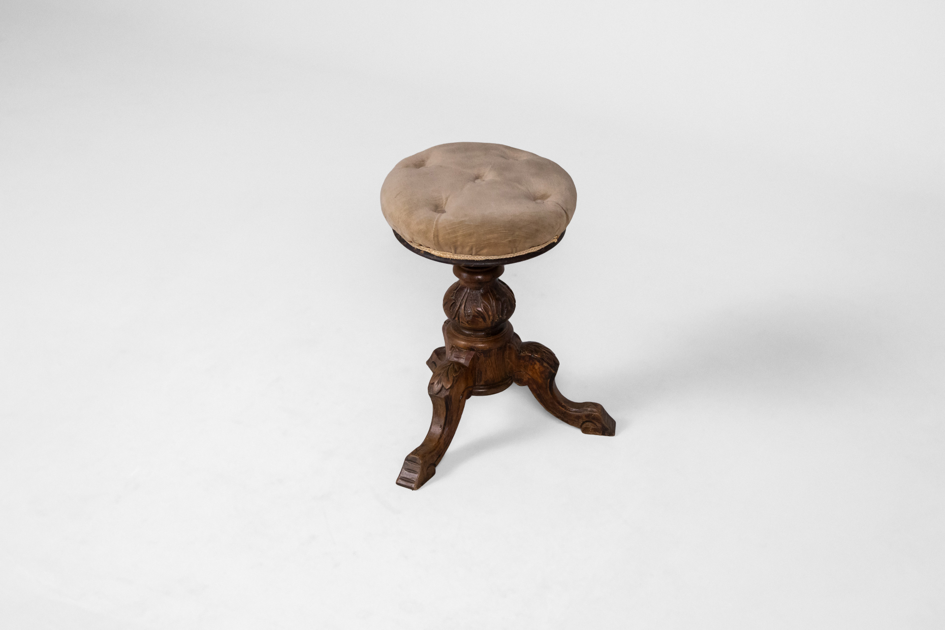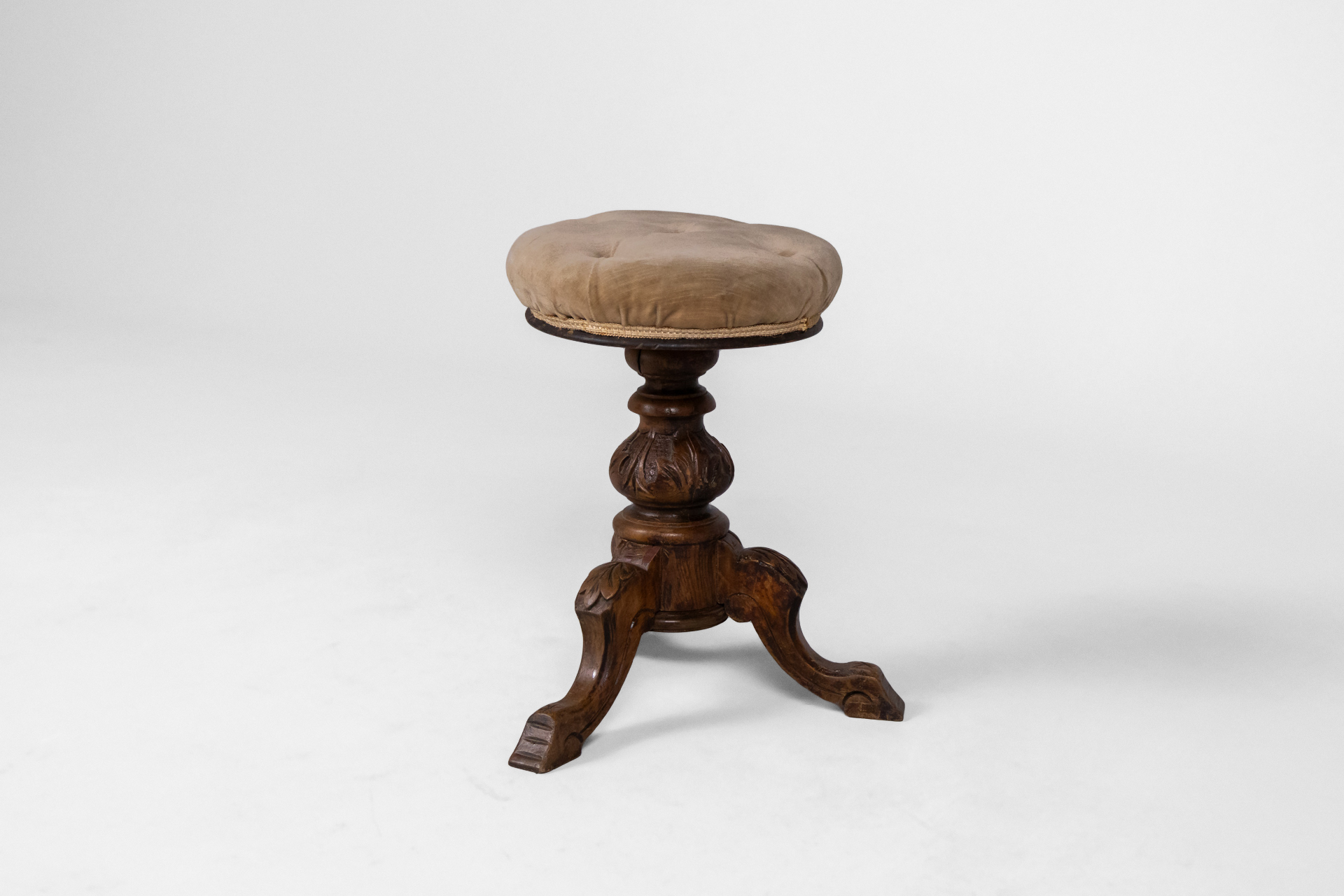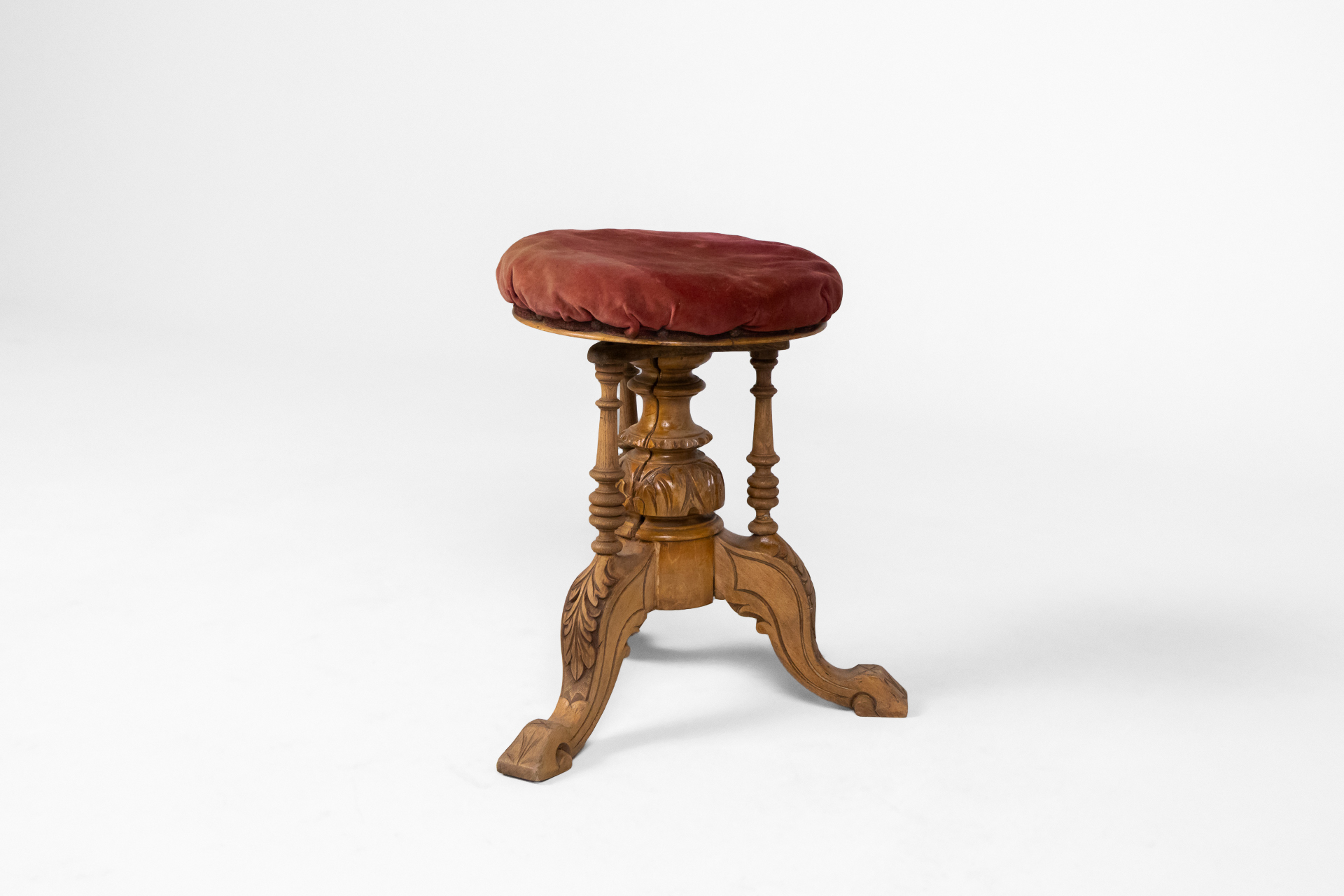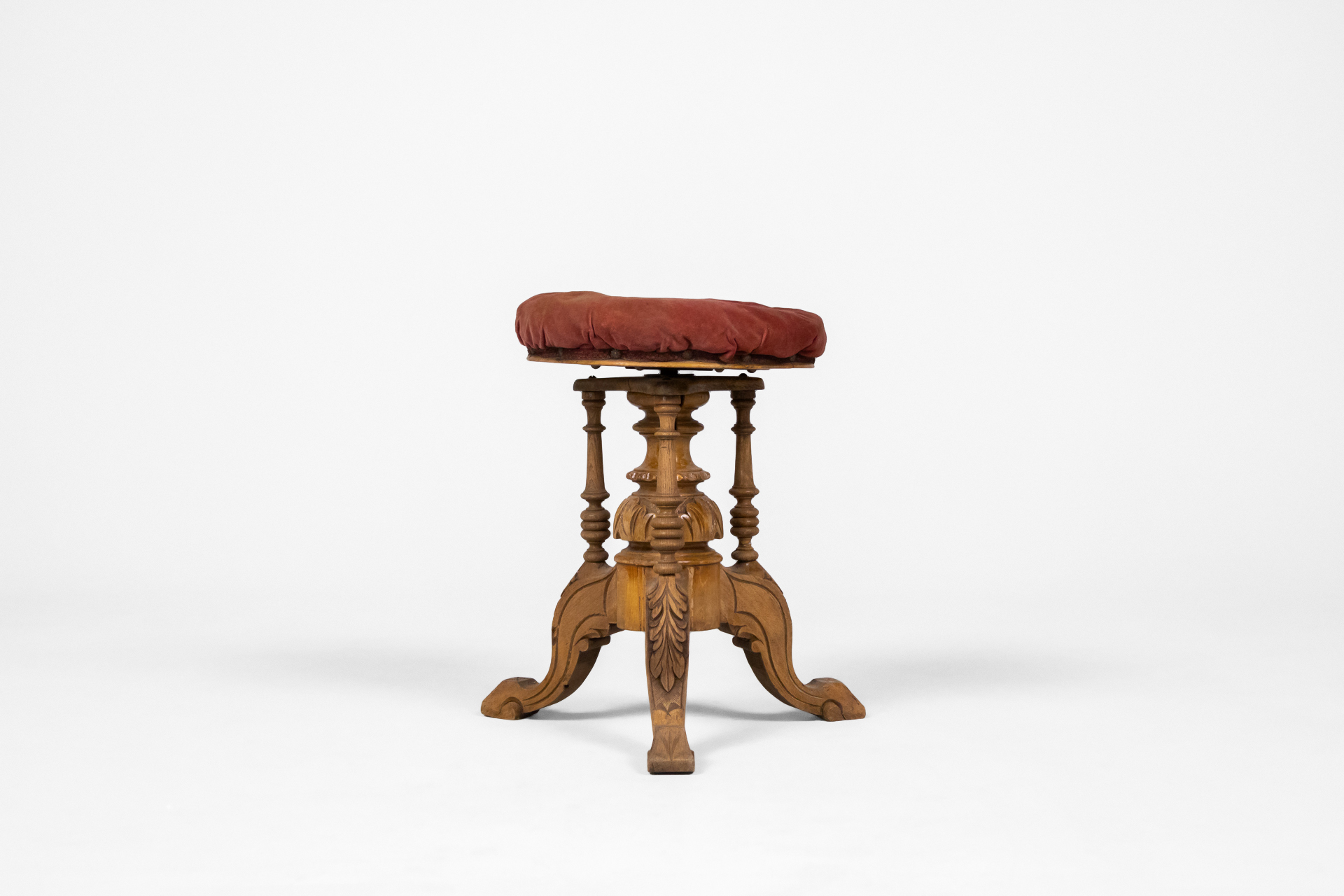 Kerek zongoraszék sötétbarna fa lábazattal és ívelt lábakkal