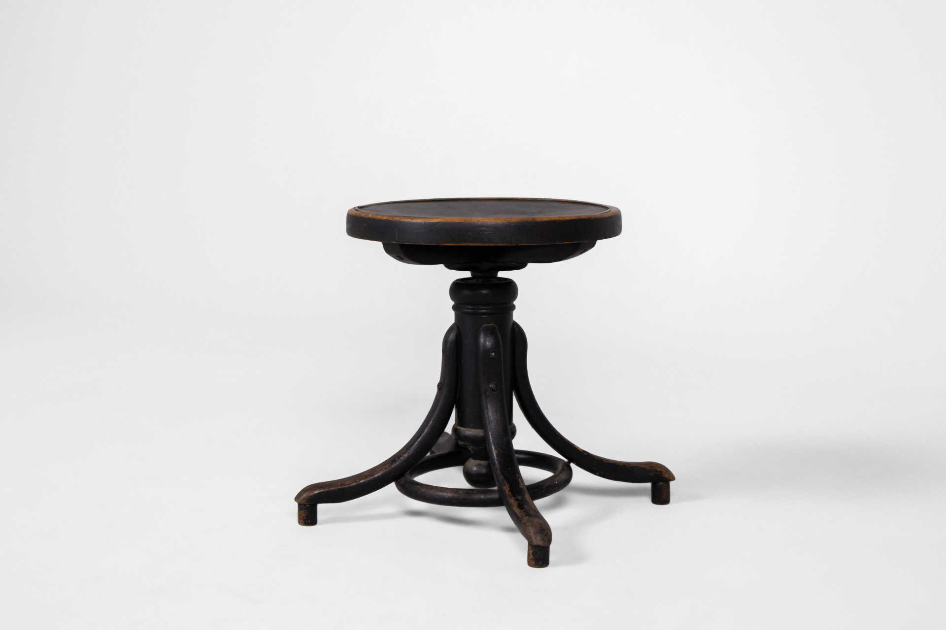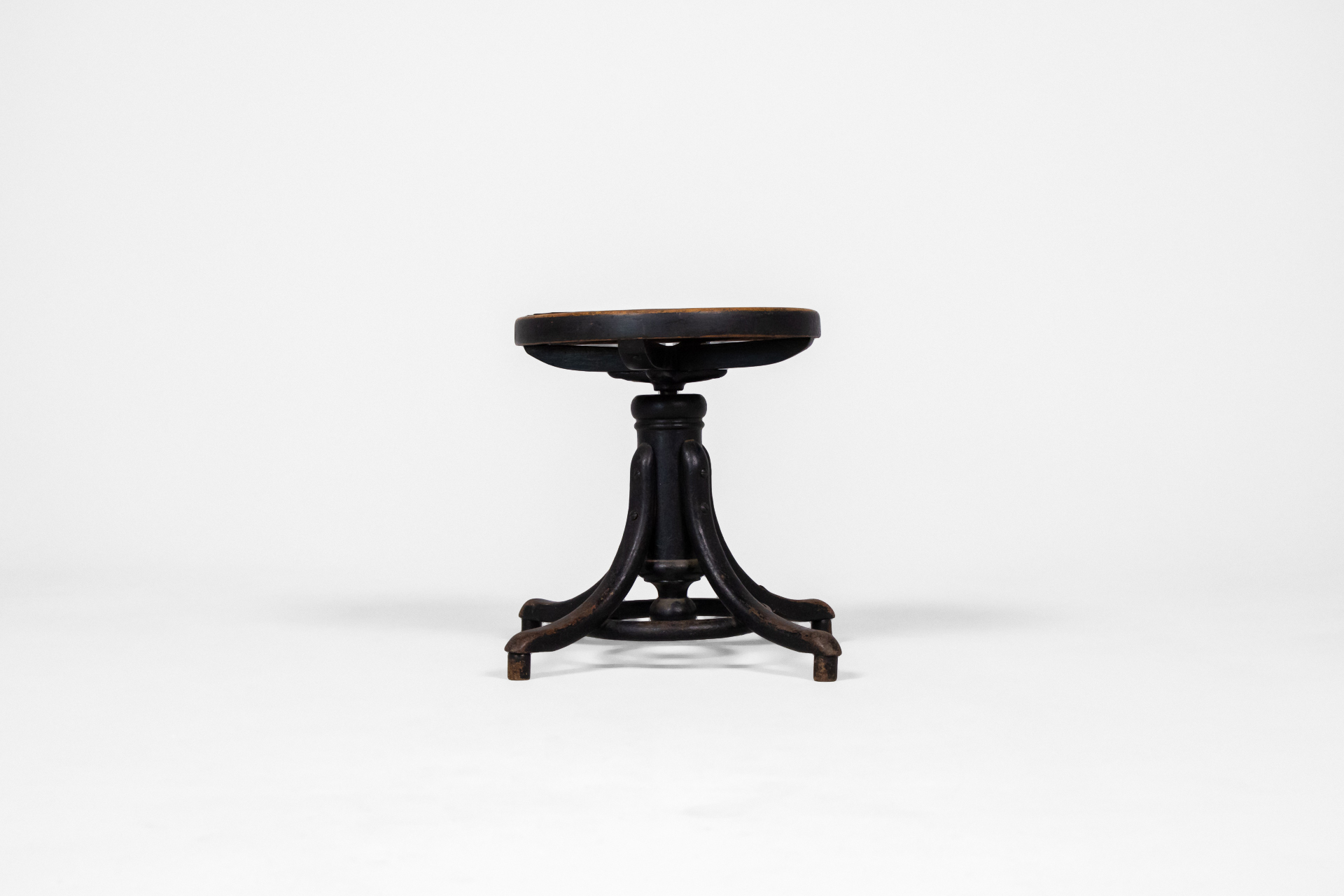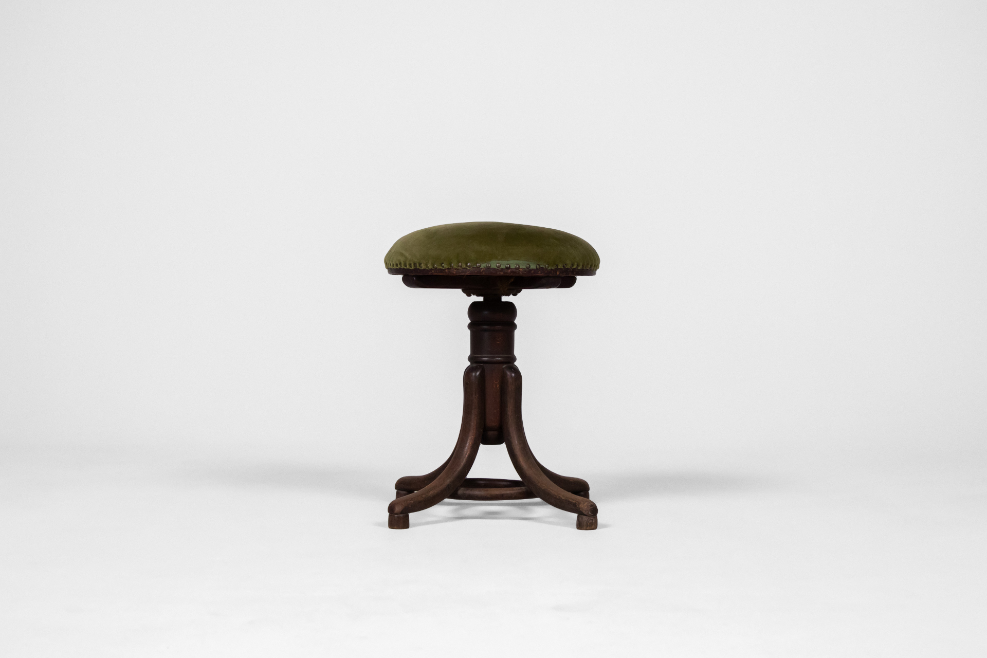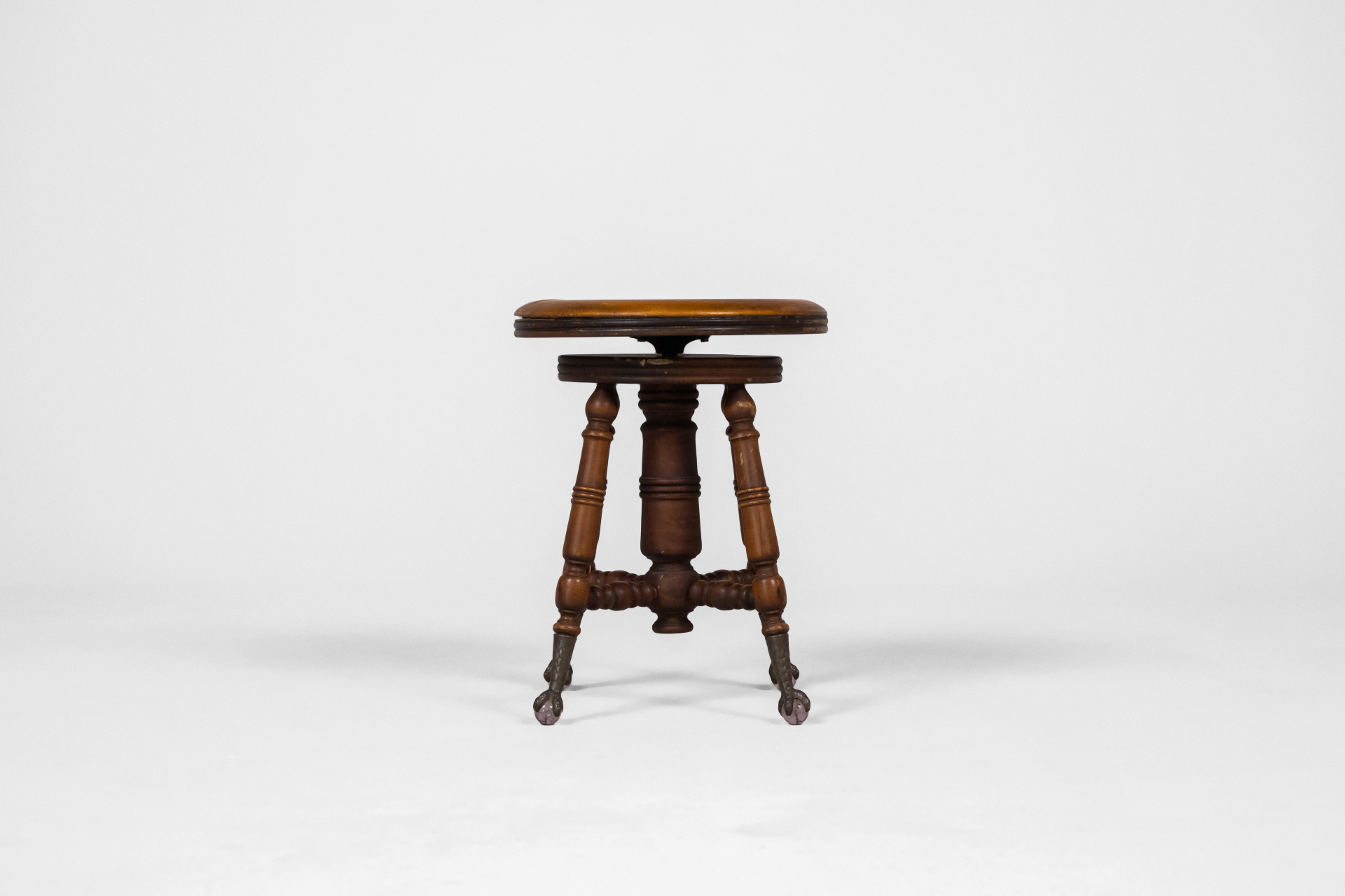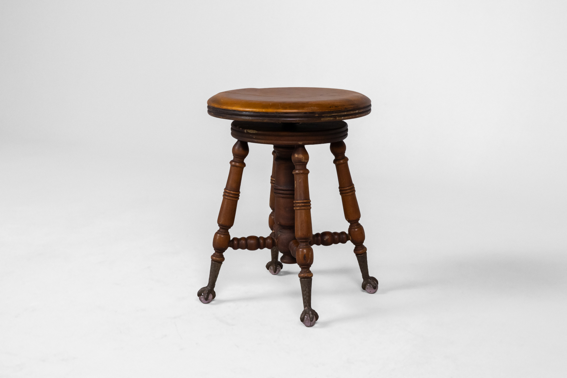 Kerek zongoraszék sötétbarna fa lábazattal és ívelt lábakkal