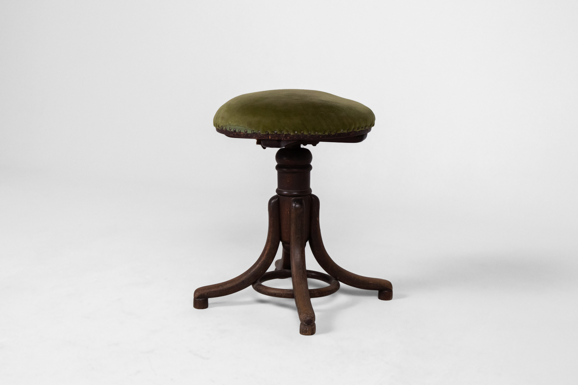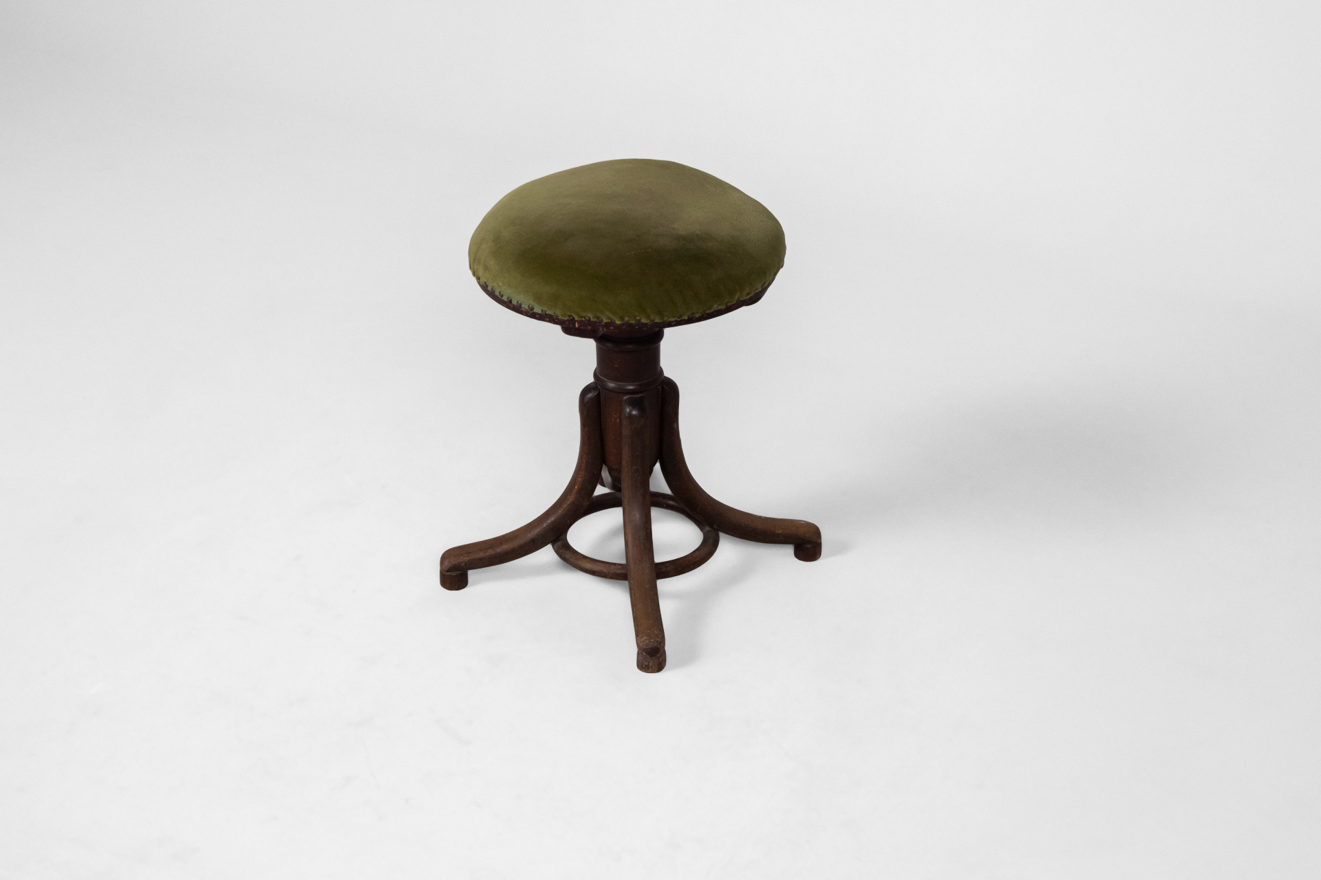 Kerek zöld bársonyos ülőke barna fa lábakkal