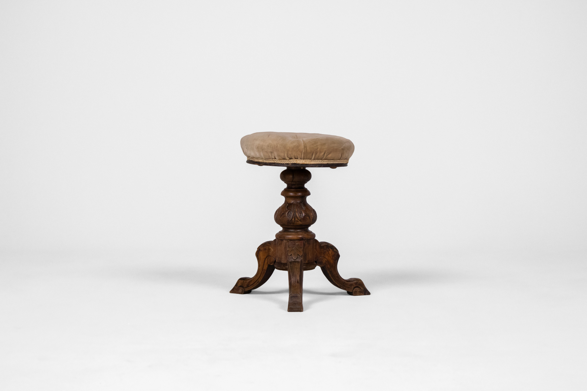 Kerek világosbarna párnázott ülőke díszes sötétbarna fa lábakkal