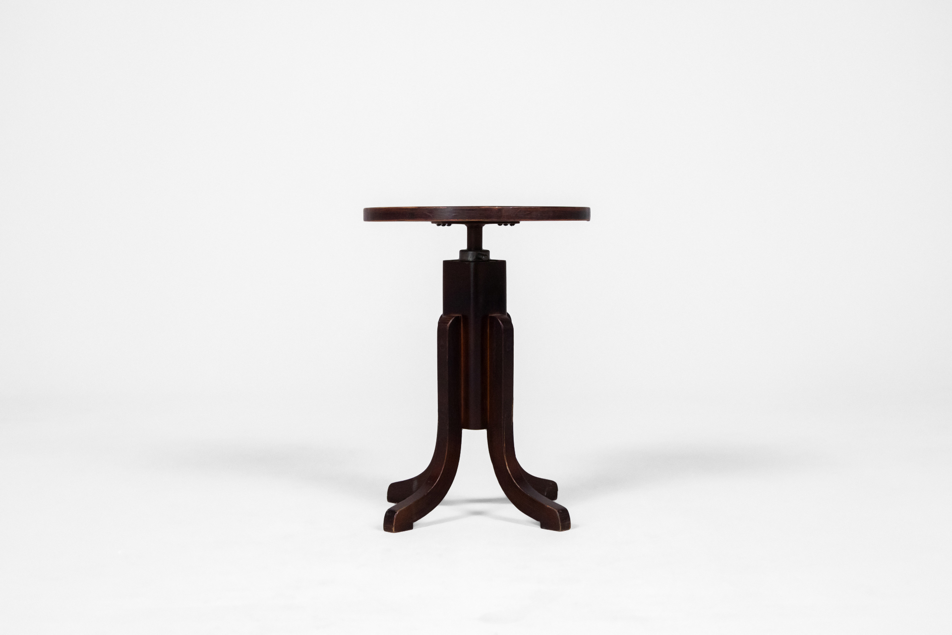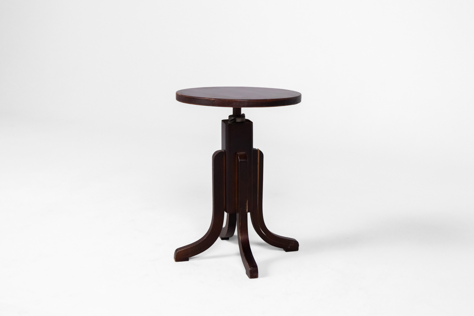 Kerek sötétbarna fa zongoraszék masszív középső lábazattal