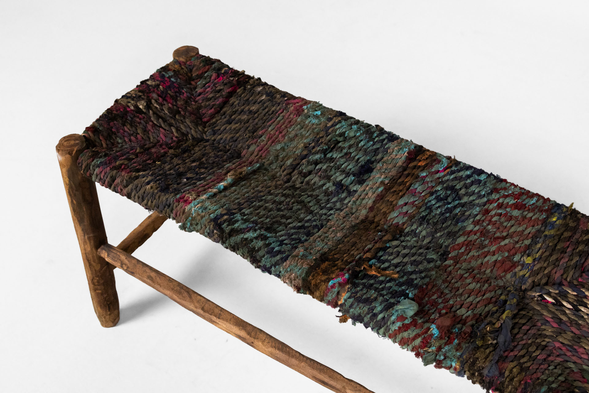 Egyedi, kézműves stílusú pad, természetes fa szerkezettel és színes, kézzel szőtt ülőfelülettel. A pad masszív, stabil alapja és a kényelmes, puha ülőfelület tökéletes választás kültéri vagy belső terekhez, ahol a...
