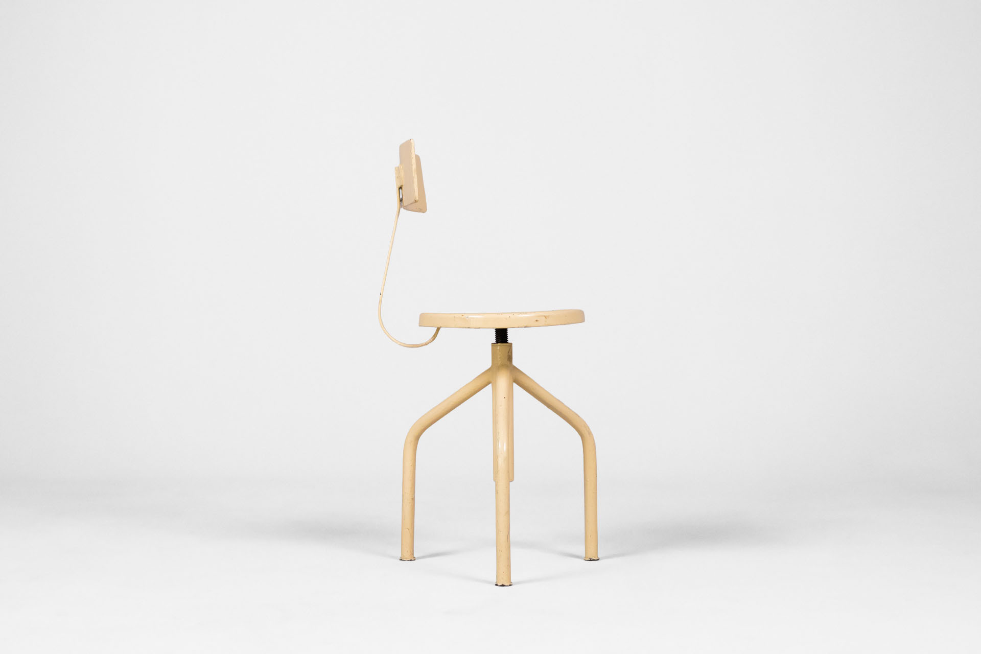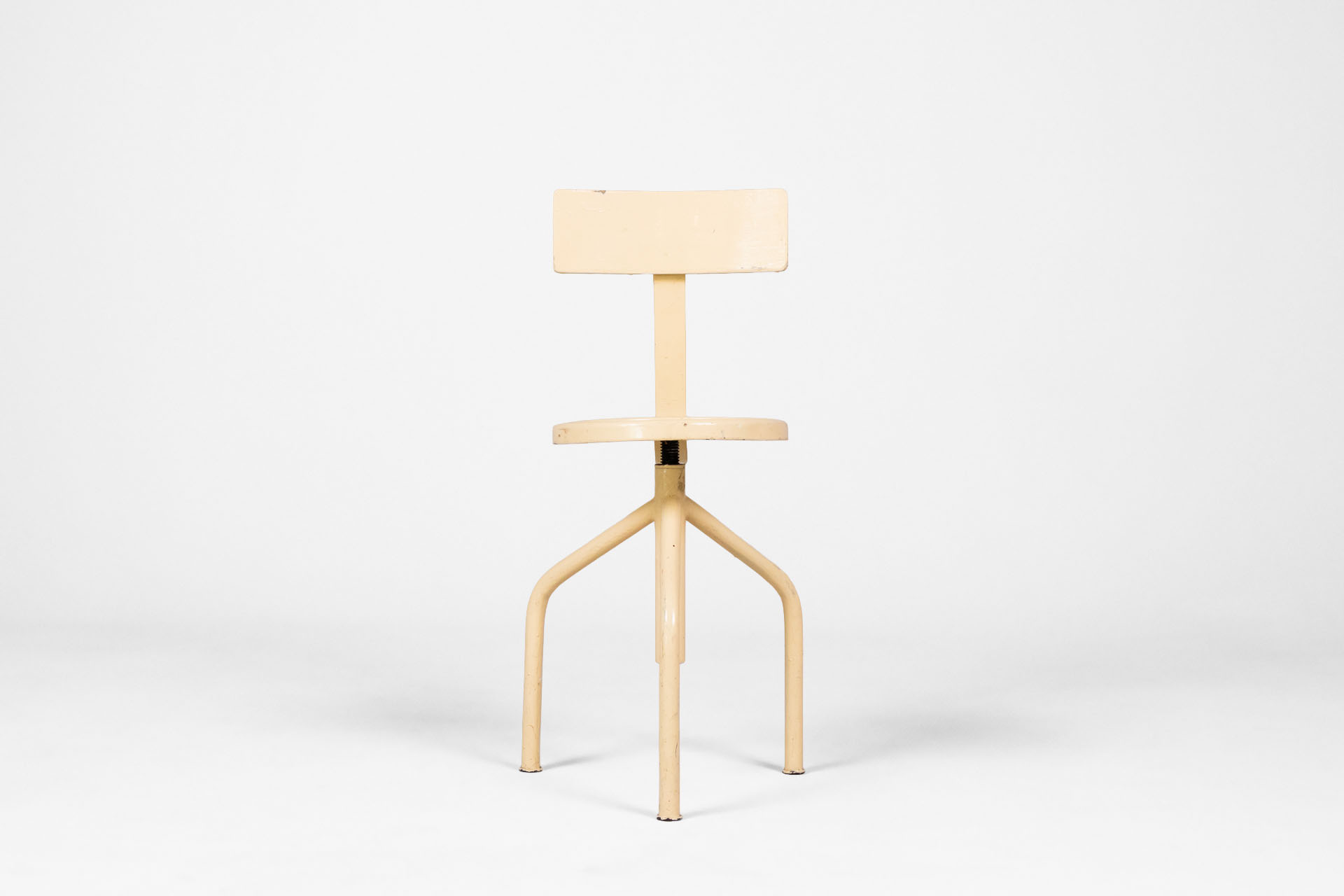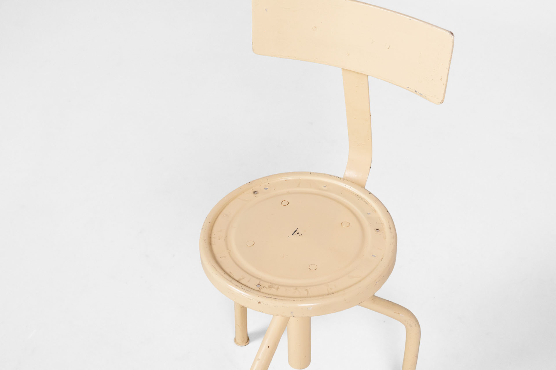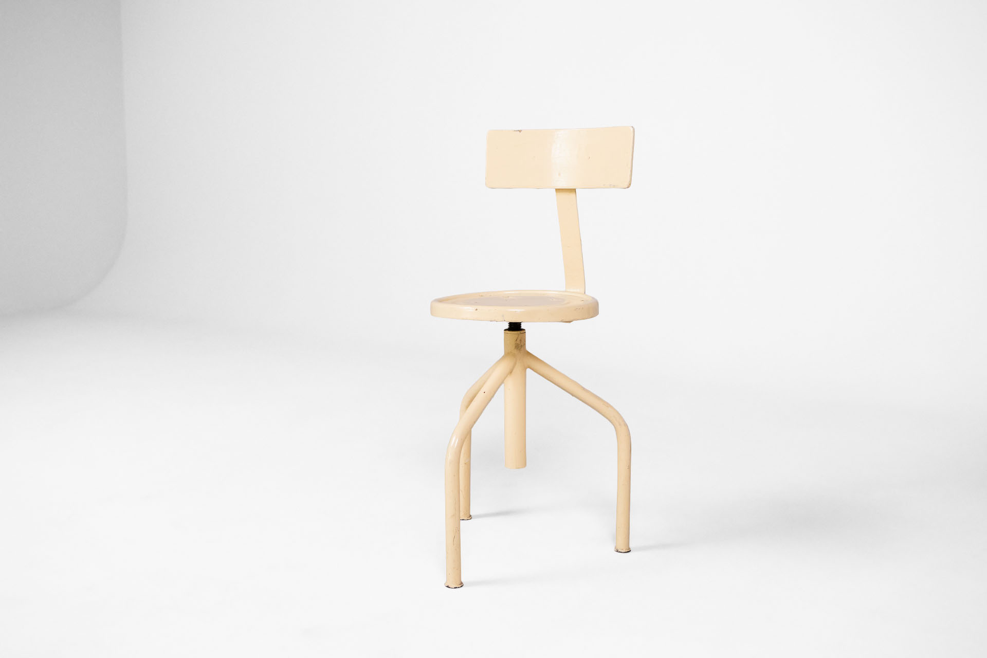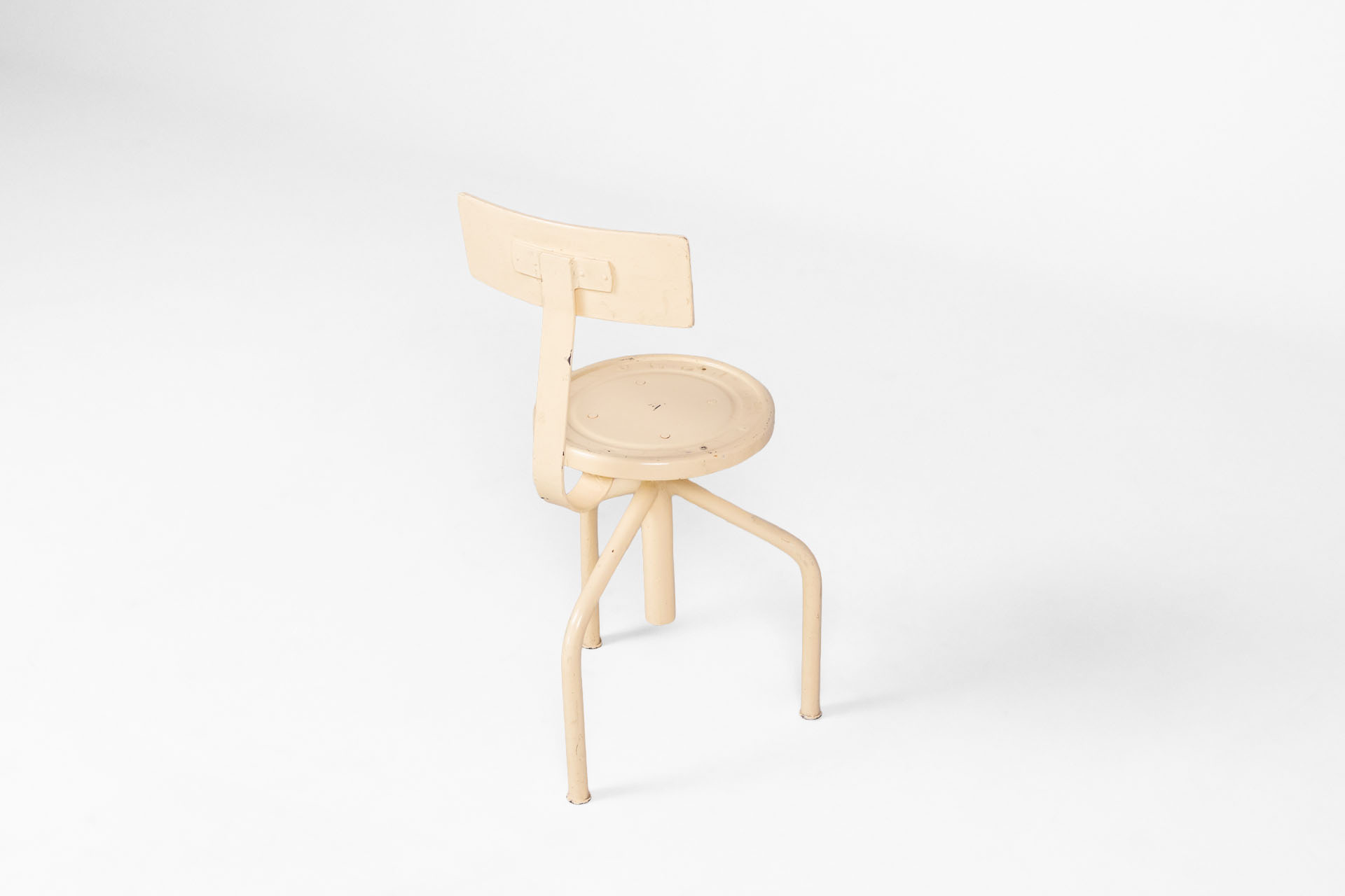 Egyszerű, modern stílusú fém szék, letisztult vonalvezetésével és funkcionális kialakítással. A szék világos, krémes színével és könnyed formájával friss, légies hangulatot teremt