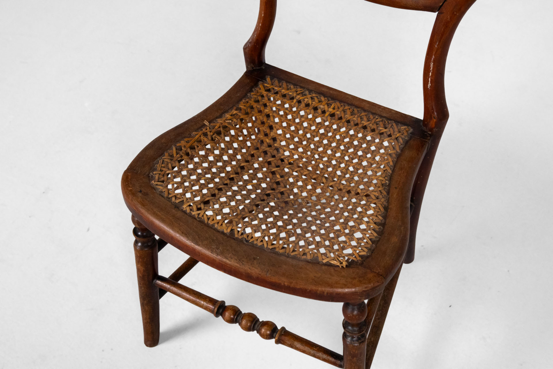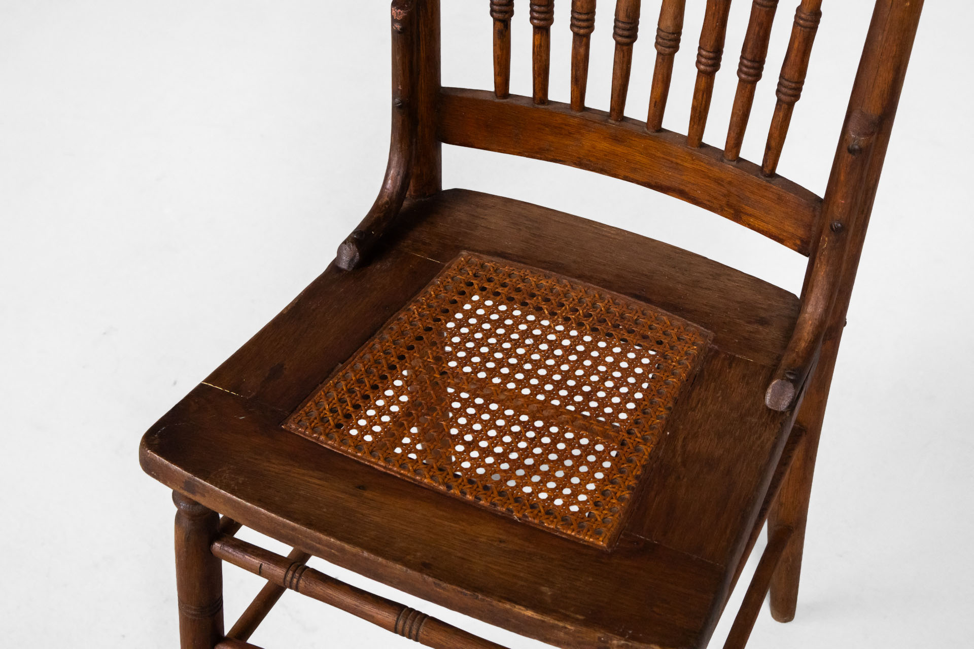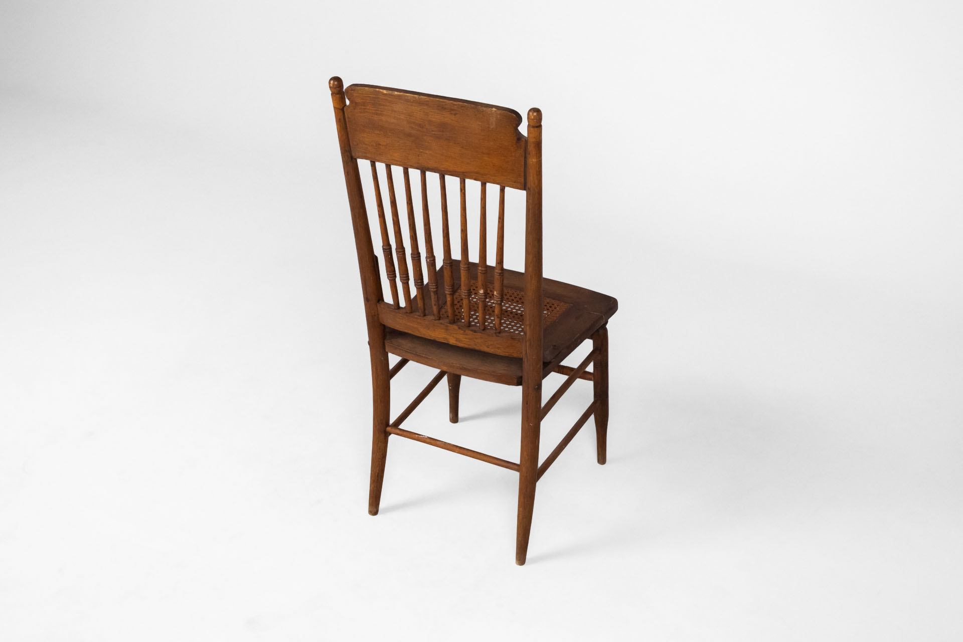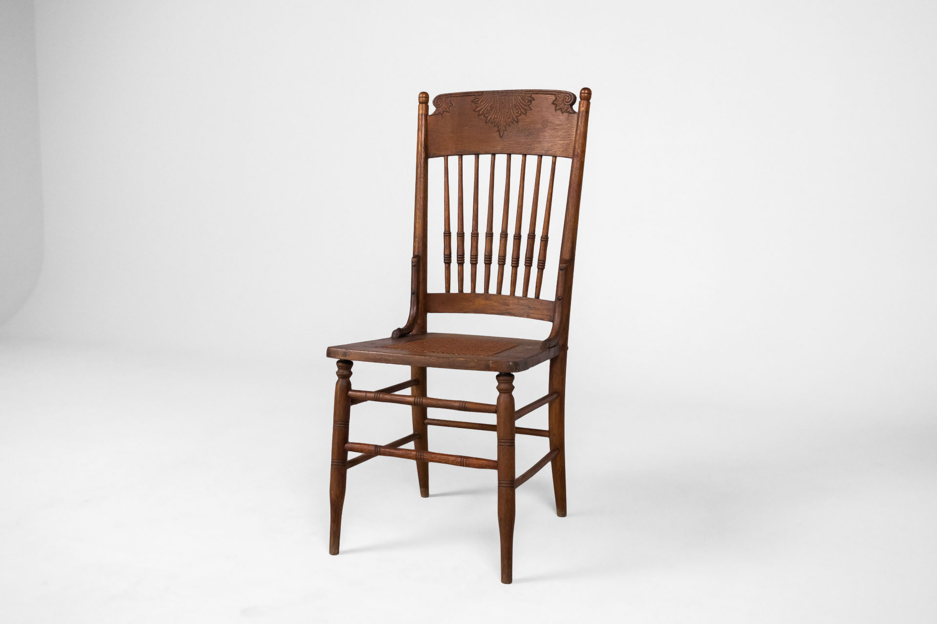 Elegáns, vintage stílusú szék, amely fonott ülőfelülettel rendelkezik. A masszív, fából készült szerkezet időtálló és stabil, ideális választás bármely retro vagy klasszikus enteriőrbe