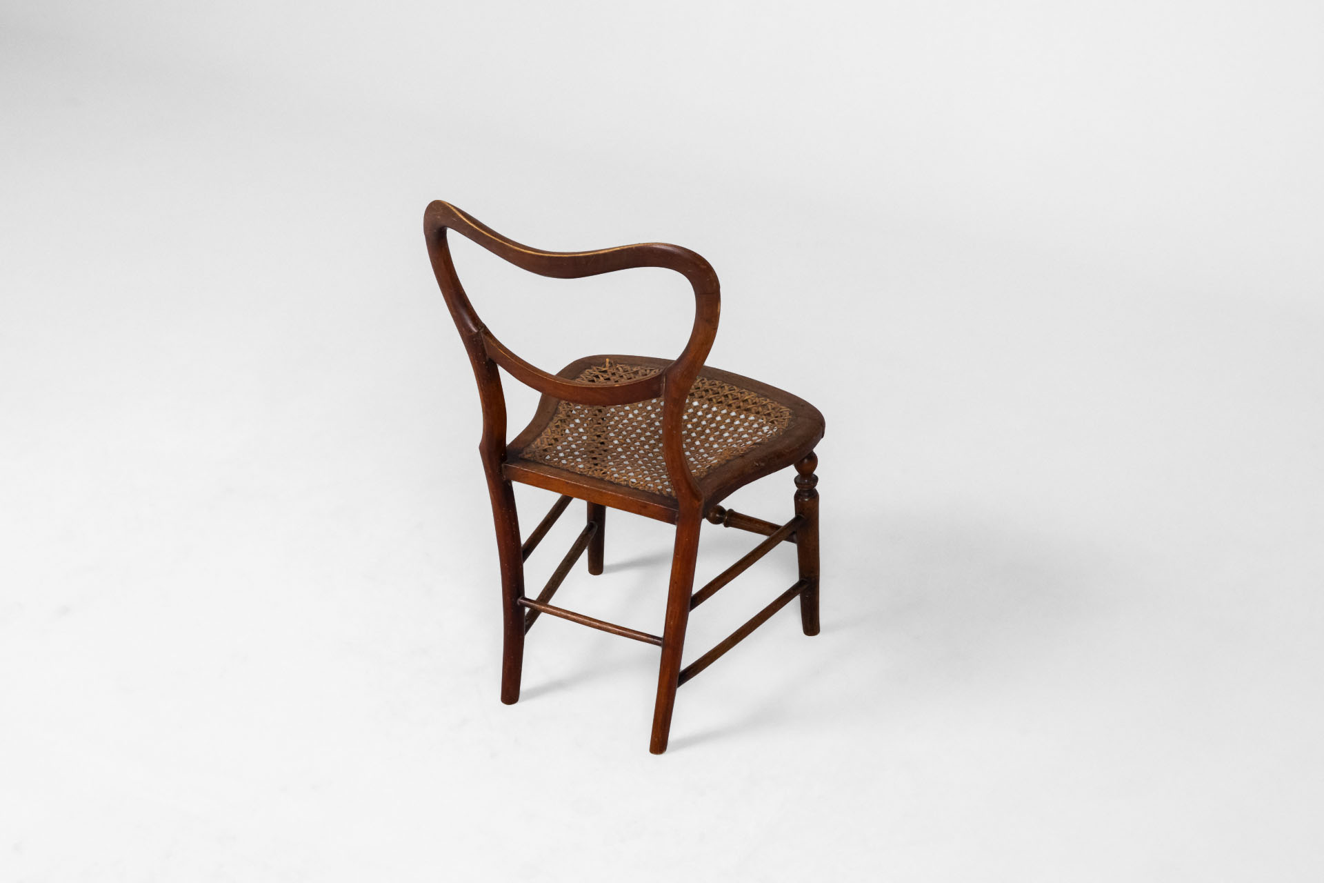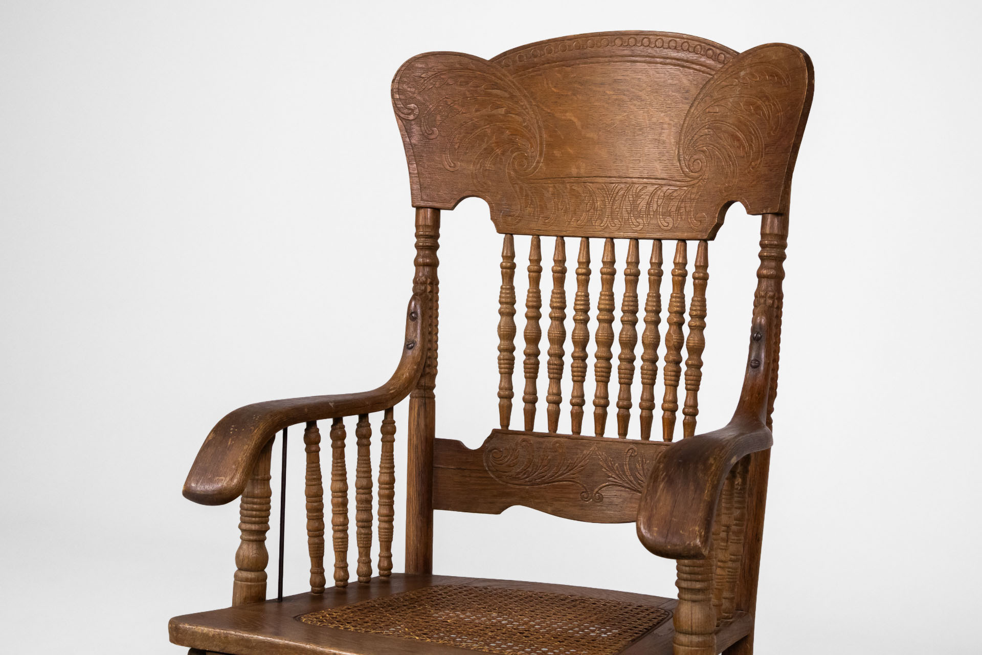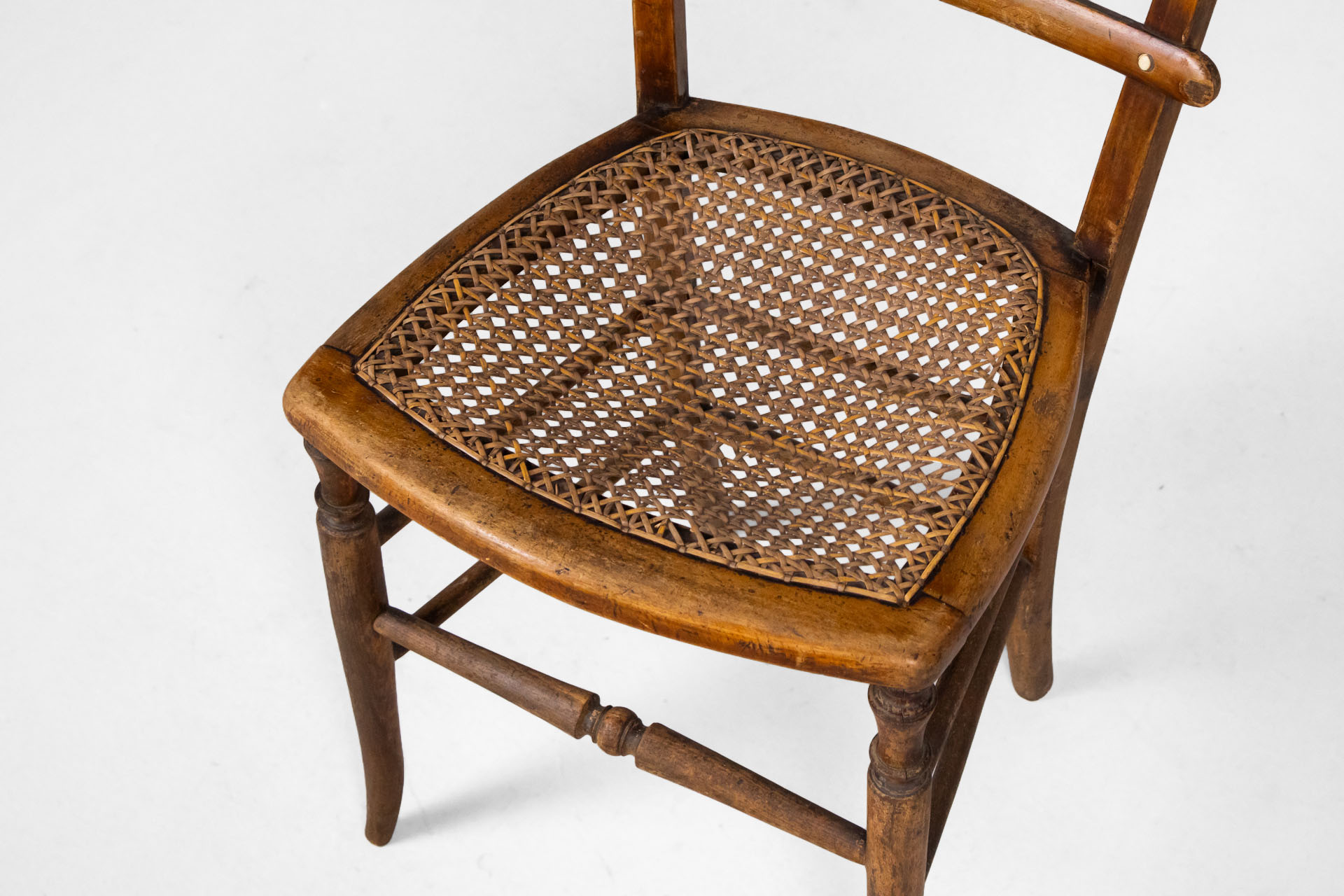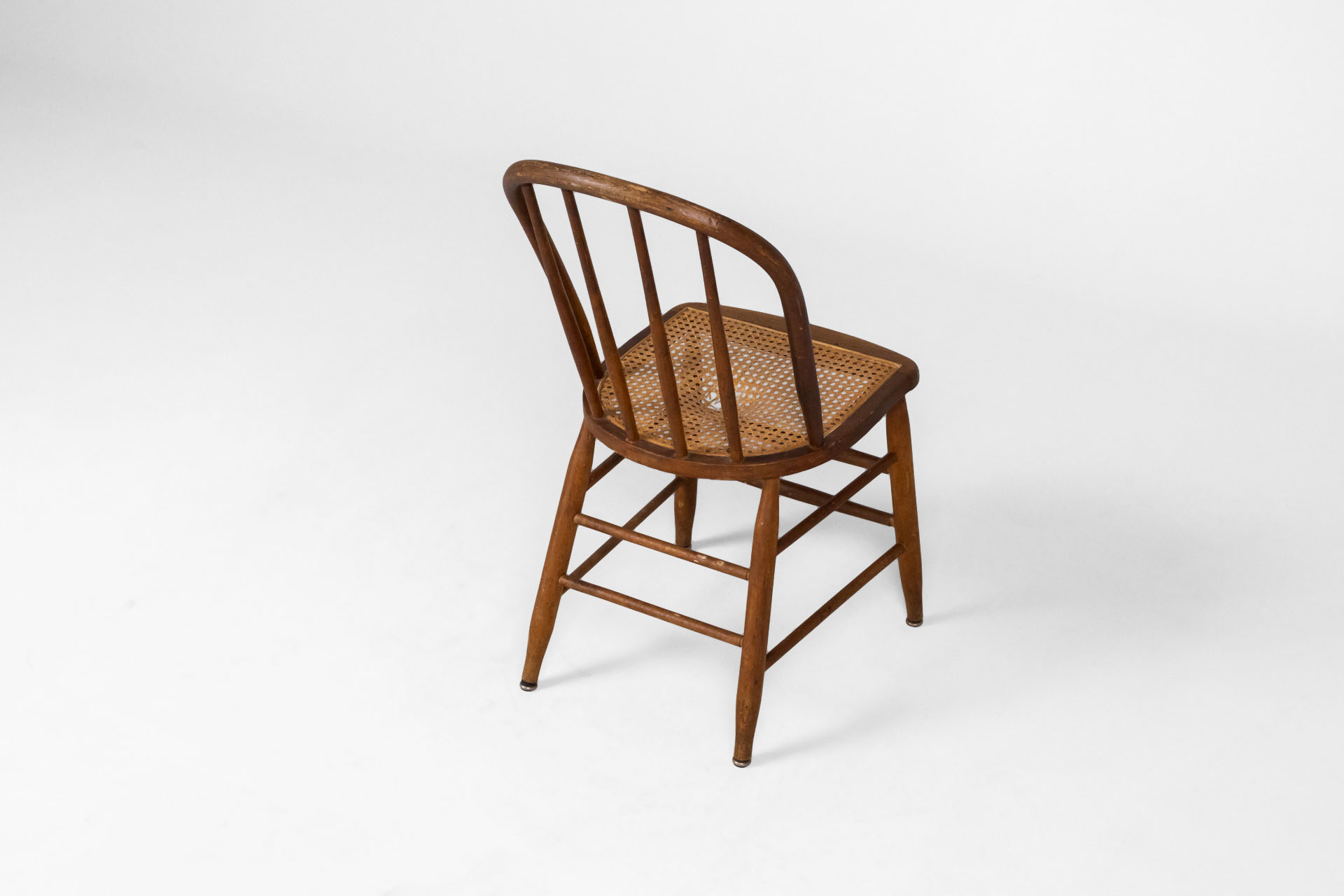 Elegáns, vintage stílusú szék, amely fonott ülőfelülettel rendelkezik. A masszív, fából készült szerkezet időtálló és stabil, ideális választás bármely retro vagy klasszikus enteriőrbe