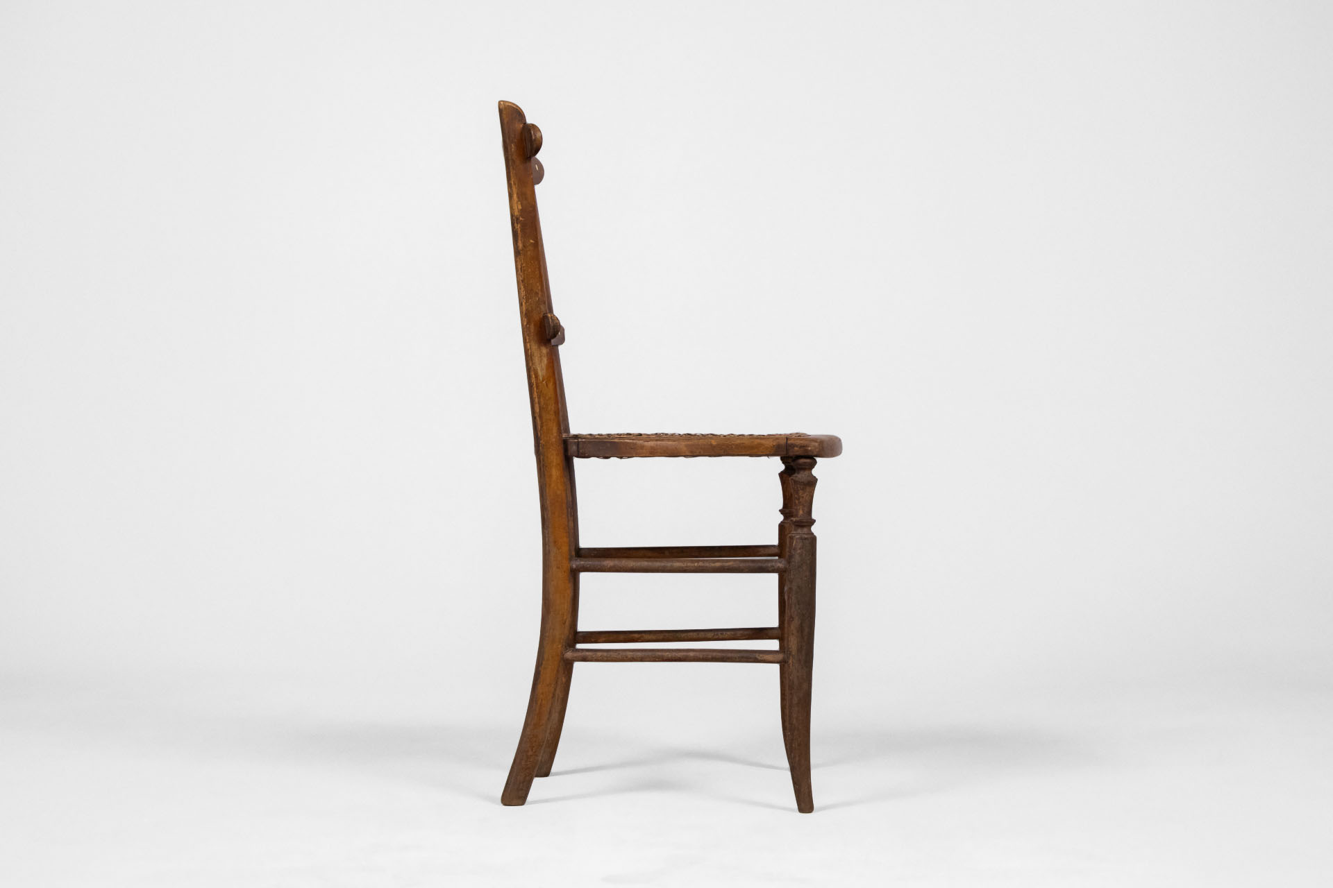 Elegáns, vintage stílusú szék, fonott ülőfelülettel és ívelt háttámlával. A sötétbarna fa szerkezet időtlen megjelenést kölcsönöz, ideális választás bármely hagyományos vagy rusztikus enteriőrbe