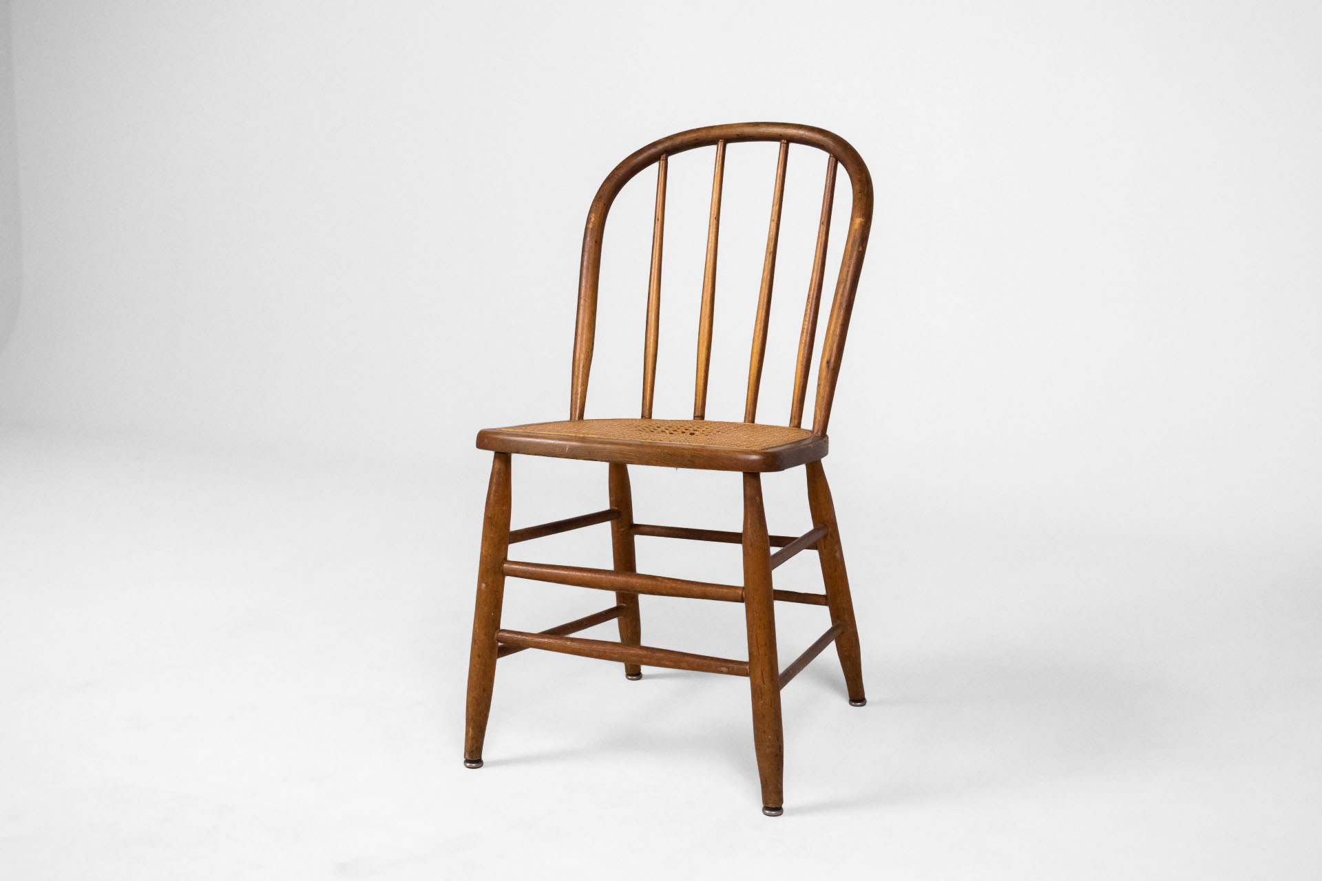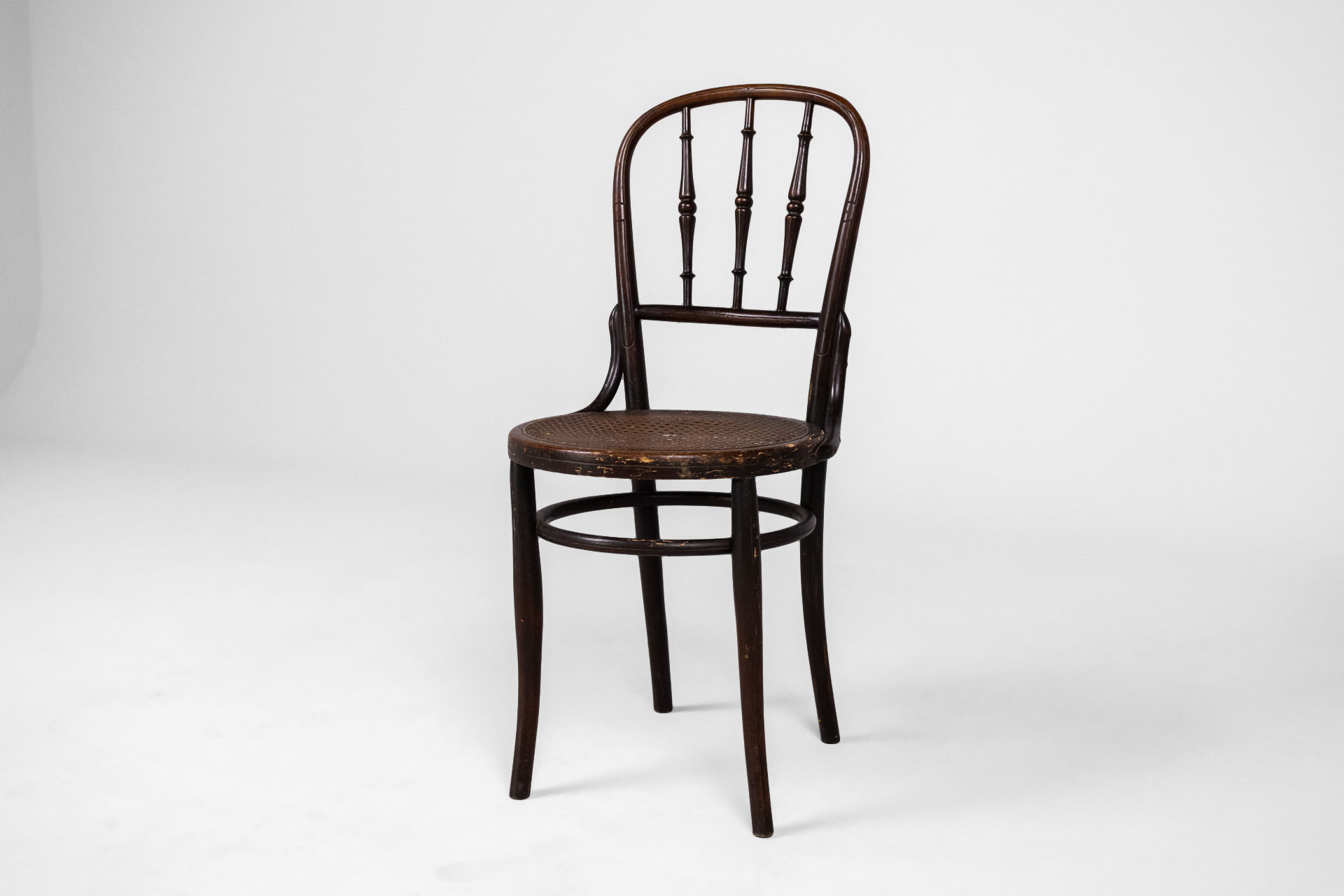 Elegáns, klasszikus stílusú étkezőszék, bükkfából készült, fonott ülőfelülettel és ívelt háttámlával. A szék formája és kialakítása a vintage hangulatot idézi, ideális választás étkezőkbe és kávézókba