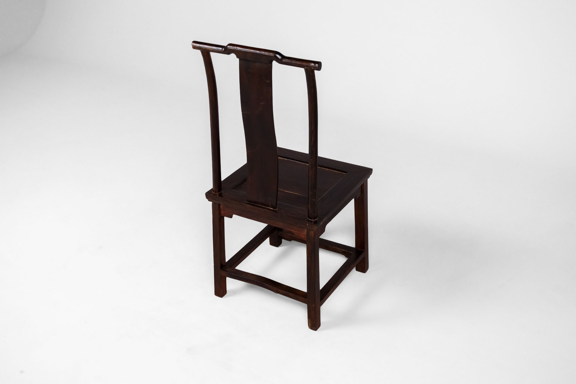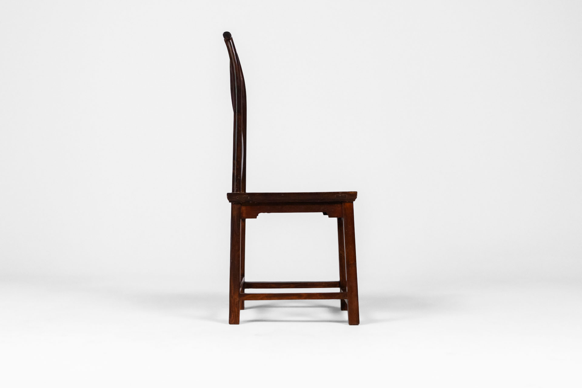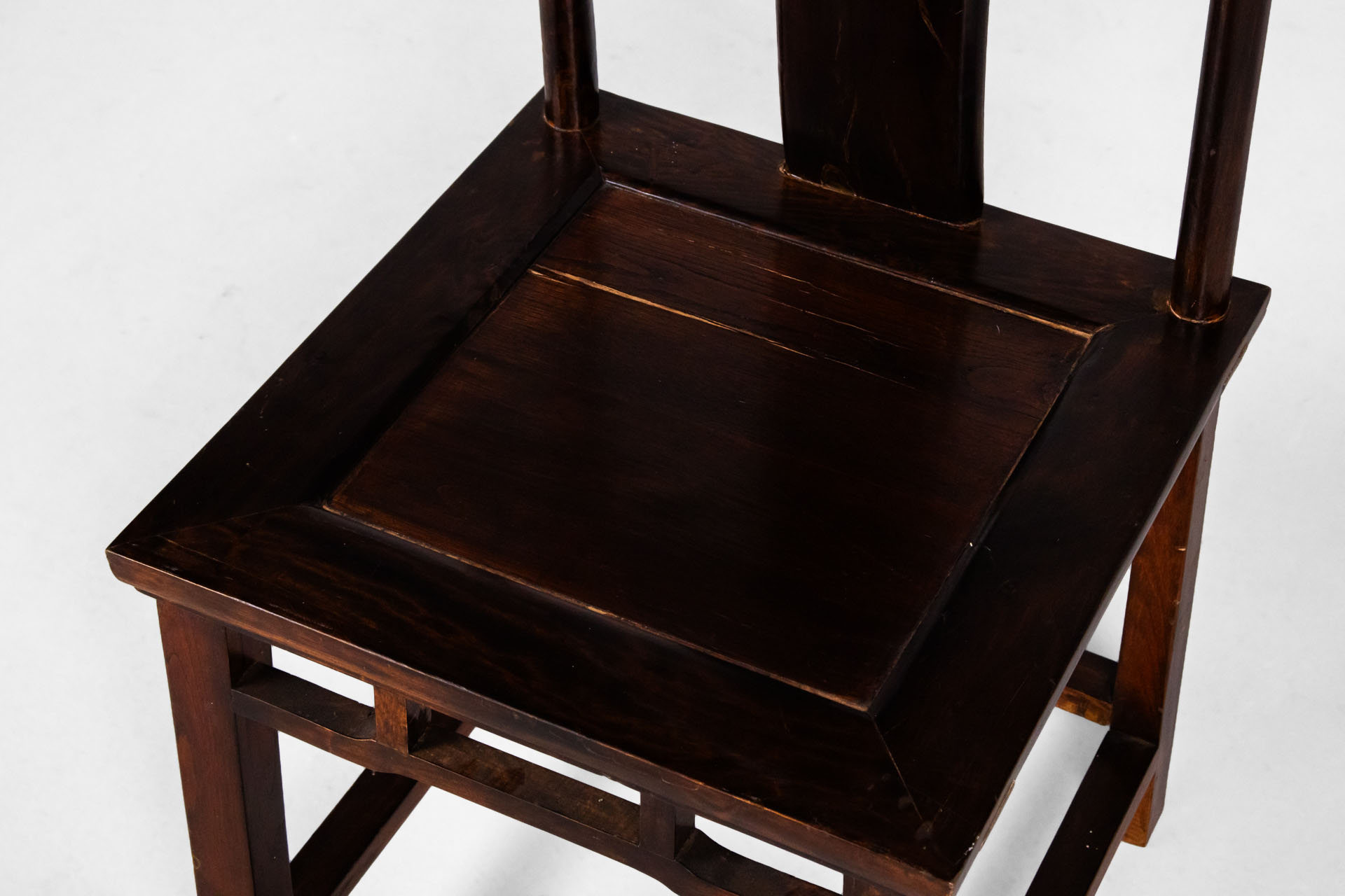 Elegáns, klasszikus stílusú fa szék, amely masszív, sötétbarna színű fából készült. A szék egyszerű, de ízléses formája és a finoman megmunkált háttámla időtlen megjelenést kölcsönöz